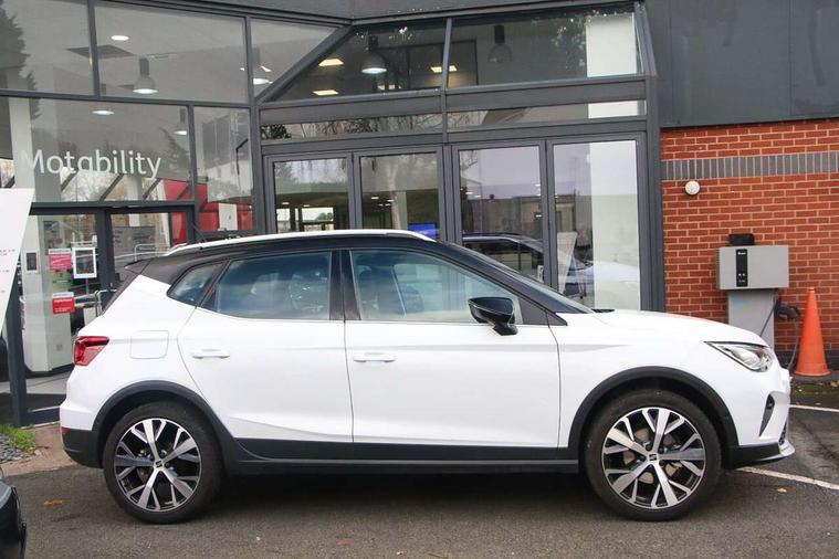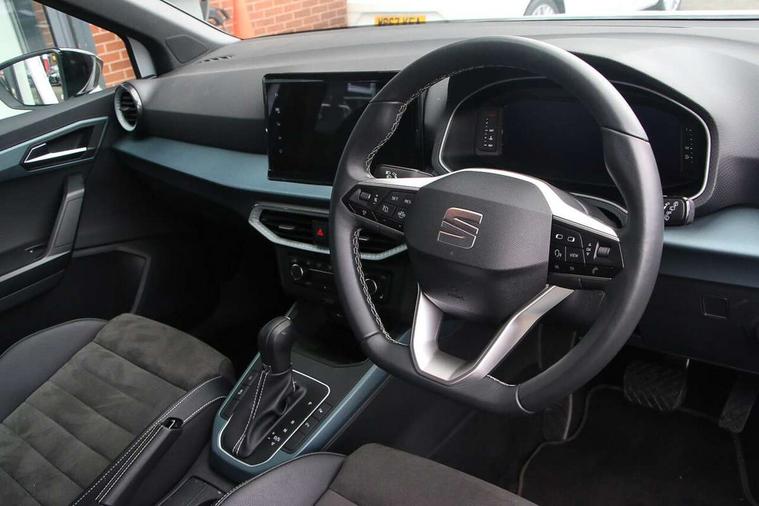 'Lights On' Reminder warning buzzer, 10" Digital cockpit, Digital clock, E-call, Electric speed sensitive power steering, Front parking sensor, Full link smartphone integration with mirror link, wireless apple carplay, Google android auto + USB Type C cable for apple and android devices, Lane keeping system, Low fuel warning light, Outside temperature display, Park assist system, Rear view camera, RPM counter, Trip computer, Wireless phone charger, 6 speakers, 9.2" colour touchscreen with navigation system, voice control and USB port (type c), Bluetooth interface for hands free and audio streaming, DAB digital radio and AM/FM radio, Steering wheel mounted audio controls, Anti theft roof antenna, Auto dimming interior rear view mirror, Automatic activation of hazard warning lights, Body coloured bumpers, Body coloured door handle inserts, Chrome roof rails and window surrounds, Electric front/rear windows, Electrically adjustable, heated and folding door mirrors, Front fog lights with cornering function and rear fog light, FULL LED automatic headlights with dynamic headlight range control, coming and leaving home, LED daytime running lights, Hidden exhaust pipe, LED rear tail lights and licence plate lights, Protective side mouldings, Rain sensing wipers, Rear side wing doors, Rear spoiler, Rear window wash/wipe, Roof colour door mirrors, Third brake light, Visible VIN plate, 2 cupholders, 3 seat bench in 2nd row, 60/40 split folding rear seat, Aircare filter, Black interior roof, Double boot floor, Driver sunvisor with covered mirror + card holder, Dual zone climate control, Front comfort seats, Front courtesy light with front reading lights, Front seat back storage pockets, Gear shift indicator, Heated front seats, Height adjustable front seats, Height/reach adjustable steering column, Illuminated air vent surrounds, Illuminated boot, Instrument lighting with brightness control, Interior ambient lighting, Interior light in footwell, central console and door panel, ISOFIX points in outer rear seats with top tether anchorage points, Leather steering wheel/gear knob/handbrake, Microsuede cloth upholstery, Passenger sunvisor with vanity mirror, Potentiometer, Single front passenger seat, Storage net on centre console, Two front and three rear height adjustable headrests, Interior chrome pack - Arona, Safe and driving pack (S) - Arona, Safety and driving pack (M) - Arona, Storage pack - Arona, 3 point seatbelts on all rear seats, ABS, Active front headrests, Child locks on rear doors, Driver and front passenger airbags with front passenger airbag de activation, front side and curtain airbags, Emergency Brake Assist (EBA) and front assist, Front and rear seatbelt reminder, Hill hold control, Multi-Collision braking, Tiredness recognition system, Traction control, Tyre pressure monitoring system, Alarm with back up horn with tow away protection, Deadlock, Electronic engine immobiliser, KESSY Keyless entry and go, Locking wheel bolts, Remote central locking, Titan black dashboard, 18" Performance Nuclear grey alloy wheels,