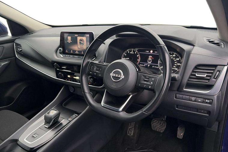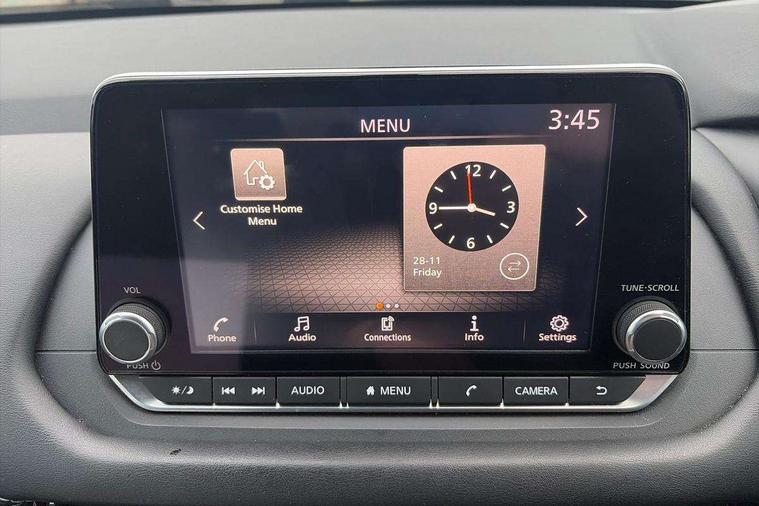 7" High definition full colour TFT screen combimeter, Android auto/Apple CarPlay (Wired), Blind spot warning, Drive modes (sport, normal, eco), Electric speed sensitive power steering, Emergency and breakdown call, Idle stop/start system, Intelligent Cruise control (ICC), Intelligent driver alert system, Intelligent forward collision warning, Intelligent lane intervention, Lane departure prevention, Lane departure warning system, Maximum speed limiter, Nissan connect 8" touchscreen infotainment system, Push button starter, Rear cross traffic alert, Rear parking sensors, Rear view camera, Traffic sign recognition with legal speed adjustment, Trip computer, 6 speakers, AM/FM audio system with DAB, Bluetooth audio streaming, Front USB connections (Type-A and Type-C), Auto dimming rear view mirror, Auto rear wiper when reversing, Automatic hazard signal with emergency stop signal, Body colour mirror caps, Body coloured door handles, Bodyside mouldings, Chrome side window finisher, Door handle with button, Electric auto folding door mirrors, Electrically adjustable and heated door mirrors with LED turn indicator, Follow me home headlights, High beam assist, Intelligent auto headlights, LED daytime running lights, LED Headlights, LED rear lights, One touch front and rear electric windows with remote opening and closing, Partially body coloured bumpers, Rear reversing light (bulb lighting), Rear roof spoiler, Rear side wing doors, Shark fin antenna, Splash free rain sensing wipers, Three blink turn signal, 12v power socket in dashboard and luggage, 2x Rear coat hooks, 3 bench rear seats in 2nd row, 3 rear headrests, 4 folding assist grip, 6-way manually adjustable driver's seat, 60/40 split folding rear seat bench, Centre console storage tray, Chrome interior door handles, Cloth monoform upholstery, Driver and front passenger sunvisors with illuminated vanity mirrors, Driver seat back pocket, Dual zone automatic climate control with pollen filter, Electrically adjustable lumbar support for driver, Front and rear door storage, Front centre console and armrest, Front cupholders x 2, Front door with bottle holders, Glovebox with light, Hard trunk cover, Height adjustable driver's seat, Height adjustable front headrests, Height adjustable passenger seat, Leather steering wheel, Luggage space lighting, Manually adjustable passenger (slide recline + lifter), Multifunction steering wheel, Passenger seat back pocket, Rear armrest with 2 cupholders, Rear door bottle holders, Single front passenger seat, Steering wheel gearshift paddles, Steering wheel switches, Sunglasses holder, Tilt/telescopic adjustable steering wheel, Two rear isofix child seat anchorage points with top tether, 3x3 point rear seatbelt pretensioners + load limiters, ABS with EBD and brake assist, Active brake limited slip, Auto hold function, Child locks on rear doors, Curtain and front side, far side airbags, Driver and passenger airbags, Driver, passenger and 2nd row rear seat belt reminder, Electronic parking brake, Front seatbelt pretensioners + load limiters, Height adjustable front seatbelts, Hill start assist, Intelligent blind spot intervention, Intelligent front emergency braking with pedestrian, cyclist recognition and junction assist, Intelligent rear automatic braking, Tyre pressure monitoring system, Vehicle dynamic control, Capless fuel filler, Engine immobiliser, Intelligent Key, Remote central door locking with deadlocking, Thatcham Cat.1 alarm, Interior instrumental panel A finisher, 17" Alloy wheels, Tyre puncture repair kit,