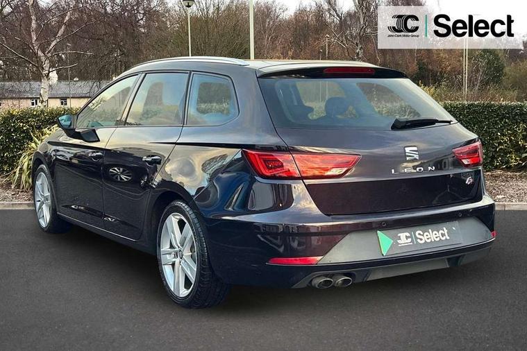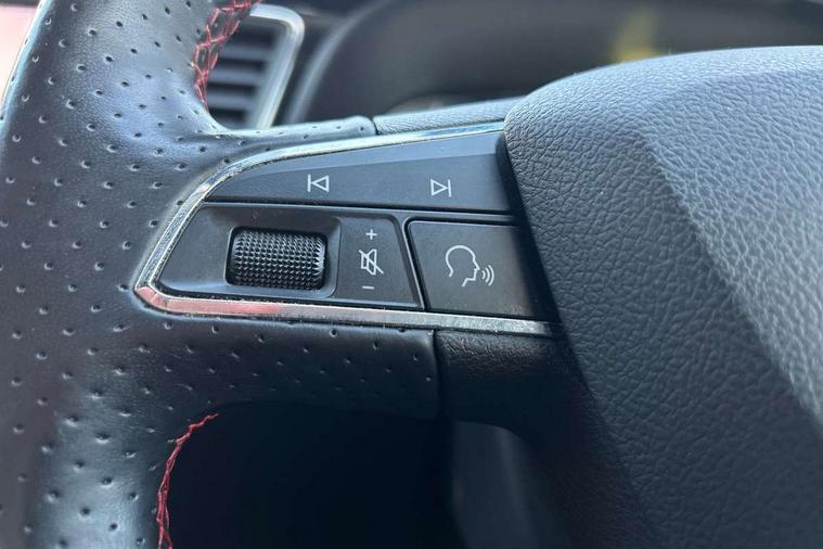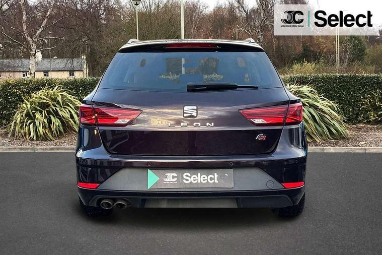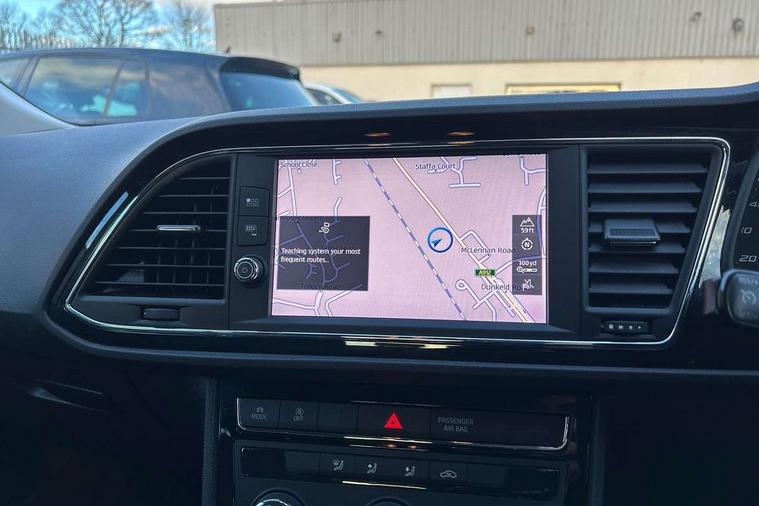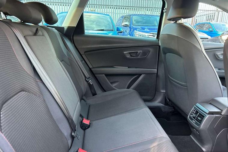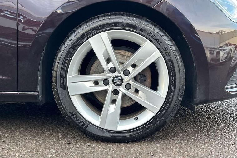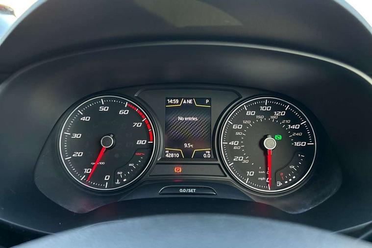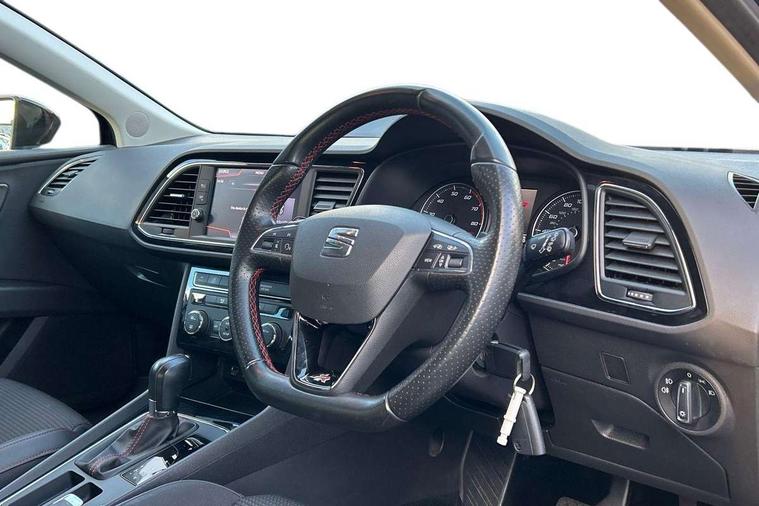 'Lights On' Reminder warning buzzer, 8" touch screen, Bluetooth Handsfree Phone Connection, Low fuel warning light, Outside temperature gauge, Rear parking sensors, Remote fuel flap release, SEAT Drive profile, SEAT logo boot release, Service interval indicator, Trip computer, Voice control system, XDS electronic differential lock, 2 USB ports, 2 USB sockets in rear, 2x SD card slot, Auxiliary input socket, Bluetooth audio streaming, DAB Digital radio, Radio/CD + MP3, Steering wheel mounted audio/phone controls, Aluminium front door sills, Black grille with chrome surround, Body colour door handles, Body coloured bumpers, Body coloured door mirrors, Dark tinted rear windows, Electric adjustable/heated/folding door mirrors, Electric front/rear windows with one touch/auto up/down, Electric headlamp adjustment, High gloss black finish B and C pillars, LED daytime running lights, LED front fog lights, LED Headlights, LED indicators in door mirrors, LED number plate light, LED tail lights, Rear wash/wipe, Reverse activated kerb-view adjustment on passenger's door mirror, Twin exhaust pipes, 12v power point in centre console, 3 height adjustable rear headrests, 60/40 split folding rear seat, Active head restraints, Additional heating and ventilation outlet in rear of centre console, Boot net, Chrome loading sill, Double boot floor, Driver seat height adjust, Driver seat lumbar adjustment, Driver/passenger sunvisors with illuminated vanity mirrors, Dual zone climate control, Dust/pollen filter, Front adjustable head restraints, Front armrest with storage box, Front cupholders x 2, Front map reading lights, Front seat and rear pockets, Front sports seats, Front/rear floor mats, Height/reach adjust steering wheel, Illuminated door sills, Illuminated glovebox, Instrument lighting with brightness control, Leather handbrake, Luggage compartment cover, Luggage tie-down hooks, Passenger seat height adjuster, Passenger seat lumbar adjust, Perforated leather steering wheel with red stitching + gear knob, Rear reading lights, Rear top tether child seat ISOFIX attachment, Rear window curtains, Steering wheel gearshift paddles, Storage boxes under front seats, 3 point seatbelts on all rear seats, ABS + traction control, Active pedestrian safety system, Child proof door locks, Collision mitigation braking system, Curtain airbags, Driver/Front Passenger airbags, Drivers knee airbag, Electronic parking brake with auto hold, ESP+EBA, Front assist including city emergency braking, Front seatbelt pretensioners, Front Seatbelt warning, Front side airbags, Hill hold control, Passenger airbag deactivation system, Tyre pressure monitoring system, 2 folding remote keys with window open/close function, Engine immobiliser, Locking wheel bolts, Remote central locking + deadlocks, Volumetric alarm with back up horn, Chrome interior trim,