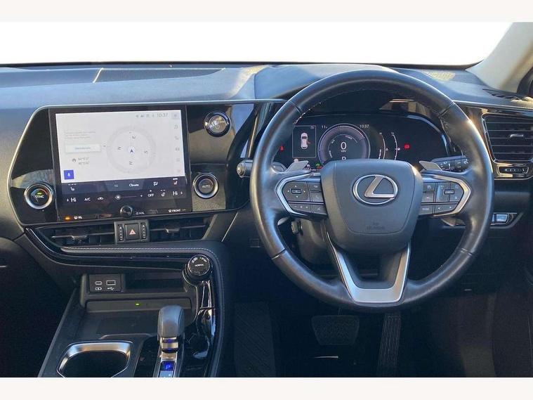 4 driving modes EV/Eco/Normal/Sport, 7" display in instrument binnacle, Bluetooth telephone connectivity, eCall emergency system, Electric speed sensitive power steering, Intelligent parking sensors - 4 front and 4 rear, Lane change flasher function, Lexus link connect - Cloud based navigation, cloud based voice assistant, always online and 9.8" VGA touchscreen, Push button starter, Reversing camera with back guidelines, Service interval indicator, Wireless Apple CarPlay and wired Android Auto, All Wheel Drive (AWD), Hybrid automatic transmission, Vehicle Dynamics Integrated Management (VDIM), Vehicle Stability Control (VSC), 10 speakers, 4 USB ports - 2 front, one USB C, 2 rear USB C, DAB Digital radio, Auto dimming interior rear view mirror, Automatic headlights, Bi LED headlights, Double hidden exhaust pipes, Front and rear one touch power windows, with anti-jam protection, Heated, auto-folding, auto-dimming outside mirrors with reverse tilt function and turn indicators, LED brake lights and rear lights with emergency brake signal, LED daytime running lights, LED front fog lights, LED Indicators, Light green UV acoustic rear doors & rear glass, Power back door system, Rain sensor windscreen wipers, Rear side wing doors, Rear wiper, Roof rails, 12V accessory port centre console and luggage compartment, 2 cupholders in front centre console, 2 x fixed shopping bag hooks in boot, 2 x sun visors with vanity mirror and lamp, 3 seat bench in 2nd row, 4 x tie down hooks in the boot, 6 tie down hooks in boot, 6 way manually adjustable front seats, 60/40 split folding rear seat, Adjustable rear seat backrest, Card holder installed in driver and passengers sun visors, Centre armrest with storage box, Dual climate control air conditioning system, Front and rear head restraints, Front and rear textile carpet mats, Front passenger seat, Heated front seats, Leather gear lever, LED interior illumination, Power adjustable leather steering wheel with paddle shifts, Rear centre armrest with 2 cupholders, Tahara leather upholstery, Whiplash Injury Lessening (WIL) feature (active headrest) for seats, 2 x Isofix child rear seat restraints, 3 point ELR front seatbelts with pretensioners, 3x3 point rear seat belts, ABS, Adjustable seat belt anchor points, Driver and front passenger 2 stage airbag, Driver/front passenger side airbags, Drivers knee airbag, E-Latch electric door release, EBD + Brake Assist, ECB (Electronically Controlled Brake System), Electronic parking brake, Front and rear curtain shield airbags, Front center airbag, Front passenger seat cushion airbag, Hill assist control, Lexus safety system - dynamic radar cruise control, pre collision system day and night, lane tracing assist, road sign, automatic high beam, OTA, Manual rear child locks, Passenger airbag cut-off device, Traction control, Tyre pressure warning, 2 x remote key fobs, Anti-theft system with alarm, intrusion sensor, glass breakage sensor, tilt sensor and engine immobiliser, Locking wheel nuts, Speed sensitive auto door locking, VIN Window etching, Black microdot inlay, Tyre repair kit,
