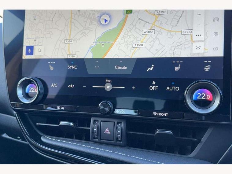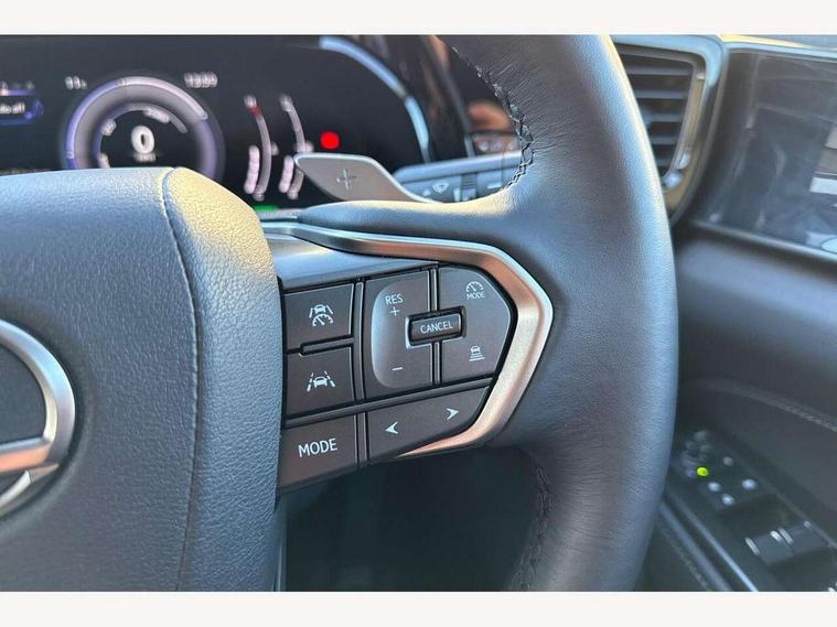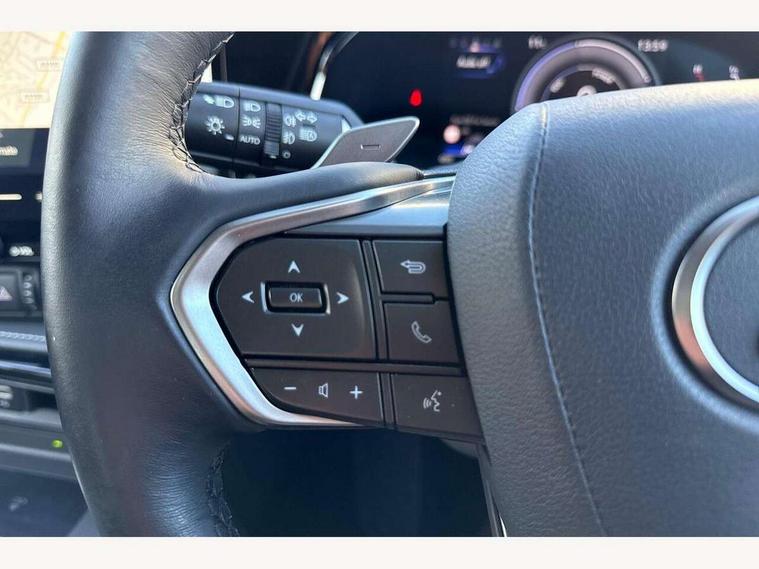 4 driving modes EV/Eco/Normal/Sport, 7" display in instrument binnacle, Bluetooth telephone connectivity, eCall emergency system, Electric speed sensitive power steering, Intelligent parking sensors - 4 front and 4 rear, Lane change flasher function, Lexus link connect - Cloud based navigation, cloud based voice assistant, always online and 9.8" VGA touchscreen, Push button starter, Reversing camera with back guidelines, Service interval indicator, Tailgate, Wireless Apple CarPlay and wired Android Auto, All Wheel Drive (AWD), Hybrid automatic transmission, Vehicle Dynamics Integrated Management (VDIM), Vehicle Stability Control (VSC), 10 speakers, 4 USB ports - 2 front, one USB C, 2 rear USB C, DAB Digital radio, Auto dimming interior rear view mirror, Automatic headlights, Bi LED headlights, Double hidden exhaust pipes, Front and rear one touch power windows, with anti-jam protection, Heated, auto-folding, auto-dimming outside mirrors with reverse tilt function and turn indicators, LED brake lights and rear lights with emergency brake signal, LED daytime running lights, LED Indicators, Light green UV acoustic rear doors & rear glass, Power back door system, Rain sensor windscreen wipers, Rear side wing doors, Rear wiper, Roof rails, 12V accessory port centre console and luggage compartment, 2 cupholders in front centre console, 2 x fixed shopping bag hooks in boot, 2 x sun visors with vanity mirror and lamp, 3 seat bench in 2nd row, 4 x tie down hooks in the boot, 6 tie down hooks in boot, 6 way manually adjustable front seats, 60/40 split folding rear seat, Adjustable rear seat backrest, Card holder installed in driver and passengers sun visors, Centre armrest with storage box, Dual climate control air conditioning system, Front and rear head restraints, Front and rear textile carpet mats, Front passenger seat, Heated front seats, Leather gear lever, LED interior illumination, Power adjustable leather steering wheel with paddle shifts, Rear centre armrest with 2 cupholders, Tahara leather upholstery, Whiplash Injury Lessening (WIL) feature (active headrest) for seats, 2 x Isofix child rear seat restraints, 3 point ELR front seatbelts with pretensioners, 3x3 point rear seat belts, ABS, Adjustable seat belt anchor points, Driver and front passenger 2 stage airbag, Driver/front passenger side airbags, Drivers knee airbag, E-Latch electric door release, EBD + Brake Assist, ECB (Electronically Controlled Brake System), Electronic parking brake, Front and rear curtain shield airbags, Front center airbag, Front passenger seat cushion airbag, Hill assist control, Lexus safety system - dynamic radar cruise control, pre collision system day and night, lane tracing assist, road sign, automatic high beam, OTA, Manual rear child locks, Passenger airbag cut-off device, Traction control, Tyre pressure warning, Anti-theft system with alarm, intrusion sensor, glass breakage sensor, tilt sensor and engine immobiliser, Locking wheel nuts, Speed sensitive auto door locking, Ultra Wide Band (UWB) Anti-theft system, VIN Window etching, Black microdot inlay, Tyre repair kit,