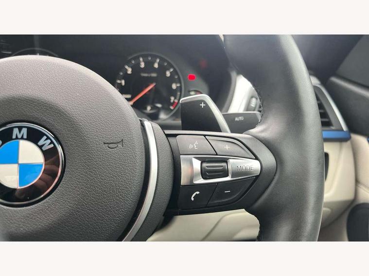 Auto start-stop, BMW Online services, BMW remote services, BMW Teleservices, Brake pad wear indicator in front and rear, Check Control warning system for monitoring of lights and door/luggage compartment open warning, Control display - 6.5" colour display screen, Front/rear park distance control (PDC), iDrive Controller with 8 favourite buttons, Instrument cluster with speedometer with mph readout, tachometer, fuel gauge and oil temperature gauge, Lights on warning by audio warning signal when ignition is switched off, M Sport instrument cluster, Oil sensor for level and grade, warning by check control system, On board computer - average speed, fuel consumption, outside temp display with acoustic warning, clock/date, service interval, odometer/trip meter, Optimum shift indicator, Personal Profile - automatic lock when driving away selectable, Professional multimedia navigation system, Run flat indicator, Aluminium front suspension, Drive performance control with ECO PRO comfort + sport mode, Eight speed sport automatic transmission, Electronic differential lock, Five link rear suspension, Permanent all wheel drive, VALVETRONIC engine management, DAB tuner, Auto dimming rear view mirror, Body colour door handles, Body colour front bumper, Body colour rear bumper, Body colour roof mouldings, Chrome kidney grille with extra wide black, high gloss black vertical slats, Direction indicator, side repeaters, integrated in exterior mirrors, Door sill finishers with M designation, Dual exhaust tailpipes in left with chrome finisher, Dynamic brake lights, Electric front windows with fingertip open/close + anti-trap facility, Follow me home headlights, Front air inlet with high gloss black finish, Front and rear bumper system, Green tinted heat protection glazing, Heated windscreen washer jets, Heated, electrically adjustable exterior mirror aspheric on driver side, convex on passenger side, High gloss black air breather, High gloss black rear bumper insert, High gloss shadow line exterior trim, High level third brake light, LED daytime running lights, LED direction indicator lenses, LED eyebrow light, LED front fog lights, LED tail lights with 3D L-shaped LED light design, Lightweight engineering, M aerodynamic bodystyling, Model designation, Rain sensor including auto headlights activation, Shark fin antenna, Two speed adjustable intervals windscreen wipers, Visible VIN plate, Welcome lighting, Windscreen with grey shadeband, 12V sockets in front centre console and passenger footwell, 3 spoke leather M sport multifunction sports steering wheel, 4 grab handles, Air conditioning and radio control panel in high gloss black, Ambient lighting - switchable BMW classic orange/ cold white LED, Anthracite headlining, Automatic air conditioning with two zone control, Bottle holders integrated into front door trim storage compartments, Chrome centre console panel highlight, Driver and front passenger seat heating, Front and rear side armrests integrated into door trim, Front folding sliding armrest with storage compartment, Front head restraints, Front sports seats, Full black panel display, Glove compartment, Interior lighting, front centre over interior mirror and rear centre automatic interior light activation when door is opened, Load lashing eyes in luggage compartment, Reach + rake manual adjustable steering column, Rear centre armrest with 2 cupholders, Rear child seat isofix attachment with passenger airbag deactivation, Rear coded belt buckles, Rear seat centre armrest with two cupholders, Storage compartment in rear centre console, Sunvisors with vanity mirrors and ticket pocket, Toolkit located in luggage compartment, Two front cup holders with a sliding lid, Two Integrated rear seat headrests, Velour floor mats, Extended lighting package - 4 Series, Non Smokers pack, Airbag - Front driver and passenger, front and rear head, front side, curtain head protection, manual deactivation of front passenger airbag possible, Anti lock braking system (ABS) with brake assist, Automatic seat belt handover for driver and front passenger, Automatic Stability Control (ASC), Battery safety cut-off, BMW emergency call, Brake drying, Brake energy regeneration, Brake pretensioning, Cornering brake control (CBC), Crash sensor activating central locking release, hazard warning lights, Dynamic brake control, Dynamic stability control + (DSC+), Dynamic Traction Control - DTC, Front and rear ventilated brake disc, Front seatbelt force limiters, Hill start assistant, Pyrotechnically pre-tensioned front seatbelts, Seat belt security check for driver, Side impact protection, Twin horns, Tyre pressure monitoring with three level warning strategy, Variable torque distribution, Warning triangle and first aid kit, Alarm system (Thatcham 1) with electronic engine immobiliser, Central locking switch for all doors, fuel filler cap and luggage compartment, Remote control integrated key with blue inset, Start/stop button with Comfort Go keyless engine start and auto Start/stop deactivation button, Reduced rolling resistance tyres, Run flat tyres,