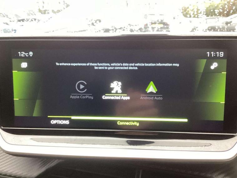 10" Capacitive colour touchscreen with connected 3D navigation, Bluetooth telephone facility, Driver attention warning, e-Toggle driving selector, Exterior temperature indicator with ice warning, Mirror screen with mirror link, apple carplay and android auto, Multi function trip computer, PEUGEOT i-Cockpit with compact steering wheel, PEUGEOT i-Cockpit with configurable 3D headup instrument panel, PEUGEOT SOS and assistance, Push button start, Smart phone docking station, Speed limit recognition and recommendation, Start/stop system, Visio park assist 180 with colour reversing camera + front and rear parking sensor, 2 front USB socket with USB-C, 2x USB sockets in rear, 6 speakers radio with mp3 compatible, DAB Digital radio, Voice recognition for radio, navigation and telephony features, 2 X Rear number plate lights, Automatic hazard light activation upon heavy brake application, Automatic lights, Automatic windscreen wipers, Body coloured exterior door handles, Dark tinted rear side and tailgate windows, Diamond Black roof, Electric front windows + one touch + anti-pinch, Electric rear windows with one touch/anti-pinch, Electrically adjustable, heated and power folding door mirrors, Extended diamond black rear spoiler, Follow me home headlights, Frameless electrochrome interior rear view mirror, Full LED headlights with smartbeam assist, Gloss black finish on B pillar, Gloss black rear cluster connecting strip, Gloss black wheel arch extensions, Gloss black window surround, GT model designation badging on C pillar, GT model designation badging on tailgate, Headlights left on audible warning, LED daytime running lights with 3 claw headlight with distinctive tooth design, LED side indicator lights integrated into door mirrors, LED third brake light, Model designation badges front and rear, Nera black door mirror shells, Peugeot scuff plates, Radiator grille - Dark chrome chequered and gloss black edge trim, Rear bumper with gloss black finish, Rear full LED 3D peugeot signature claw effect lights with daylight function, Rear lower bumper diffuser effect trim in gloss black, Rear reversing lights, Rear side wing doors, Rear windscreen wiper triggered automatically in reverse gear, Roof mounted aerial with fin design, Roof spoiler, Tailgate with heated rear windscreen and wiper blade, Twin chrome exhaust tailpipes, Variable front intermittent wipers, 1/3 to 2/3 split folding rear seats, 12V socket, 3 seat bench in 2nd row, 8 Colour personalisable ambient lighting, Aluminium pedals and foot rest, Automatic air conditioning, Automatic gear lever in full grain leather and satin chrome, Driver and front passenger seat manual adjustment in longitudinal and back rest angle, Driver and front passenger seat mechanical height adjustment, Driver and front passenger sport seats, Electric power steering with reach and rake adjustable steering column, Front and rear carpet mats in black with lime green stitch detail, Front centre armrest with storage compartment, Front LED interior light with 2 reading spotlights and rear interior light with timer, High centre console with 2 cup holders, ISOFIX child seat mounting points on passenger seat, Lime green contrast stitching to armrest, front centre console, door panels and dashboard facia, Map pockets on the backs of the front seats, Mistral full grain perforated leather steering wheel with aikinite stitch detail and satin chrome 'GT' emblem, Paddle shifts, Piano keys gloss black plated toggle switches to access main functions of the vehicle, Piano keys gloss black plated toggle switches to access touchscreen functions, Push button finished in black with chrome circle, Rear centre headrest, Roof lining - Mistral black, Seatbelt unfastened on the move audible and visual alert for front and rear seats, Single front passenger seat, 3 rear 3 point seatbelts, ABS (Anti-lock Braking System) with EBD (Electronic Brakeforce Distribution) and EBA (Emergency Braking Assistance), Active safety brake with night function/cyclists/pedestrians, Adaptive driver and front passenger airbags with passenger airbag deactivation function, Child locking functionality on rear doors, Driver/front passenger side airbags, Electric parking brake, ESP with Hill Assist, Front and rear curtain airbags, Front and rear disc brakes, Front optimised safety headrests and 3 x rear retractable headrests with height adjustable, Front three point retractable seatbelts with force limiters, Tyre pressure sensor, Acoustic vehicle alert system (AVAS), Automatic door locking when moving off, Deadlock, Electronic code immobiliser, Remote central locking, Thatcham cat. 1 alarm with anti lift sensor, Carbon effect Dashboard, front and rear door panel finish, 17" Bronx two-tone alloy wheels, Space saver spare wheel,