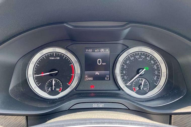 Bluetooth system, E-call, ECO Stop/start function, Exterior temperature indicator, Smartlink wireless for apple carplay and wired for android auto, Speed limiter, Tailgate unlocking from outside, USB C Port x 2 in front centre console, Wireless charging, DAB Digital radio, Aero front windscreen wipers with intermittent function, Aero rear window wiper, Auto dimming rear view mirror, Black wheel arch surrounds, Body colour bumpers, Body colour door mirrors and handles, Chrome front grille, Chrome roof rails with chrome window surround, Electric front and rear windows, Extended rear spoiler with finlets in gloss black, Front fog lights, Full LED matrix headlights with AFS (adaptive front light system), cornering function and AWL (all weather lighting system), Headlight washers, Heated rear window, Invisible tailpipe, LED daytime running lights, LED rear fog light, LED third brake light in rear spoiler, Light assistant (coming/leaving home/tunnel light), Off-road style lower front bumper element, Privacy glass, Rain and light sensors, Rear LED lights (high functionality) with welcome effect and dynamic indicators, Safety reflectors on front and rear doors, Window control switches with black trim, 12V socket in boot, 2 rails with 2 hooks, 4 foldable roof handles with rear coat hooks, 60:40 foldable rear seat with sliding adjustment and backrest angle adjustment, Bottle holders in door panel in the 1.5 litre front and 1 litre rear, Cargo storage compartments, Chrome headlight control button, Chrome interior door handles, Coat hooks on B pillar, Covered storage compartment on driver side, Decorative door sills in the front and rear, Front centre armrest with storage compartment, cup holder and 12V socket, Front courtesy lights, Gear shift lever with chrome frame and black gloss insert, Grey stitching in front and rear armrests and door armrests + door inserts, Height adjustable front headrests, Illuminated and cooled glovebox, Illuminated luggage compartment, Isofix child seat fittings in outer rear seats with top tether, Manually adjustable steering column, Net programme in boot (1x horizontal Net, 2x vertical Nets), Overhead glasses storage compartment, Pollen filter, Rear centre armrest with cupholders, Sliding trunk cover, Small Bags on the inner sides of the front backrests, Sunvisors with illuminated vanity mirrors, Three rear height adjustable headrests, Ticket holder on A Pillar, Umbrella in door panel, Variable boot floor, Auto door release and activation of warning lights in the event of an accident, Driver and front passenger airbag with knee airbag and front passenger airbag deactivation, Electronic parking brake with hill start assist, Emergency rear braking signal, ESC (incl. ABS+MSR+ASR+EDS+HBA+DSR+RBS+MKB), Front assist with autonomous emergency braking, Front side airbags with curtain airbags, Fuel cut off safety device, Height adjustable front 3 point seatbelts + pretensioners, Hill hold control, Rear disc brakes, Safety vest holder in door, Seat belt reminder for all seats, Three point rear seat belts, Two tone horn, Tyre pressure monitor, Alarm with interior monitoring and tilt sensor with safe function, Anti-theft wheel bolts, Immobiliser, Keyless entry and start system (KESSY), Remote central locking with 2 keys, Grey stitching in dashboard, Linear diamonds decorative inserts, Temporary spare wheel (space saver),