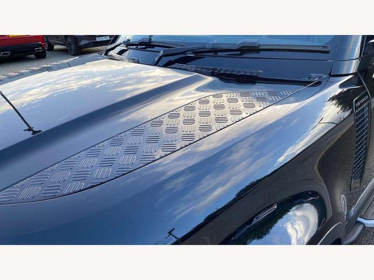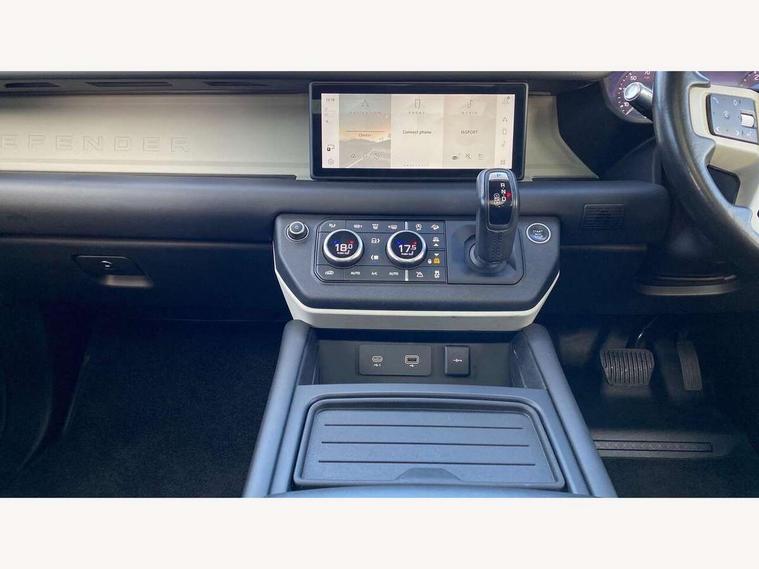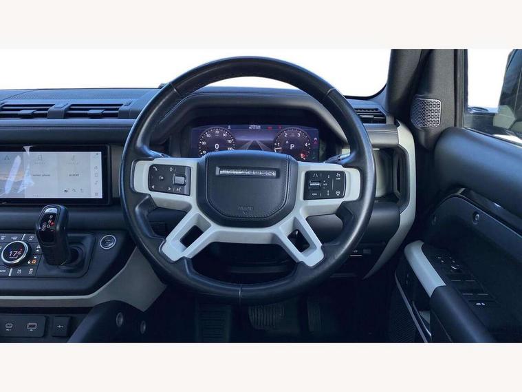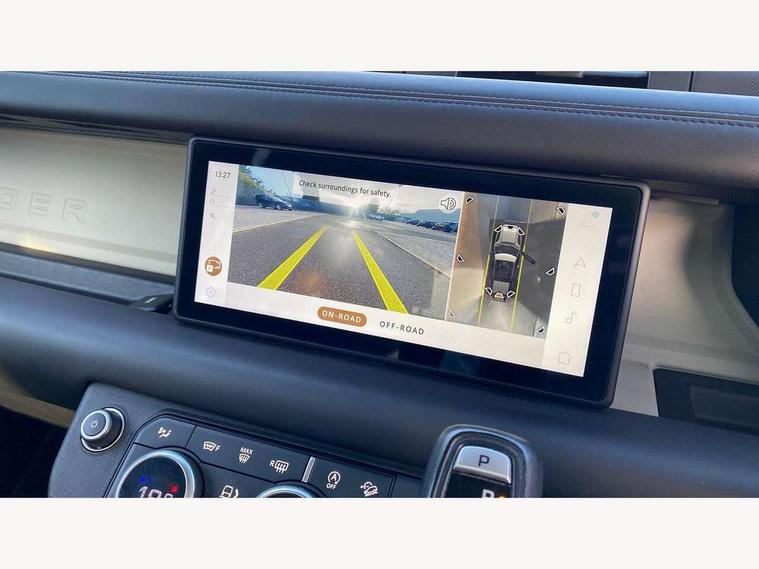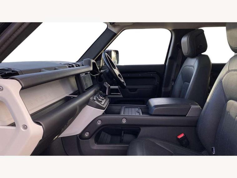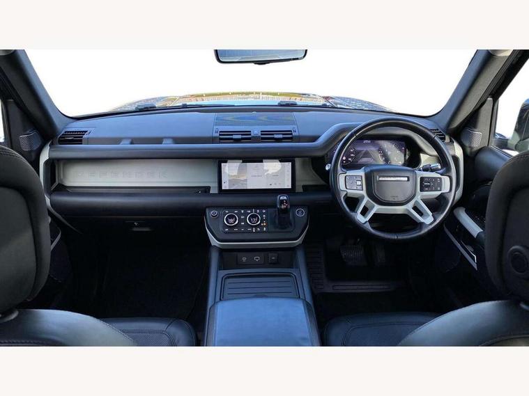 10" touch screen, 360 degree parking aid, 3D Surround Camera with 360 View, 180 Rear View, Front Traffic Detection, Forward Vehicle Guidance, Tow Hitch Assist and clear sight Ground View, Adaptive cruise control, Android Auto, Apple CarPlay, Blind spot assist, Bluetooth system, Clear exit monitor, Click and go integrated base unit, Connected navigation pro, Driver condition monitor, Interactive driver display, Lane keep assist, PAS, Pivi Pro connected navigation system with upgraded Infotainment, Rear collision monitor, Rear traffic monitor, Traffic sign recognition with adaptive speed limiter, Trip computer, Wade Sensing, Adaptive dynamics, Electronic air suspension, DAB Radio (Digital Audio Broadcasting), Automatic headlight levelling, Automatic headlights, ClearSight interior rear view mirror, Front fog lights, Heated windscreen, LED tail lights, Matrix LED headlights with signature DRL, Power fold, auto-dimming, heated door mirrors with memory and approach lights, Puddle lights, Rain sensing windscreen wipers, Signature graphic (with interior storage), Sliding panoramic roof, Standard treadplates, 14 way heated and cooled electric adjustable memory front seats with 4 way manual headrests, Carpet mats, Electric reach + rake adjustable steering column, Extended leather upgrade, Front passenger isofix child seat attachment, Heated steering wheel, Leather gearshift, Leather steering wheel, Loadspace cover, Morzine headlining, Multifunction steering wheel, Rear headrests, Rear ISOFIX, Sunvisors with illuminated vanity mirrors, Twin front cupholders with cover, Windsor leather upholstery, Online pack with data plan - Defender, 5 x 3 point seatbelts, ABS, Driver and passenger airbags, Emergency braking, ESP + traction control, TPMS (Tyre pressure monitoring system), Alarm, Immobiliser, Intrusion sensor, Keyless entry and go, Locking wheel nuts, Remote locking,