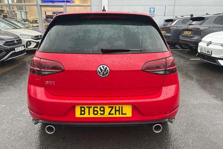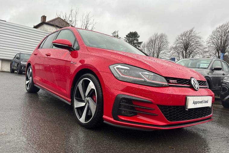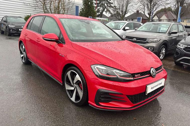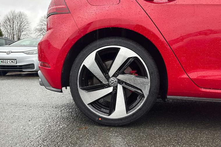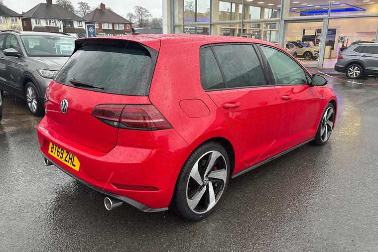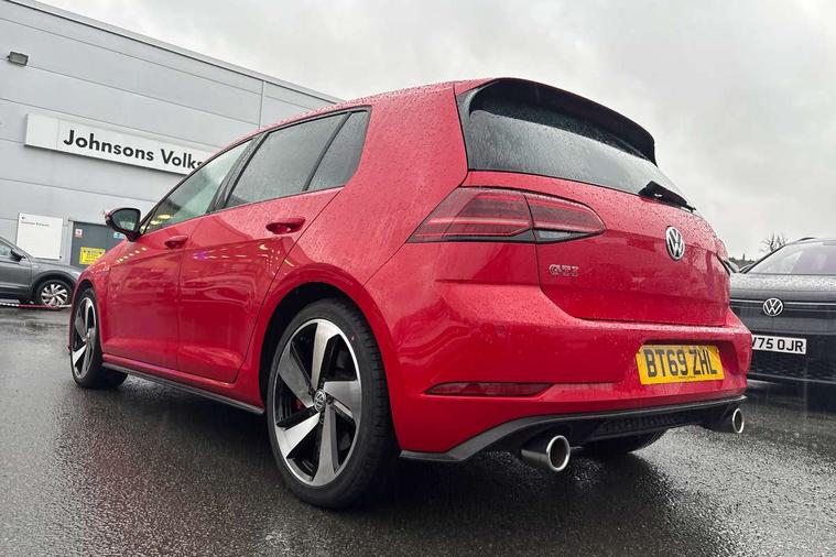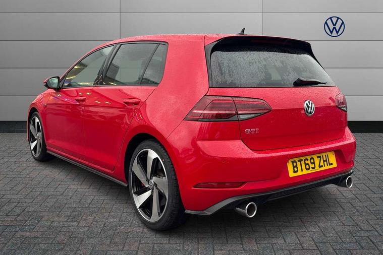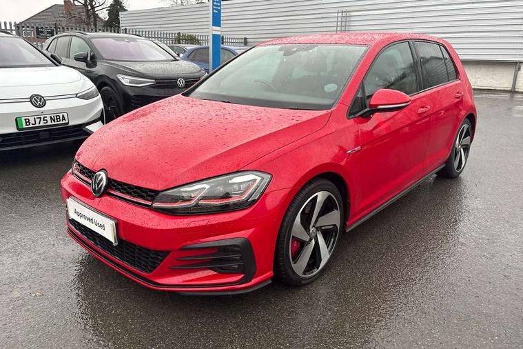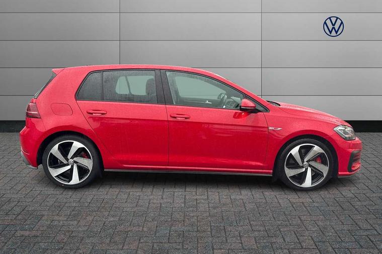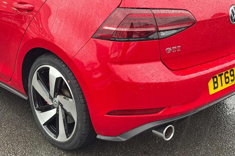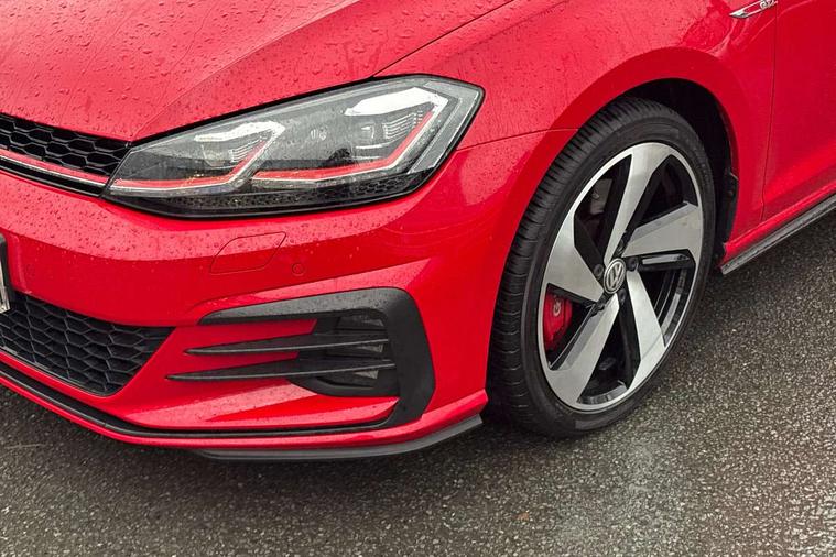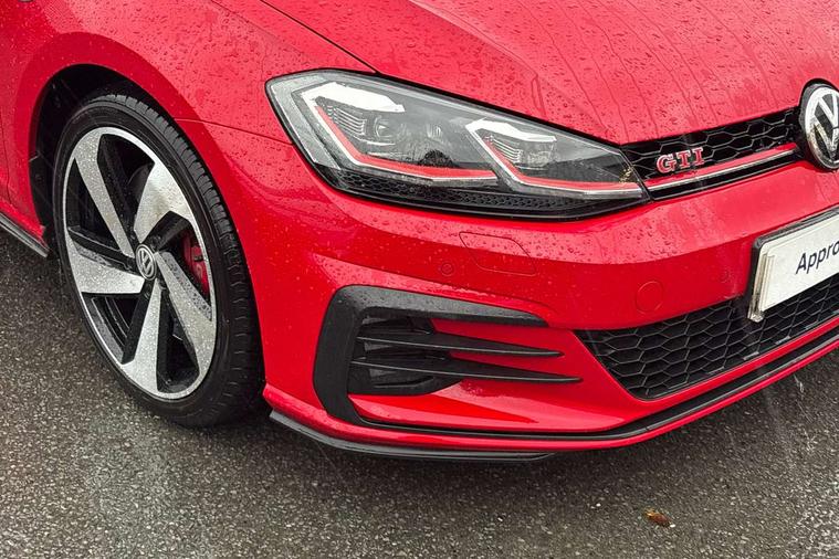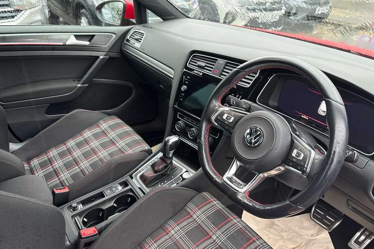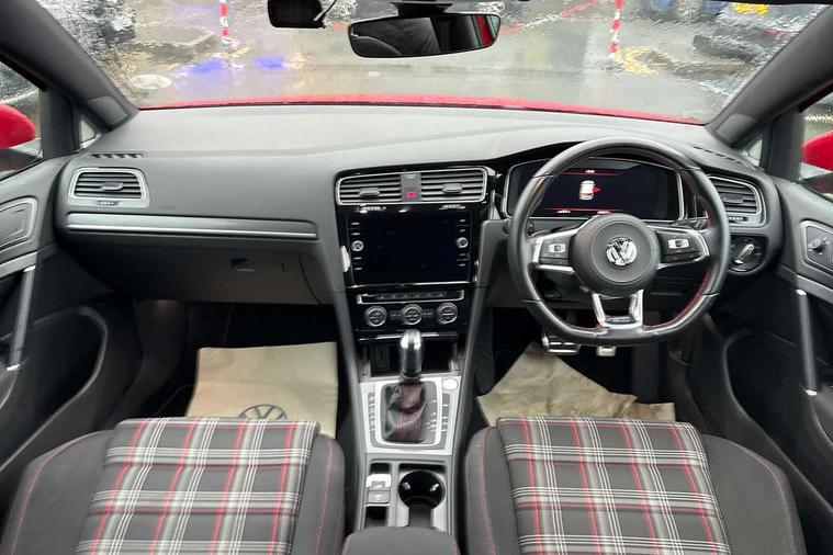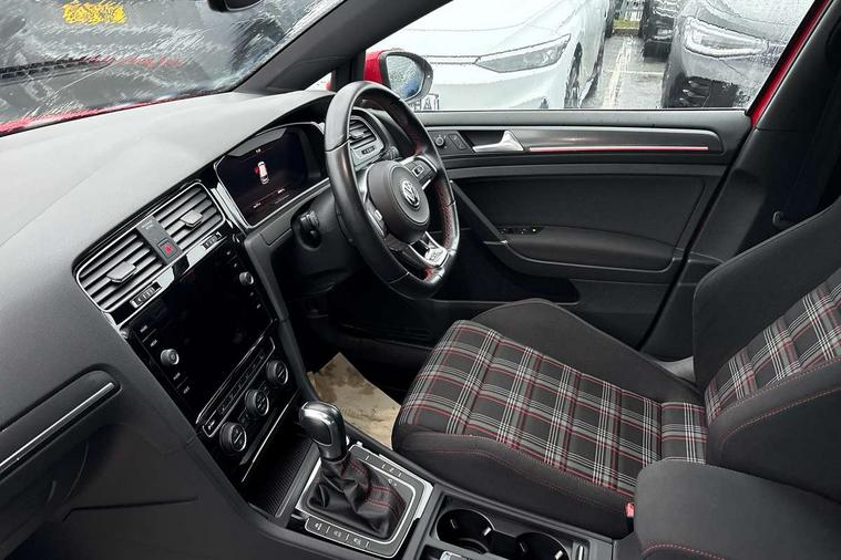 'Lights On' Reminder warning buzzer, ACC - Adaptive cruise control with front assist, forward collision warning, distance monitoring, city emergency brake and speed limiter, Active information display - 12.3" high resolution TFT display, Bluetooth telephone and audio connection for compatible devices, Brake pad wear indicator warning light, Driver alert system, Driving Mode Selection with four preset modes - Eco, normal, sport or individual modes, Multifunction computer with visual gear change recommendation for fuel consumption, Progressive steering, Push tank flap, Rear view camera, Speed limit display, Speedo, rev counter, electronic odometer, trip, service interval display, exterior temperature and fuel gauge, Stop/start system, Think blue trainer driver tips and journey analysis, Unique GTI instrument cluster, Warning buzzer and light for front seatbelts unfastened, Anti-tramp function, Battery regeneration during braking, Mechanical limited slip differential, Composition media system, DAB Digital radio receiver, Driver Personalisation profile selection, MP3/WMA compatability, Multi device interface (MDI) via USB connection, Premium USB cable in choice of either Apple or Android smartphone compatibility, SMS Functionality, Title and cover art display, USB and SD card connectivity, Volkswagen media control, 3D-LED tinted rear light clusters with indicator sweep function, Black front air intake and radiator grille with chrome insert, Body colour door handles, Body colour door mirrors with integrated indicators, Body colour rear roof spoiler, Dusk sensor + automatic driving lights, Electric front windows, Electric rear windows, Electrically adjustable and heated door mirrors, Extended sill strips flared, Front and rear unique GTI badging in red, Fully galvanised body, GTI logo in red on front and back, GTI logo lettering on front wings on right and left, Heated rear windscreen, High level 3rd brake light incorporating LED Technology, Honeycomb front air intake - Black, Honeycomb radiator grille with red stripe, LED daytime running lights incorporating red stripe, LED front fog lights, LED headlights with dynamic light assist, Rear fog lamp, Rear number plate lights incorporating LED technology, Rear window aerial, Rear window wash/wipe with intermittent wipe, Reflectors in all doors, Uniquely shaped front/rear bumpers, Windscreen wipers/ intermittent wipe + 4 position delay, 12V socket in luggage compartment, 3 rear headrests, 4 load lashing points in luggage compartment, 60/40 split folding rear seat backrest, Bag hook in luggage compartment x 2, Black rear diffuser with chrome exhaust tailpipes in left and right, Black roof lining, Climate control - 2 zone electronic air conditioning with automatic air recirculation and allergy filter, Cooled glovebox, Cover for storage compartment in centre, Dust/pollen filter, Front + rear carpet mats, Front centre armrest with storage compartment and two rear air vents, Front seat back storage pockets, Grab handles front x 2, rear x 2 with integrated coat hooks, Height and reach adjustable steering wheel, Illuminated vanity mirrors, Interior light delay, Isofix preparation for 2 rear child seats, Leather gear knob and handbrake grip, Load through provision with rear centre armrest and cupholders x2, Luggage compartment lighting, Overhead storage box, Stainless steel pedals, Storage box in luggage compartment, Storage compartment in roof console with cover, Storage compartments in centre console, Storage compartments in front doors, Storage compartments in rear doors, Stowable luggage compartment cover, Sun visors, Three spoke multifunction leather steering wheel with GTI logo and red stitching including gearknob gaiter, Variable boot floor, height adjustable and removable, Ambient lighting pack - Golf, Convenience Pack - Golf, Mirror pack - Golf, Winter pack - Golf, 3 rear three point seatbelts, Airbags - Driver's and front passenger's, curtain airbag, Driver's knee, front side impact and passenger's airbag deactivation switch, Anti-lock Braking System (ABS) with Hydraulic Brake Assist (HBA), Automatic post collision braking system, Child locks on rear doors, Driver/Passenger optimised head restraints, Electronic parking brake with auto hold, Electronic stability control (ESC) including Electronic differential lock (EDL) and ASR (Traction control) with deactivation via infotainment system, Front ventilated disc brakes and rear disc brakes, Larger diameter brake discs and GTI logo on red brake calipers, Pre crash preventive occupant protection, Three point height adjustable front seatbelts with tensioners, Tyre pressure loss indicator, Alarm with interior protection and deactivation via infotainment system, Electronic engine immobiliser, Keyless entry with start/stop button on centre console, Chrome plated air vent surround, Chrome plated electric mirror adjustment switch surround, Chrome-plated light switch surround, Honeycomb black decorative inserts, Piano black decorative inserts in centre console, Steel space saver spare wheel,