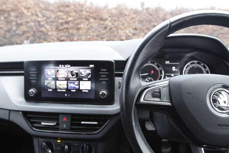 Bluetooth system, Easy light assist, Front assist system, Lane assist, Multi function trip computer, PAS, Rain and light assist with auto dimming rear view mirror, Speed limiter, 2 USB - C ports, 8 loudspeakers, Bolero radio with 8" touchscreen display, DAB Digital radio, Body colour door mirrors and handles, Chrome grille surround, Electrically adjustable and heated door mirrors, Front and rear electric windows, Tinted windows, 12V Accessory socket in centre console, Chrome inner door handles, Cloth upholstery, Decor strip on dashboard and door panel, Front head restraints, Glasses storage in roof liner, Height adjustable drivers seat, Height adjustable passenger seat, Instrument cluster with chrome painted decor ring, ISOFIX for rear passenger seat, Leather gearknob and handbrake lever, Manual lumbar support for front seats, Reading lights for driver and front passenger, Sun visor with make up mirror for front passenger, Third rear headrest, Umbrella, 3x3 point rear seatbelts, Curtain airbags, Emergency call and proactive services, Front head and side airbags, Hill hold control, Passenger airbag switch off function, Seat belt reminder for all seats, Two tone horn, Alarm, Anti-theft wheel bolts, SAFE function for remote central locking, Temporary space saver wheel,