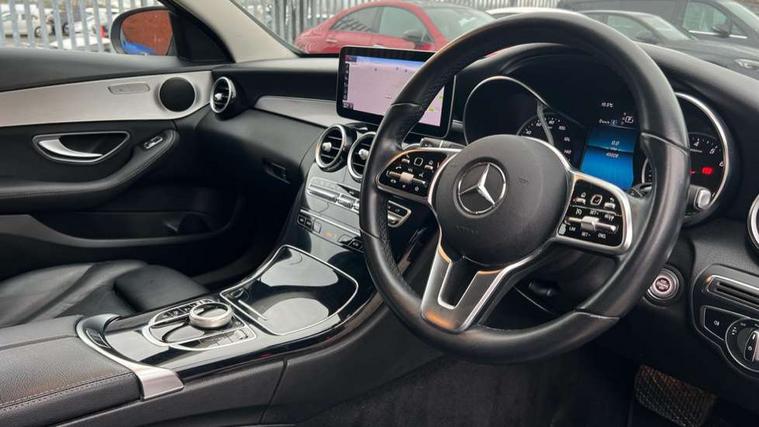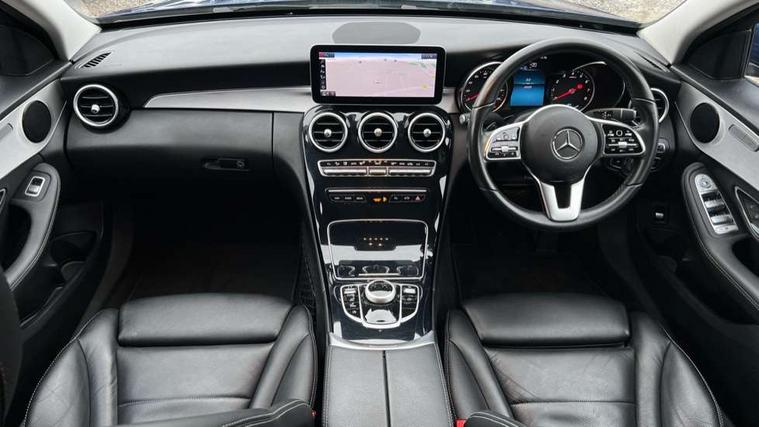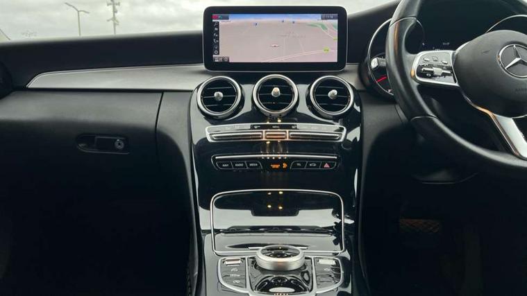 10.25" display screen, Active park assist with parktronic system, Attention assist, Bluetooth system, Collision prevention assist plus, Cruise control with speedtronic variable speed limiter, DYNAMIC SELECT with a choice of driving modes (ECO, Comfort, Sport, Sport+ and Individual), Instrument cluster with display, Multi function trip computer, Multifunction colour display, Navigation system, Outside temperature gauge, Pre-wiring for SD navigation system, Remote boot release, Reversing camera, Service indicator (ASSYST PLUS), Speed sensitive steering, Petrol Particulate Filter, 2 USB ports in centre console, DAB Digital radio, Frontbass loudspeakers, Mercedes Audio 20 radio/single CD + telephone keypad, SD card slot, Steering wheel mounted audio controls, Adaptive brake lights, Aerial in rear window, Body coloured bumpers, Body coloured door mirrors, Electric windows one touch open/close, Electrically adjustable and heated door mirrors, Green tinted glass, Heated windscreen washers, LED daytime running lights, LED Headlights, LED Indicators, LED tail lights, LED third brake light, Radiator grille with integral star and 2 louvres in matt iridium silver with chrome trim, Rain sensor windscreen wipers, Side windows surround in polished aluminium, 2 cupholders in front centre console, 3 spoke leather multi function steering wheel with silver chrome trim, 40:20:40 split folding rear seats, Artico man-made leather upholstery, Auto Mercedes-Benz child seat recognition sensor, Black floor mats, Dual zone automatic climate control, Electric front seat height adjustment, Front and rear head restraints, Front centre armrest with storage compartment, Front door sills with Mercedes Benz lettering, Gearshift paddles, Heated front seats, Illuminated glovebox, Rear top tether child seat ISOFIX attachment, Sports seats, Sunvisors with illuminated vanity mirrors, Lighting pack - C class, Mirror pack - C Class, Seat comfort pack - C Class, Stowage space pack - C Class, 3 rear 3 point seatbelts, ABS with Brake Assist, Active bonnet, Adaptive brake system, Black seat belts, Child proof door locks, Crash sensor, Drivers knee airbag, Drivers pelvis airbag, Dual stage driver/passenger airbags, Electronic parking brake, ESP with ASR, Front passenger seat occupancy sensor, Front side airbags, Hill start assist, Rear seatbelt warning indicator, Tyre pressure monitoring system, Warning triangle and first aid kit, Window airbags, Alarm system/interior protection/immobiliser, Chrome surround in electric key, Remote central locking, Brushed aluminium trim, 17" 5 spoke aero alloy wheels in Silver, Tyre inflation kit,