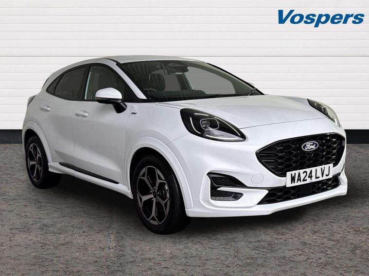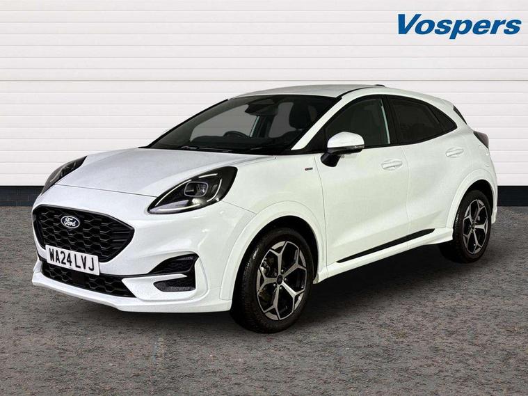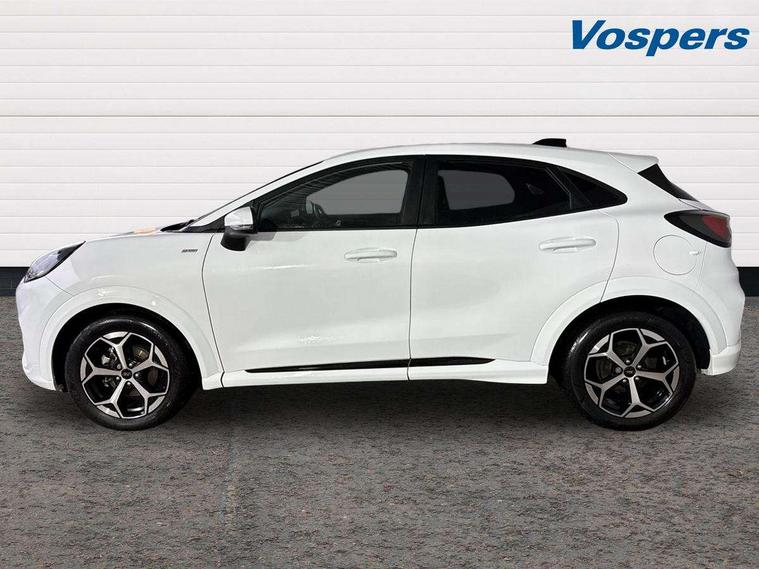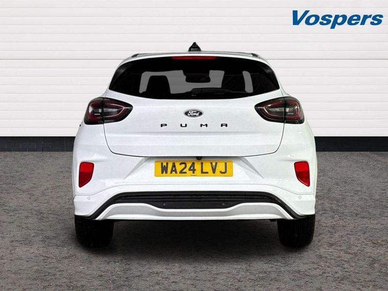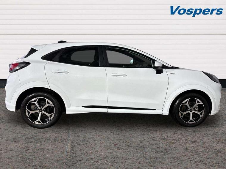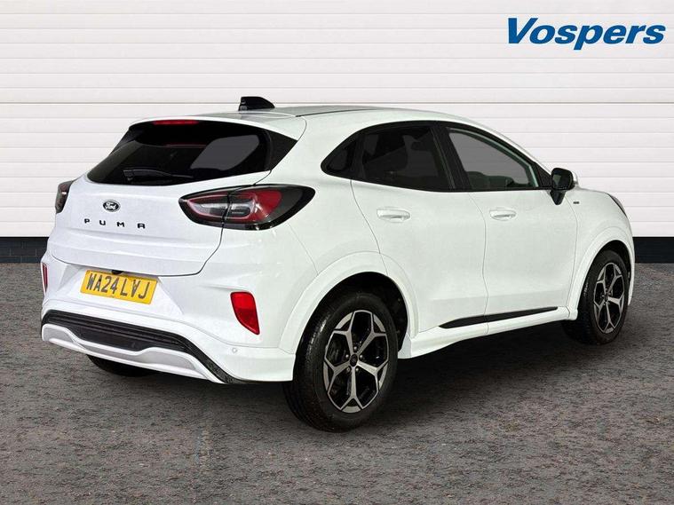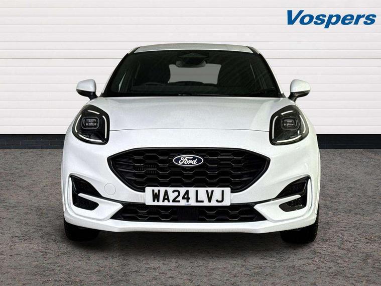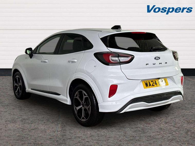 Driver impairment monitor, Emergency call service, Ford easy fuel, Full digital 12.8" instrument cluster, Lane keeping aid with lane departure warning, Power assist steering, Selectable drive modes(Normal, Eco, Sport, Slippery and Trail), Speed sign recognition, Sport suspension, 12" landscape touchscreen display with wireless apple car play and android auto 6 speaker audio system, Ford pass connect and emergency assistance, Ford SYNC4 with connected navigation, Automatic headlights with rain sensing wipers and auto high beam, Front fog lamps, LED daytime running lights, LED rear lamps, LED third brake light, Power foldable heated door mirrors with puddle lamps and puma logo protection, Quickclear heated windscreen, Rear privacy glass, Rear side wing doors, Rear wiper, ST-Line body styling kit with unique grille, 3 seat bench in 2nd row, Centre console with armrest and stowage, Electronic automatic temperature control (EATC), Ford megabox extended bootspace, Front and rear head restraints, Front floor mats, Manual 4 way driver seat adjust with lumbar adjustment, Single front passenger seat, ST- Line cloth trim with red stitching, 3 rear seatbelts, Child safety lock, Electronic stability control (ESC) and hill start assist, Pre-collision assist with autonomous emergency braking, pedestrian/cyclist detection & post-collision braking, Tyre pressure monitoring system (TPMS), Thatcham alarm,