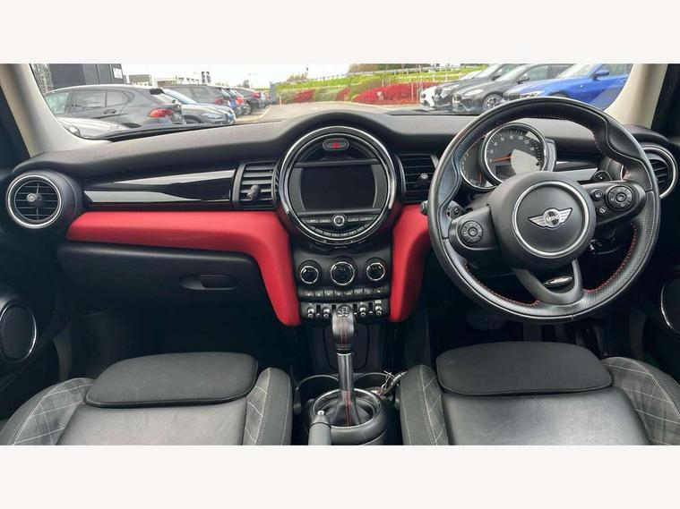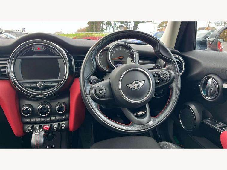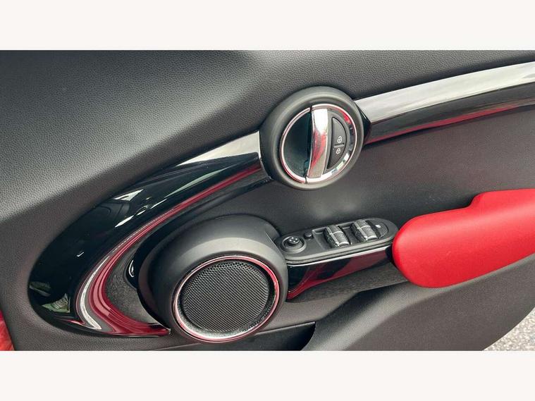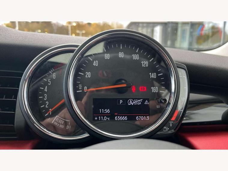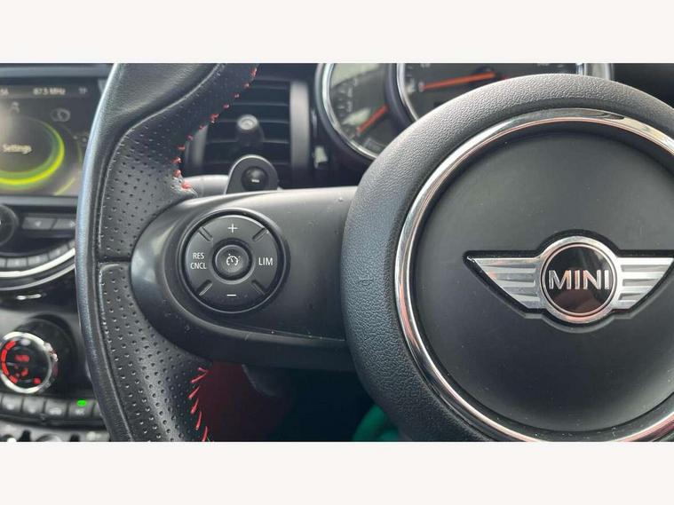 Acoustic seat-belt warning, Brake fluid level warning light, Brake pad wear indicator warning light, DTC - Dynamic traction control, Exterior temperature gauge, Intelligent emergency call, MINI TeleServices, Oil level indicator, On board computer, Push button starter, Service interval indicator, Servotronic PAS, Electronic differential lock, Performance Control, Auxiliary input socket, DAB digital radio module, 2 speed wipers+intermittent wipe, Anti dazzle mirror, Anti trapping/one touch open close front windows, Body colour scoop integrated into engine- compartment lid, Body coloured bumpers, Chrome bezels around rear lights and headlights, Chrome door handles, Chrome plated fuel cap, Chrome plated trim on bottom edge of window, Chrome strip on lower grille, Electric front windows, Electrically adjustable door mirrors, Flared wheel arches, Follow me home headlights, Green tinted heat insulating glass, Heated door mirrors/heated windscreen washers, Heated rear window with auto timer, High gloss black tailgate, Honeycomb radiator grille, John Cooper Works body kit, John Cooper Works roof spoiler, Rear wiper, Twin chromed exhaust pipes, White indicator lights, 2 rear head restraints, 4 boot load lashing points, 4 way manually adjustable passenger seat with height, reach, tilt, backrest and headrest, 6-way manually adjustable driver's seat, Active carbon filter, Air recirculation system, Auxiliary socket in centre console storage compartment, Centre console storage, Driver's seat height adjuster, Driver/passenger sunvisors, Front and rear cupholders, Front head restraints, Front interior light, Front passenger grab handle, Front seat backrest storage nets, Front sports seats, Gear/selector and handbrake in artificial leather, Internal chrome door handles, Isofix child seat preparation, John Cooper Works treadplates, Luggage compartment lighting, Multifunction steering wheel, Reach + rake adjustable steering column, Rear grab handles, Rear storage trays, Split folding rear seats, Storage compartments in doors, Toolkit in luggage compartment, Vanity mirrors, 3 point seatbelts, ABS/EBD, ASC+T, Cornering brake control (CBC), Crash Sensor - activates hazard/interior lighting + unlocks doors, Driver and passenger airbags, Driver/front passenger side airbags, DSC - Dynamic Stability Control, Fuel cut off safety device, Head airbags, Hill start assist, Passenger airbag deactivation system, Seatbelt pretensioners, Tyre pressure warning, Ventilated front disc brakes, Drive away door locking, Locking wheel bolts, Remote central locking/doors+fuel cap+tailgate, Second remote key, Thatcham category 1 alarm + immobiliser,