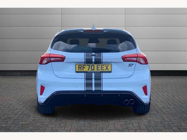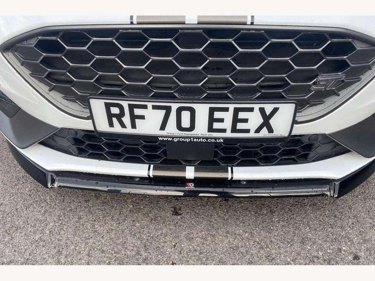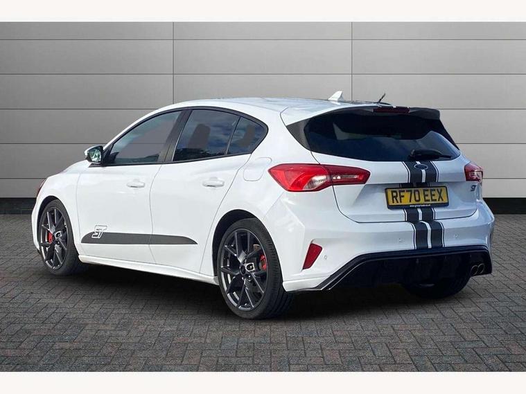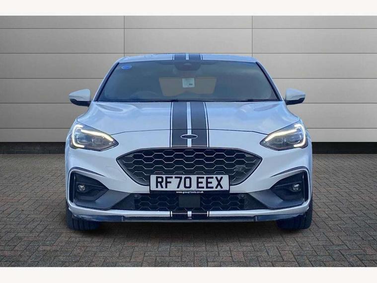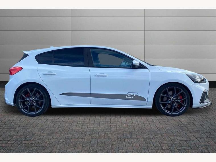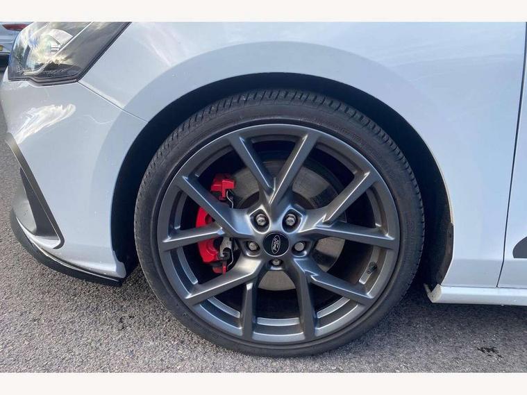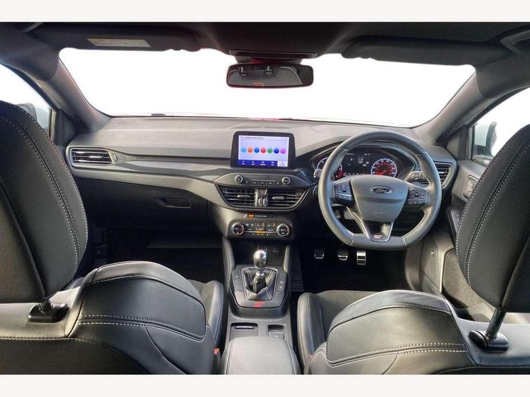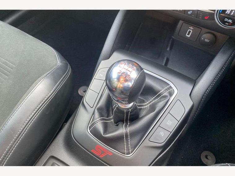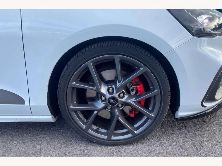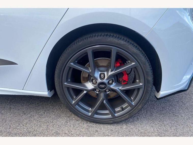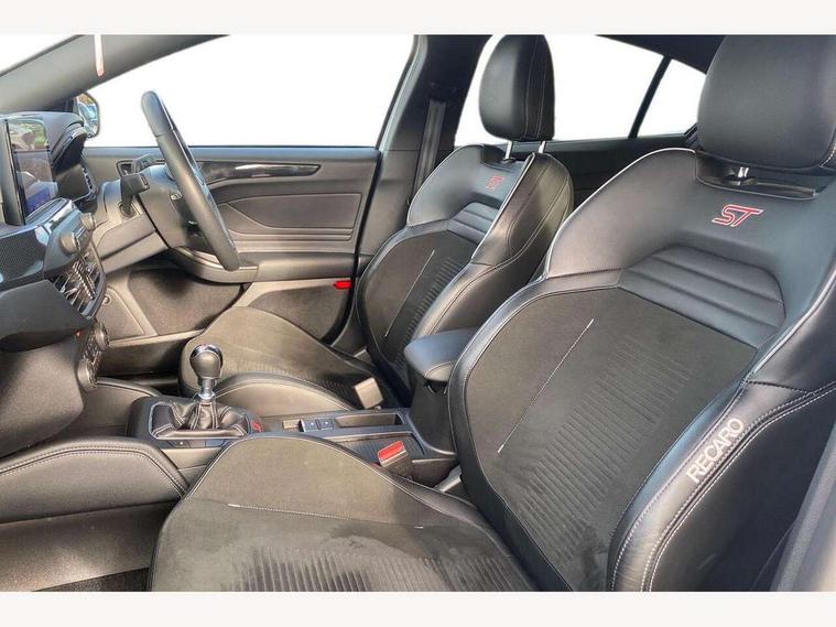 12.3" Digital instrument cluster, Bluetooth system, Digital clock, Easy fuel capless refuelling system, Eco mode, Ford SYNC 3 navigation with 8" TFT touchscreen, DAB radio and app link Android auto/Apple carplay, Front and rear parking sensors, Head up Display, Intelligent speed assist, Lane keeping system - lane keeping alert and lane keeping aid, PAS, Rear wide view camera, Selectable drive mode, Trip computer, Wireless charging pad, Diesel particulate filter, Unique ST sport suspension, 2 USB ports, Aux input, B&O Premium audio system with 360 degree sound, 10 speakers, 675 Watts amplifier power & digital sound processor, Adaptive full LED headlamps with dynamic LED headlights, LED turn indicators, glare-free high beam, LED rear tail lamps and LED front fog lights, Auto dimming rear view mirror, Auto headlamps (on/off), Automatic rain sensing wipers, Body colour large rear spoiler, Body coloured bumpers, Body coloured door handles, Body coloured electrically operated and heated door mirrors with side indicators, Electrically operated front and rear windows with one touch opening and closing, Front variable intermittent wipers with electric wash, Heated rear window, LED daytime running lamp, Polished twin tailpipe, Power folding door mirrors with puddle lights, Quickclear heated windscreen, Rear privacy glass, Scuff plates front, polished stainless steel with etched ST logo, ST upper and lower grille with full body styling kit and front and rear ST badge, Tailgate wash/wipe, Unique door and instrument panel inserts, 3 spoke flat bottomed leather steering wheel with red stitching, 6 way power adjustable driver seat, Alloy finish pedals, Aluminium gear knob, Dark headliner, Driver's lumbar support, Dual zone electronic air temperature control, Front and rear floor mats with metal grey stitching, Front passenger seat manual height and lumbar adjust, Heated driver and front passenger seats, Height adjustable front headrests, Isofix child seat preparation, Leather heated steering wheel, Load through ski hatch, Reach + rake adjustable steering column, Rear centre headrest, Recaro part leather upholstery, Soft console knee pads with red stitching, Driver assistance pack with Adaptive Cruise Control - Focus, 3x3 point rear seatbelts, ABS+Electronic Brake force Distribution, Auto hold function, Driver airbag, Electronic parking brake, Electronic stability control, Front and rear seatbelt reminder, Front inertia reel height adjustable seatbelts with pre-tensioners, Front passenger airbag, Front side airbags, Hill start assist, Passenger airbag deactivate switch, Post collision braking, Power child locks on rear doors, Pre collision assist with autonomous emergency braking and pedestrian/cyclist detection, Red brake calipers, Side curtain airbags, Three rear inertia reel lap/diagonal seatbelts, Tyre pressure monitoring system, Ford keyfree system with Keyless entry and keyless start/sleep mode key fob, MyKey system, Remote central locking & engine immobiliser, Thatcham category 1 alarm, 19" 5x2 spoke alloy wheel with magnetite finish, Mini steel spare wheel,