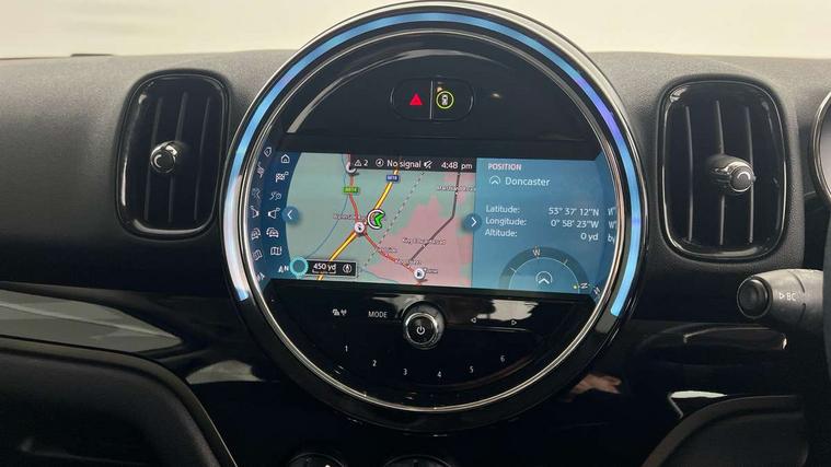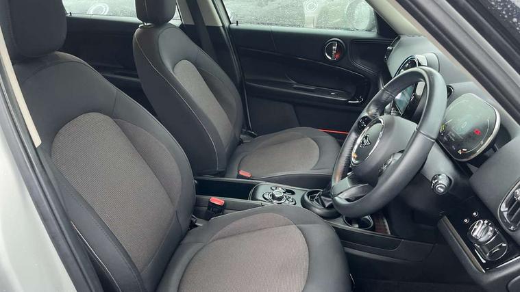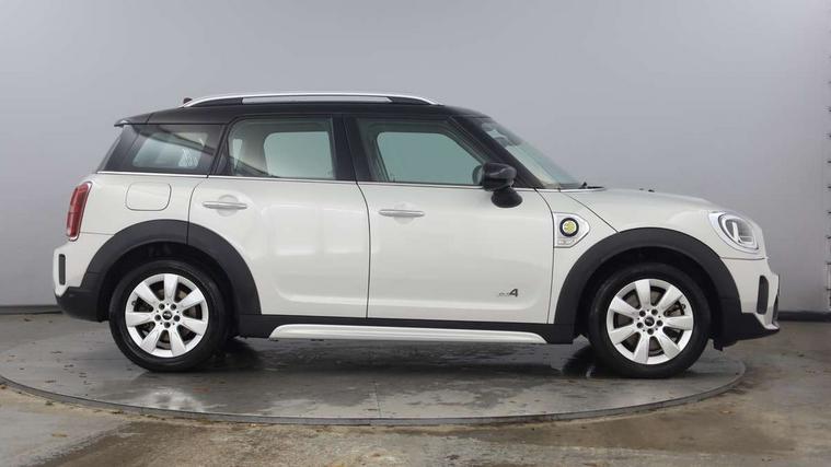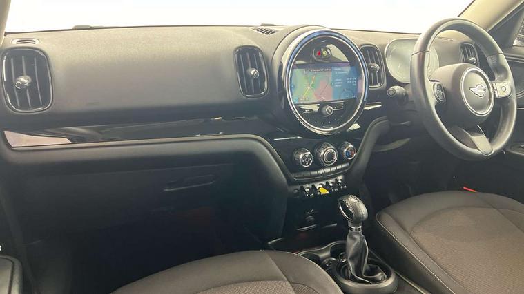 Active Guard incl speed limiting and lane departure functions with auto steering, and front collision warning with brake intervention, Automatic start/stop function with brake energy recuperation, Compatible mobile phone bluetooth with audio streaming, Cruise control with brake assist, eDrive button, Electro-mechanical speed dependant steering assistance, Instrument cluster, On board computer, Rear parking distance control, 36L fuel tank, Automatic transmission, Charging flap on front left lower A-panel, Double Vanos system, Fully variable valve control, High precision injection, Home charging cable, Performance Control, Public charging cable, FM tuner and DAB digital radio, Bonnet scoop, Chrome border honeycomb structure radiator grille with S badge, Chrome fuel filler cap, Day time driving lights, Dynamic brake lights, Electric windows, Heated rear window, Heated windscreen washer jets, LED fog lights, LED Headlights, Metal door sill strips with Cooper S imprint, Model logo, Model logo on Tailgate, Rain sensor with auto headlights, Rear fog lights, Rear window wiper, Side scuttle panel with integrated indicator, Split rear doors, Sun/heat protection glass, Twin exhaust tailpipe, White indicator lenses, 12V socket in centre console, 3 spoke sport leather steering wheel + limiter function and audio controls, 360L luggage compartment capacity, 4 lashing eyes in luggage compartment, 40:20:40 split folding rear seats, Chrome interior highlights, Colour line - Carbon black, Cupholders, English handbook, Floor mats, Front headrests, Glove compartment, Headliner with grab handles and clothes hooks, Height and length steering column adjustment, Interior lighting with 12 basic colours selectable via toggle switch in roof, Isofix rear child seat preparation, Leather gearshift lever and handbrake gaiters, LED reading lights, vanity mirror lights, front foot well light and spotlight on front seats, Manual air conditioning, Mechanical seat adjustment, driver seat height adjust, forward/back and front seats backrest, Multifunction steering wheel, Passenger seat height adjuster, Rear headrests, Storage compartments in doors, Sunvisors with vanity mirrors, Excitement pack - Countryman, Navigation pack - Countryman, 2 tone horn, 3 point seatbelts on all seats, 6 Airbags - front, side, head and seat belt tensioners, Acoustic pedestrian protection, Anti-lock braking system (ABS), DSC - Dynamic Stability Control, Electronic handbrake, Front and rear disc brakes, Hill start assist, Tyre pressure monitoring system, Alarm system with tilt sensor, monitoring doors, bonnet interior and tailgate, Auto drive away locking, Deadlocking function, Electronic vehicle immobiliser, Locking wheel bolts, Start/stop toggle with keyless go, Piano black interior trim, Tool kit,