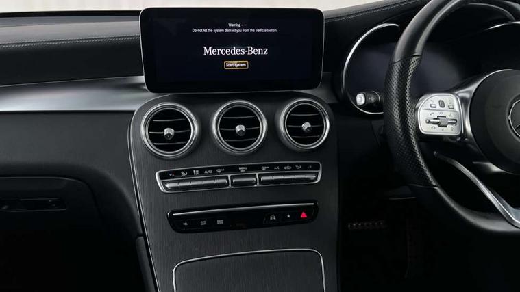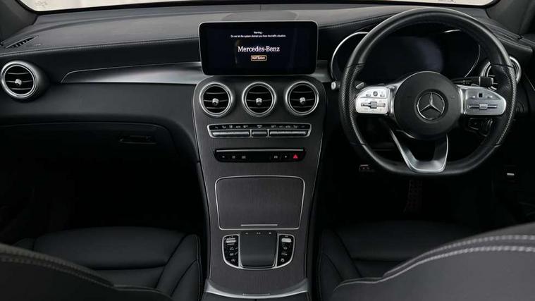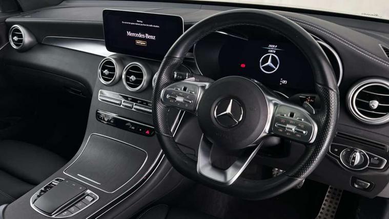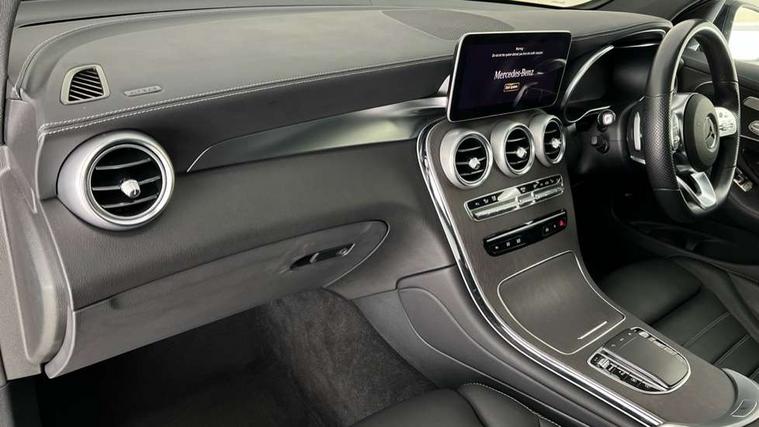 360 degree camera, Active parking assist with parktronic system, Attention assist, Bluetooth interface for hands free telephone, Collision prevention assist plus, Cruise control with speedtronic variable speed limiter, Direct steer speed sensitive steering, DYNAMIC SELECT with a choice of driving modes (ECO, Comfort, Sport, Sport+ and Individual), Easy pack automatic powered tailgate, eCall emergency call system, ECO start/stop function, Hard disk navigation, Hey Mercedes Voice activation, Instrument cluster with12.3-inch digital instrument cluster display. High resolution instrument cluster screen with choice of three display styles, MBUX Interior assistant, Mercedes connect me with remote online services, Multi function trip computer, Outside temperature display, rear seatbelt status indicator, Remote boot release, Service indicator (ASSYST), Smartphone integration with Apple CarPlay and Android auto, Traffic sign assist, 4MATIC permanent four wheel drive, 66 litre fuel tank, 9G TRONIC plus automatic transmission with steering column gear selector, DIRECT SELECT steering wheel gearshift paddles, Petrol Particulate Filter (PPF), Sports suspension tuned for improved handling and driving dynamics, Advanced sound system, MBUX multimedia system with DAB digital radio and touchpad, Media display 10.25-inch touchscreen display, Pre installation for Mercedes Benz Link, USB ports x 2 in centre console, Adaptive brake lights, Adaptive high beam assist, AMG bodystyling - AMG front apron with sporty air intakes and chrome trim element, AMG diffuser-look rear apron with insert in black, Body colour door mirrors, Body coloured bumpers, Digital light LED headlights with projection function, Electric sliding glass sunroof, Electric windows one touch open/close, Electrically adjustable and heated door mirrors, Front, side and rear exterior chrome trim, Headlamp assist automatic headlamp activation, Headlight washers, High level LED brake light, Integrated LED daytime running lights, LED indicator lights, LED rear fog lights, LED tail lamp, Motor way mode function and locator lighting, Privacy glass with dark glass from B pillar backwards, Radiator diamond grille, Rain sensor windscreen wipers, Range adjustable headlights, Rear side wing doors, Rear wiper, Roof spoiler, Running boards, Tinted glass all round with single layer safety glass, Tinted rear windows, Two chrome plated tailpipe trim elements, Variable front intermittent wipers, Welcome and follow-me home light functionality, 2 way rear head restraints, 3 seat bench in 2nd row, 3-spoke multifunction sport AMG steering wheel in black nappa leather with flattened bottom section, chrome insert and perforated leather in grip area, 40:20:40 split folding rear seats, Ambient lighting, AMG floor mats with edging and embroidered AMG lettering, AMG sports seats, Artico man-made leather upper dashboard with contrast topstitching, Automatic child seat recognition sensor, Black roof lining, Dividing net - rear, Double cup holder in centre console, Easy-pack removable load compartment cover, Electric height/reach adjustable steering column, Front armrest with storage box, Front door sills with Mercedes Benz lettering, Front head restraints, Front passenger seat, Heated front seats, Illuminated and lockable glove compartment, Illuminated door sills, Leather upholstery, Rear top tether child seat ISOFIX attachment, Sports pedals with stainless steel surfaces and rubber studs, Steering wheel with touch control buttons, THERMOTRONIC 3 zone automatic climate control, Interior lighting pack - GLC, Memory pack - GLC, Mirror pack - GLC, Storage pack - GLC, 3 rear 3 point seatbelts, Active bonnet, Adaptive brake system with HOLD function and brake drying in the wet, ASR traction control, Black seat belts, Brake calipers with Mercedes-Benz lettering + perforated brake discs, Child proof door locks, Dual-stage airbags - driver and front passenger, driver knee bag and window bags for driver, front passenger and rear passengers, Electronic parking brake, Electronic stability programme (ESP) with curve dynamic assist and cross wind assist, Front and rear seatbelt reminder, Front passenger seat occupancy sensor, Front seatbelt pretensioners, Hill start assist, Tyre pressure monitoring system, Warning triangle and first aid kit, Alarm system/interior protection/immobiliser, Automatic door locking, Keyless Go entry and starting function, Remote central locking, Anthracite open pore oak wood trim, 20" AMG 5 twin spoke alloy wheels painted in titanium grey with high sheen finish, Summer tyres, Tirefit tyre sealant kit,