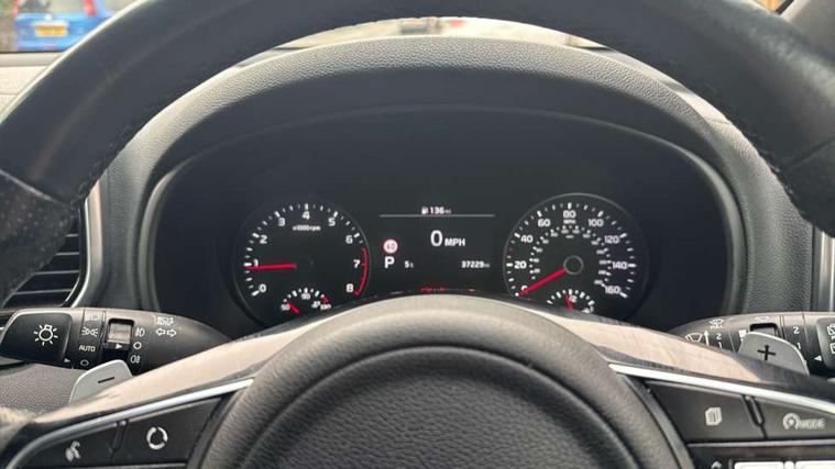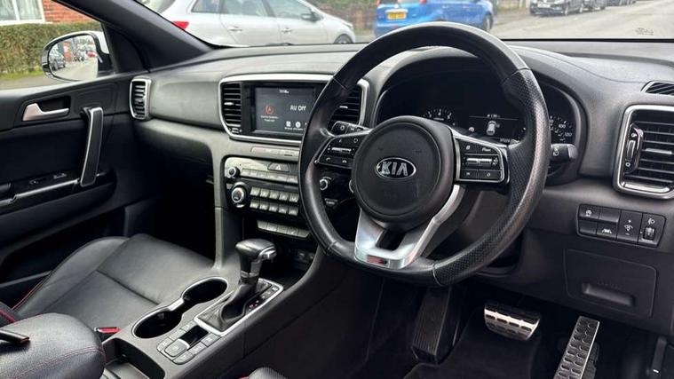4.2" supervision colour cluster display, 8" touchscreen satellite navigation with European mapping and traffic messaging channel, Android auto with voice control, Apple car play with voice control, Cruise control + speed limiter, Drive mode selector, Driver attention warning, Emergency stop signalling system, Front parking sensor, Kia connected services featuring TomTom live, Lane keep assist, Rear parking sensor, Reversing camera, Speed limit information, Speed sensitive power steering, Telematics system with UVO connect services, Trip computer, Windscreen washer level indicator, Intelligent Stop and Go, 6 speaker audio system, Bluetooth audio streaming, DAB Radio with MP3, Rear USB port, Steering wheel mounted audio controls, USB/iPod/auxiliary input connections, All round electric windows with drivers auto up/down function, Auto dimming rear view mirror, Automatic lighting control, Automatic window defogger, Black wheel arch body mouldings and side sills with dark chrome insert, Body colour door handles with chrome inserts, Body colour door mirrors, Chrome window surround, Dark chrome front bumper insert, Dark chrome front grille surround, Electrically adjustable/heated/folding door mirrors with LED indicators, Front wiper de-icer, High beam assist, High gloss black blade mesh radiator grille, LED Bi-Function headlights, LED daytime running lights, LED ice cube front fog lights, LED rear lights, Privacy glass - Rear windows and tailgate, Rain sensing front wipers, Rear spoiler, Rear wiper, Roof rails, Shark fin antenna, Silver painted front and rear skid plates, Tinted glass, Trailer stability assist, Welcome and follow-me home light functionality, Wide view drivers door mirror, 12V power in front and rear centre console, 3 x passenger assist grips, 60/40 split folding rear seat, Air filter, All-round height adjustable headrests, Aluminium door scuff plates, Aluminium pedals, Black headlining, Centre cabin light, Centre console storage box, Chrome boot sill guard, D-Shaped sports leather steering wheel and perforated inserts with GT-Line logo, Driver and front passenger side sunvisors with illuminated vanity mirrors, Driver's seat manual height adjust, Drivers seat power lumbar support, Dual zone automatic air conditioning, Front and rear door storage, Front cabin LED map light with sunglasses case, Front door courtesy reflectors, Front seat and rear pockets, Front/rear centre armrests, Gear shift indicator, Glovebox illumination, Heated front and outer rear seats, Interior door lock/unlock function, ISOFIX Child seat top tethers and anchor fixings, Leather trimmed door armrests, Leather trimmed gearshift, Luggage area light, Luggage area load cover, Luggage net hooks, Paddle shift controls, Rear centre armrest with cupholder, Rear coat hooks, Satin chrome interior door handles, Tilt/telescopic adjustable steering wheel, Two tone leather upholstery, Ventilation ducts to rear compartment, Active front headrests, All round 3-point seatbelts, Anti-lock braking system with electronic brakeforce distribution, Dual front side airbags, Electronic parking brake, Electronic stability control with downhill brake control, Front passenger airbag cut-off switch, Front seatbelt pretensioners + load limiters, Height adjustable front seatbelts, Hill start assist control (HAC), Impact sensing auto door unlocking, Rear door child safety locks, Traction control, Twin curtain airbags with roll over sensor, Twin front airbags, Tyre pressure monitoring system, Advanced anti-theft system including immobiliser and alarm, Door deadlocks, Engine Start/Stop Button with Smart Entry System, Locking wheel nuts, Speed sensitive auto door locking, Visible vehicle identification number, High gloss black centre fascia, 19" alloy Wheels B-type, Tyre mobility kit,
