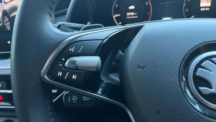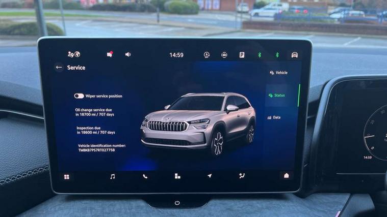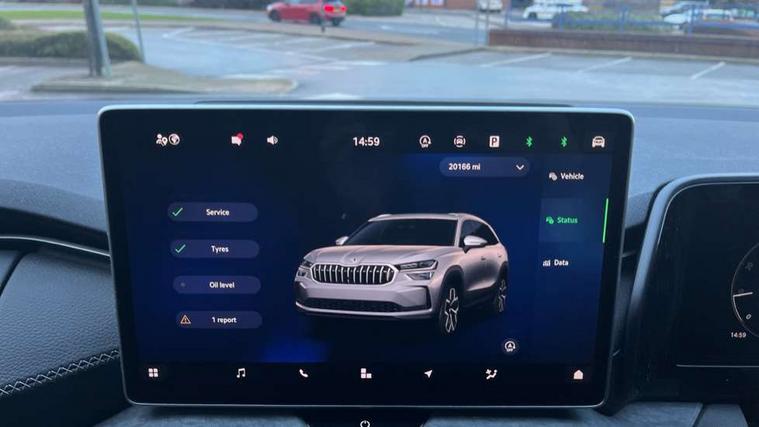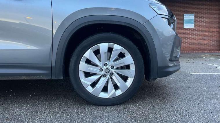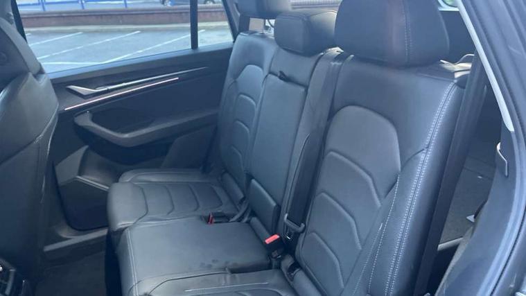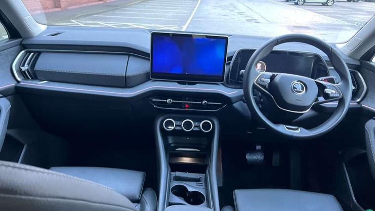 13" satellite navigation touchscreen display, Blind spot detection with door exit warning, Bluetooth system, Drive mode selector, Driver alert with fatigue sensor, Driver drowsiness alert system, Dry display cleaner, e call+, Front cross traffic assist, Lane assist, PAS, Rear traffic assist, Tailgate unlocking from outside, Traffic sign recognition, USB C Port x 2 in front centre console, Virtual Cockpit - 10.25" digital display, Voice control system, Wireless charging for two smartphones (15W) with cooling function, Wireless SmartLink for Apple CarPlay and Android Auto, Stop/start function, 2x USB-C in the rear, DAB Digital radio, Aero front windscreen wipers with intermittent function, Auto dimming rear view mirror, Black wheel arch surrounds, Body colour bumpers, Body colour door mirrors and handles, Cornering light and poor weather light, Electric folding /adjustable/separted heated/folding door mirrors, auto dimming with boarding sports and memory function, Electric front and rear windows, Heat insulating glass in windshield, Heated rear window, Ice scraper in fuel tank cap, Invisible tailpipe, LED daytime running lights, LED rear fog light, LED third brake light in rear spoiler, Light assistant with automatic headlight control and coming home feature, Logo projection in door mirrors, Privacy glass, Rear side wing doors, Rear spoiler, Rear window wiper, Safety reflectors on front and rear doors, Window control switches with black trim, Windscreen wipers with rain sensor, Without engine designation, 1.5l bottle holder points in all door, 12V socket in boot, 1x centre rear reading light, 2 seat bench in 3rd row, 3 configurable smart dials with 32mm coloured display, 3 seat bench in 2nd row, 4 foldable roof handles with rear coat hooks, Automatic gear selector on steering wheel, Chrome interior door handles, Driver/front passenger reading lights, Fabric headlining, Fixed bench 40:60:40 split folding backrests, Front and rear floor mats, Front centre armrest with jumbo box storage compartment, cup holder and 12V socket, Front courtesy lights, Height adjustable front headrests, Interior ambient lighting, Isofix child seat fittings in outer rear seats and front passenger with top tether, Manually adjustable steering column, Pollen filter, Rear centre armrest with cupholders, Rear seat boot backrest release, Retractable luggage compartment cover, Single front passenger seat, Sliding trunk cover, Small Bags on the inner sides of the front backrests, Storage pocket including mobile phone pockets on the backs of the front seats, Sunvisors with illuminated vanity mirrors, Three rear height adjustable headrests, Ticket holder on A Pillar, Tri zone climate control, Umbrella in door panel x1 made from sustainable materials, Upper and lower glovebox with card holder and coin compartment, USB C port by rear view mirror for charging only (15W), Exterior styling package - Kodiaq, Auto door release and activation of warning lights in the event of an accident, Driver and front passenger airbag with knee airbag and front passenger airbag deactivation, Electric child locks, Electronic parking brake, ESC (incl. ABS+EMD+MSR+ASR+EDL+HBA+DSR+RBS+ESBS+MCB+TSA+XDS), Front assist with braking reaction to vehicles, pedestrians and cyclists, Front disc brakes, Fuel cut off safety device, Height adjustable front 3 point seatbelts + pretensioners, Hill hold control, Junction assist with automatic emergency braking, Rear disc brakes, Safety vest holder in door, Seat belt reminder for all seats, Three point rear seat belts, Two tone horn, Tyre pressure monitor, Anti-theft wheel bolts, Immobiliser, Remote central locking with 2 keys, Black/grey fabric with green cross stitching on dashboard, Swan feathers grey dashboard and door decorative inserts, Breakdown kit,