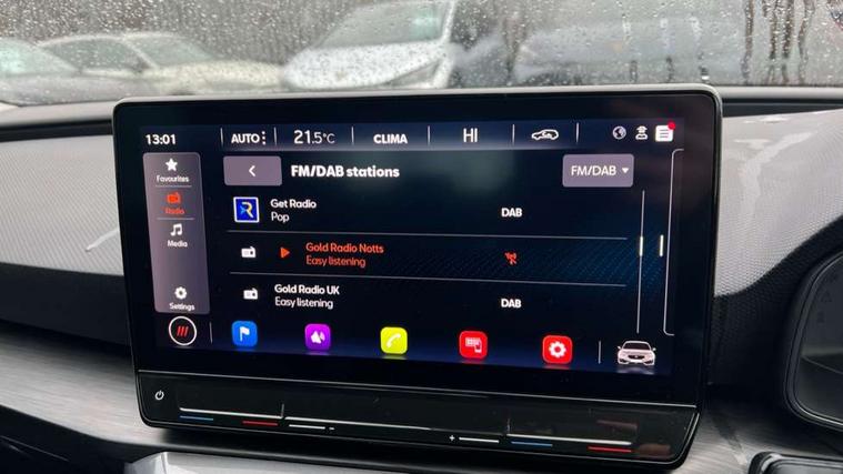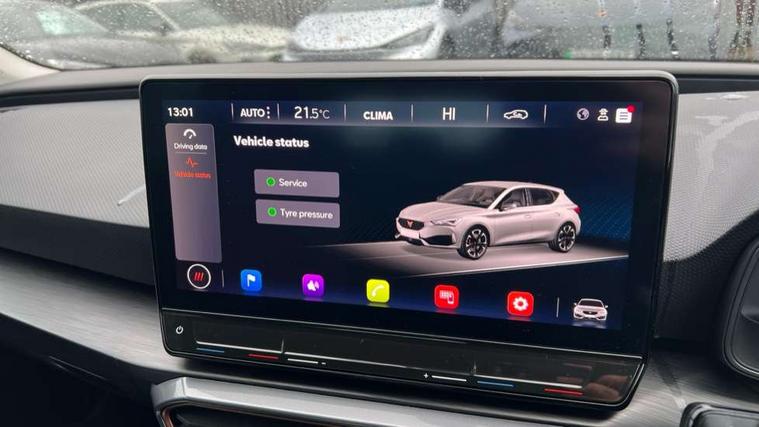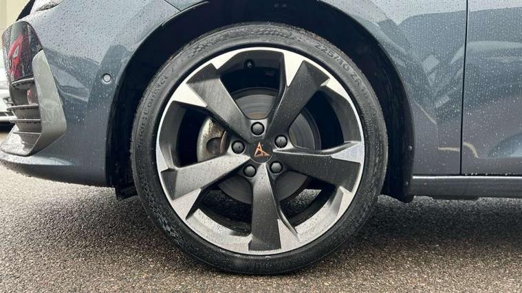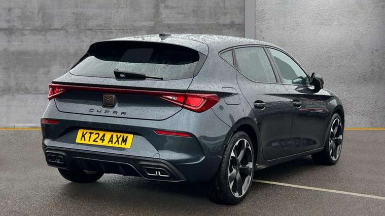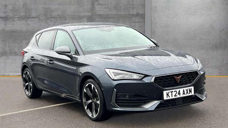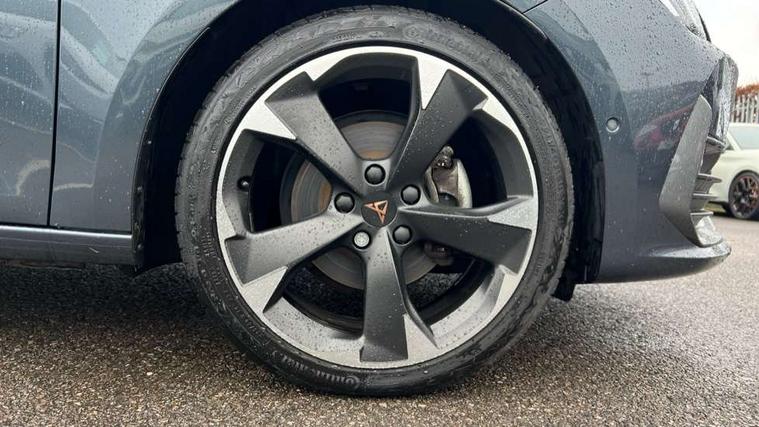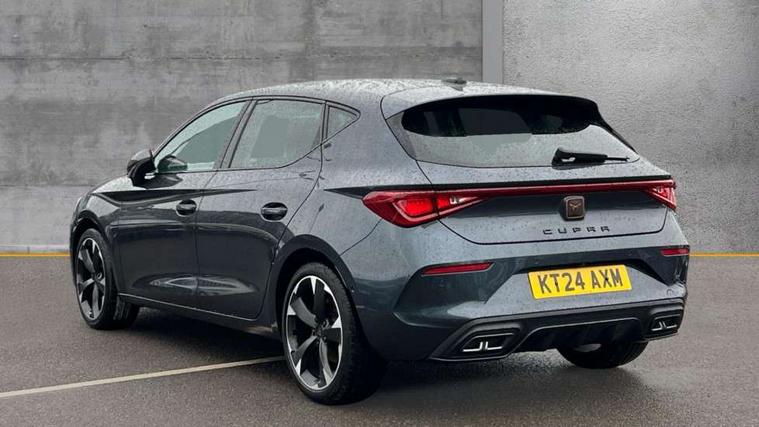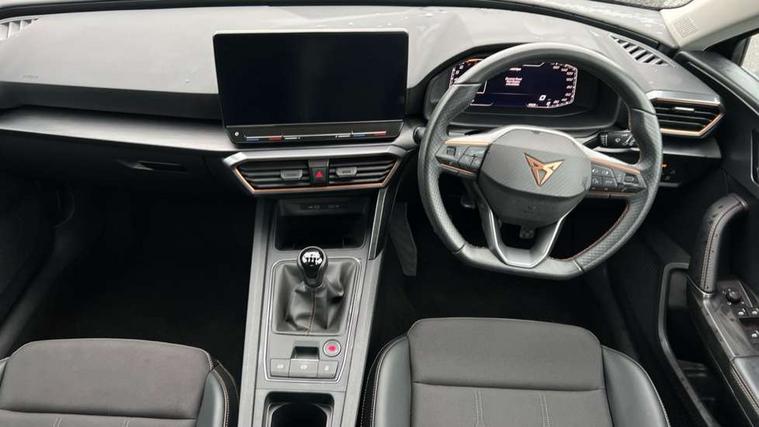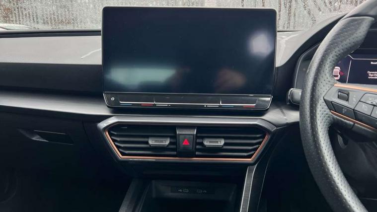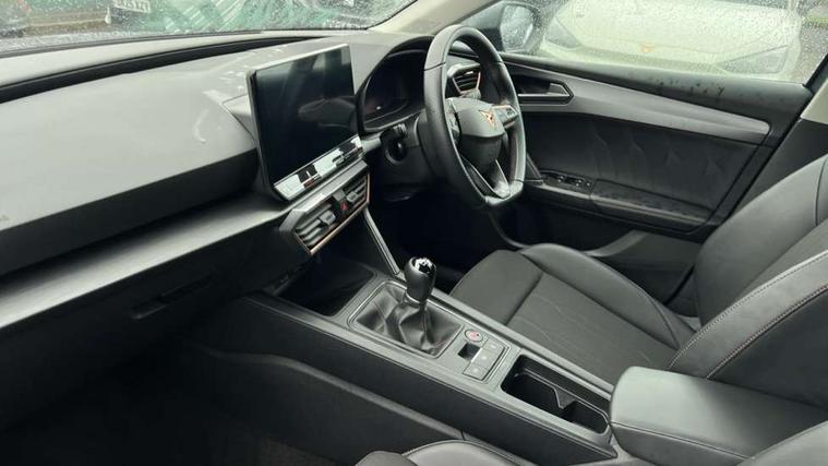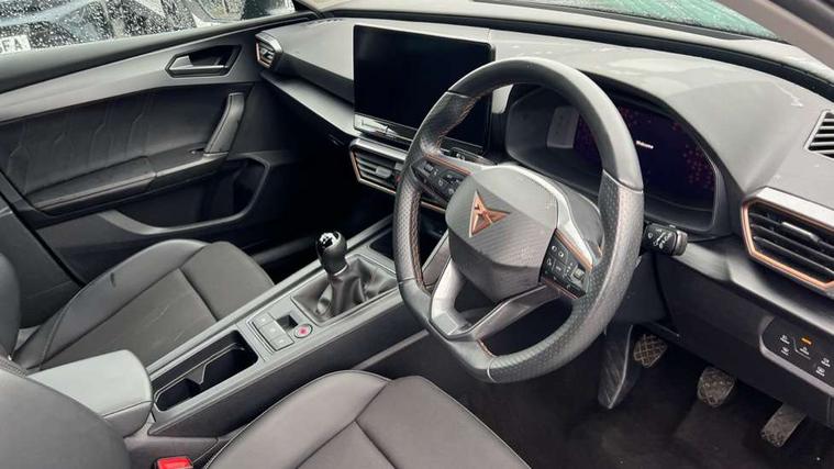 CUPRA drive profile selection with (Comfort/Sport/Individual), throttle response and gearshift mode, Digital cockpit, E-call, Electro mechanical speed sensitive power steering, Four x USB Type C ports (2 in front and 2 in rear), Front assist with forward collision warning braking reaction to vehicles, pedestrians and cyclists, Full link smartphone integration with Mirror Link, wireless Apple CarPlay and wired Google Android Auto, Lane assist, Lockable tailgate, Park assist (inc front/rear parking sensors), Rear view camera, RPM, trip computer, outside temp gauge, instrument light brightness, low fuel warning light, lights on reminder, gearshift indicator, Service interval indicator, Start/stop system with regenerative braking, Wireless phone charger, Sports suspension, Auxiliary input socket, Auto dimming rear view mirror, Body colour door handles, Body coloured bumpers, Cupra sports bumpers, Dark tinted rear windows, Electric front/rear windows, Electrically adjustable, heated and folding door mirrors, LED front fog lamps with cornering function, LED headlights with dynamic turn signals, tail lights, rear fog lights with rear coast to coast lighting, Rain sensing wipers, Rear diffuser with twin exhaust pipe on each side, Rear side wing doors, Rear wash/wipe, Separate daytime running light with automatic headlight control and coming home feature, Third brake light, 12v power supply in centre console, 3 seat bench in 2nd row, 5 headrests, 60/40 split rear bench seat with armrest, Ambient lighting with glovebox, footwell and single monocolour, Cupra Leather flat bottomed, perforated steering wheel, Driver/passenger manual seat height adjustment, Folding boot cover, Front and rear reading lights X 4, Front centre armrest, Front seats manual lumbar adjustment, Grey headlining, Height/reach adjust steering wheel, Illuminated interior front door sills, ISOFIX points in outer rear seats with top tether anchorage points, Jack and tool kit, PVC/Cloth upholstery with copper stitching, Single front passenger seat, Sports seats, Sunvisors with illuminated mirror, Three zone climate control, Media system plus with navigation pack - Leon Cupra, Safety and driving pack (M) - Cupra leon, 3 point seatbelts on all rear seats, ABS, Brake control system - ESC and brake booster, Child proof door locks, Cupra black brake calipers, Driver and front passenger airbags with front passenger airbag de-activation, front side and curtain airbags, Electronic parking brake, Extended safety system - seat belt tensioner, window closure and hazard lights, Hill hold control, Rear disc brakes, Seat belt reminder for front and rear seats, Tiredness recognition system, Tyre pressure monitoring system, Anti theft alarm system with interior monitoring in cab, backup horn and towing protection, KESSY Advanced - Keyless start, keyless entry, Locking wheel bolts, Chrome and copper interior detailing, 18" Machined sport black and silver alloy wheels with 92Y tyres,