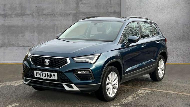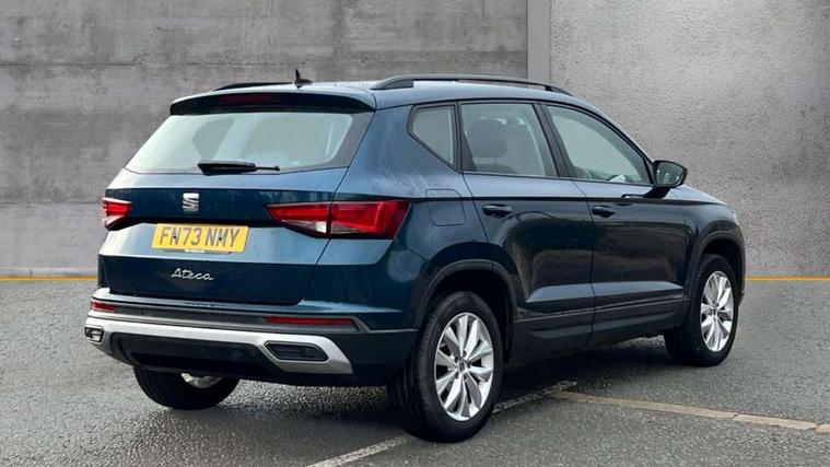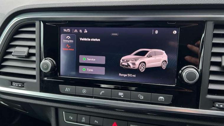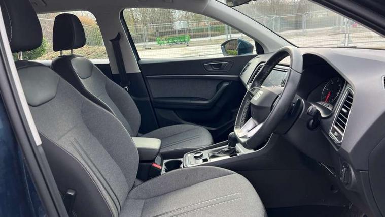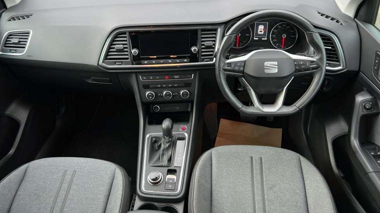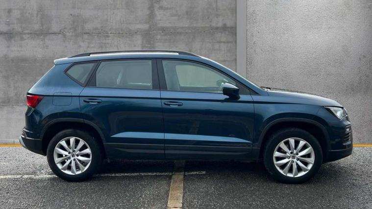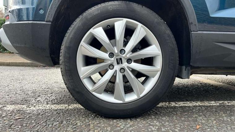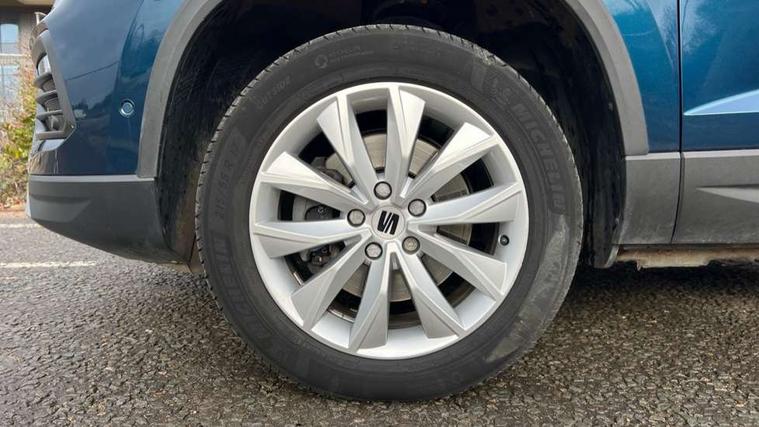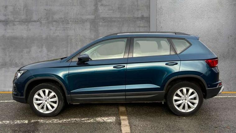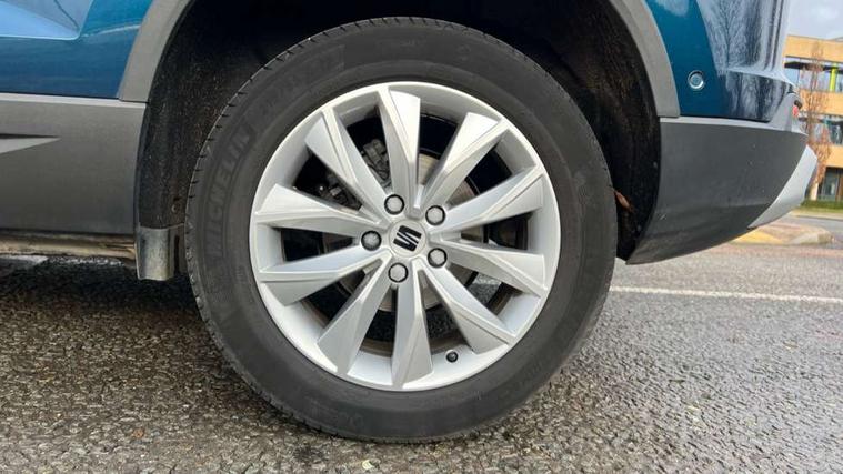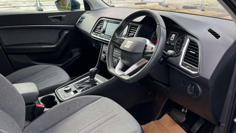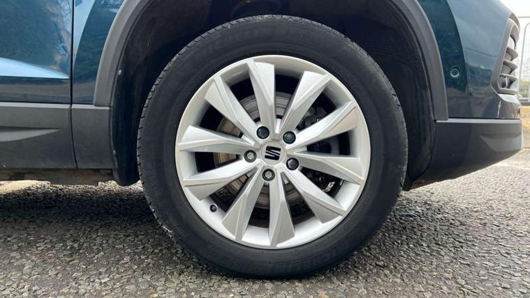 8" Digital cockpit, Colour multi-function on board computer display, Cruise control system with speed limiter, E-call, Outside temperature gauge, PAS, SEAT drive profile with driving experience button - Normal, Sport, Eco and Individual mode, gearshift, steering and throttle response, Self parking functionality (includes front and rear parking sensors), Start/stop system, Tailgate, Trip computer, Wired Full Link, Wireless phone charger, Black roof rails, Black side window trim, Black wheel arch surrounds, Body colour bumpers, Chrome front grille frame, Daytime running lights, Door mirrors with welcome light silhouette, Dynamic headlight range control with self adjusting whilst driving, Electric adjustable/heated/folding door mirrors, Front and rear electric windows, Full LED headlamps with lens and LED front fog lamps with cornering function, LED rear tail lights with dynamic indicators, Rear fog lights, Rear side wing doors, Rear wash/wipe, Simulated exhaust pipes, Third brake light, Variable front intermittent wipers, 12v socket in front, 3 seat bench in 2nd row, 60/40 split folding rear seat, Cloth upholstery with front comfort seats, Drawer under right front seat, Dual zone climate control, Front and rear head restraints, Front centre armrest, Front seat back storage pockets, Height adjustable driver and passenger seat with lumbar adjustment, ISOFIX points in outer rear seats with top tether anchorage points, Leather steering wheel and gear knob, Rear armrest and easy back seat release mechanism from boot, Single front passenger seat, Steering wheel mounted gearshift paddles, Interior lighting pack - Ateca, Media system plus pack - Ateca, 3x3 point rear seatbelts, ABS, Traction control system (TCS), Electronic stability control (ESC) and Electronic differential lock system (XDS), Airbags - Driver and front passenger airbag with deactivation, front side, two curtain and driver's knee airbags, Electric parking brake with auto hold function, Front and rear seatbelt reminder, Front assist with autonomous emergency braking, Hill hold control, Manual rear child locks, Single tone horn, Tiredness recognition system, Traction control, Tyre pressure monitoring system, Alarm, Keyless entry, Locking wheel bolts, Remote central locking, Chrome interior detailing, 17" Brilliant silver alloy wheels with super low rolling resistance,