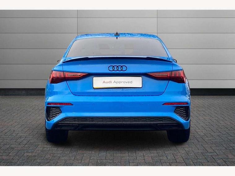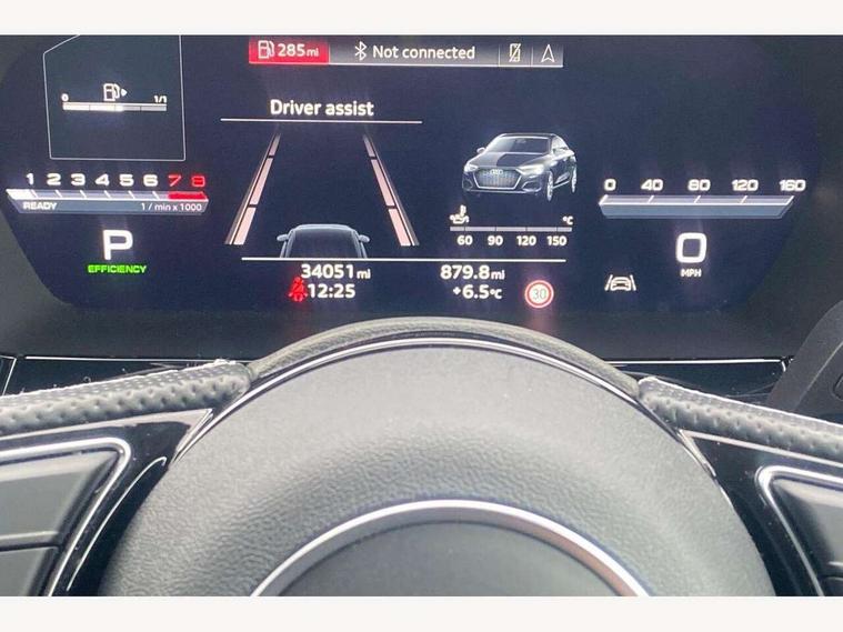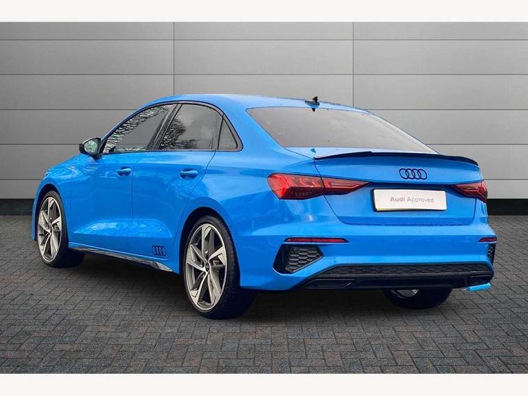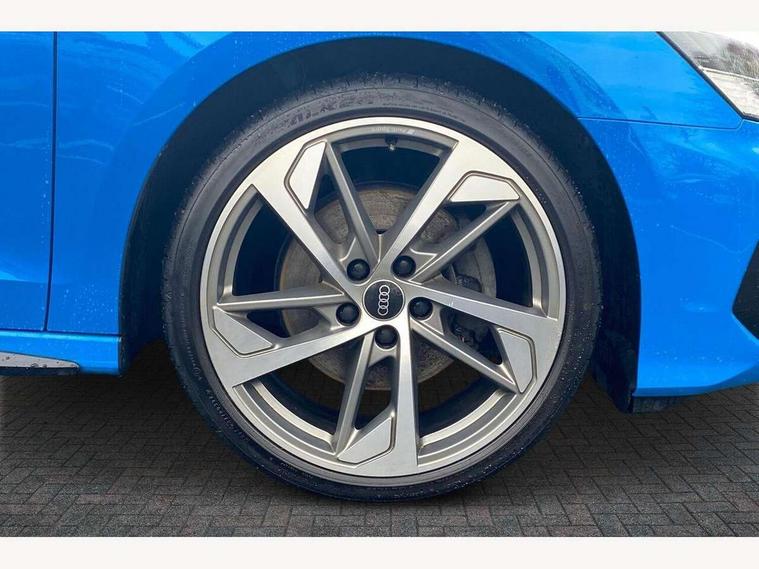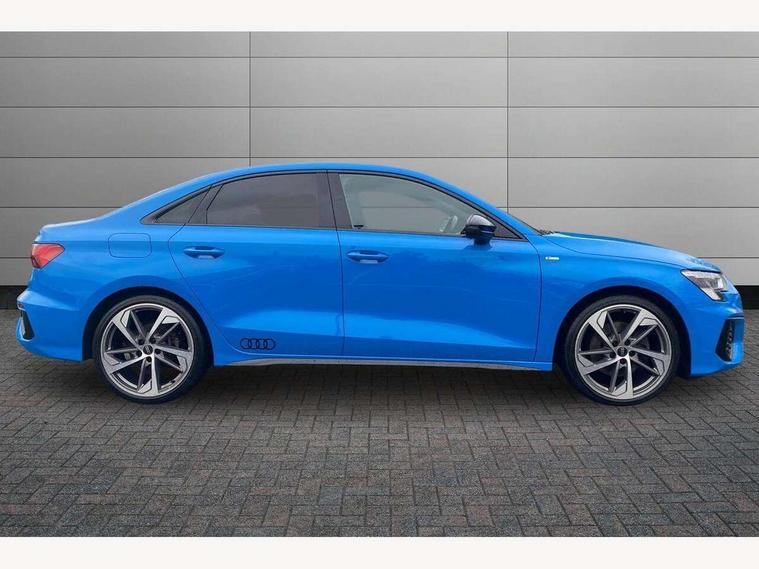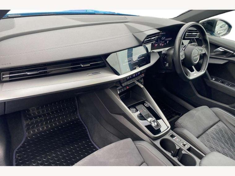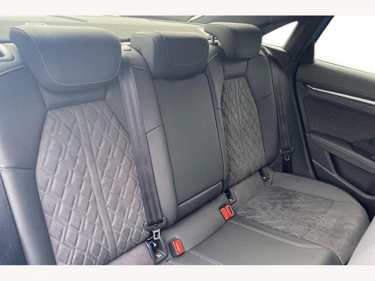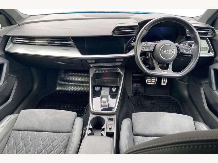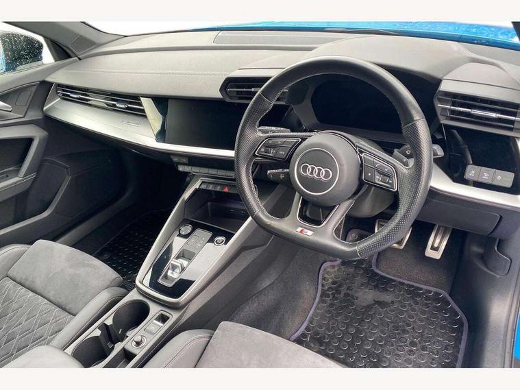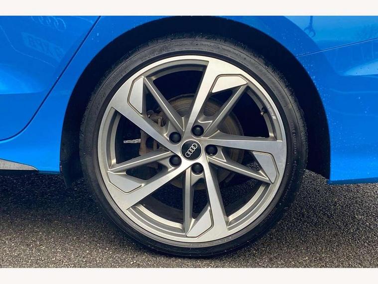 Audi connect emergency call and service, Audi drive select (Auto, Comfort, Dynamic, Efficiency and Individual), Audi smartphone interface, Audi virtual cockpit plus - 12.3" dynamic digital instrument cluster, Automatic start/stop system with recuperation, Bluetooth interface, Collision avoidance assistant, Electromechanical power speed sensitive steering, Lane departure warning system, MMI Navigation Plus with high resolution 10.1" colour touch screen display, Service indicator, Voice control system with natural language interaction, Sports suspension, 2x USB Type C ports (for charging and data transfer), 6 passive loudspeakers, CD player, DAB Digital radio, Acoustic glass windscreen, Audi matrix LED headlights, LED rear lights, dynamic front and rear indicators and headlight cleaning system, Auto dimming frameless rear view mirror, Electrically adj heated/folding + automatically dimming exterior mirrors + automatic kerb side function for passenger side exterior mirror, Front electric windows, Illuminated door sills with aluminium inserts at the front with S logo, Integrated LED indicators in door mirrors, LED daytime running lights, Light and rain sensors, Model and engine designation badges at rear, Privacy glass - dark tinted rear window, rear door and side windows, Rear electric windows, S roof spoiler, 12V socket and storage compartment in front centre console, 4 way electrically adjustable lumbar support for driver and front passenger, 40/20/40 split folding rear seat bench with cupholder, Black cloth headlining, Dual zone electronic climate control, Electrically adjustable front seats, Front and rear centre armrest in leather, Front and rear headrests, Front/rear floor mats, Heated front seats, Height and reach adjustable steering wheel, Interior lighting - glove compartment light and right hand side, Luggage compartment floor covering, Manual boot compartment lid, Seat side bolsters, Stainless steel pedals and front footrest, Aluminium interior elements pack - A3, Black styling pack - A3/S3, Dinamica microfibre/mono.pur 550 artificial leather pack - A3 Saloon, Extended ambient lighting pack - A3/S3 Saloon, LED interior lighting pack - A3 Saloon Edition 1/Vorsprung, 3x3 point rear seat belts, Driver and front passenger airbag with passenger airbag deactivation, Electronic Stabilisation Control (ESC) including ABS, ASR and EDL, First aid kit with warning triangle and 2 safety vests, Front side airbags with head airbags and interaction airbag, Hill hold assist, Pre-sense front with pedestrian and cyclist detection, Seatbelt monitoring, Tyre pressure loss indicator, Anti theft alarm, Anti-theft wheel bolts, Electronically operated child lock, Immobiliser, Remote control central locking, Aluminium air vent surrounds, Aluminium trim elements, Dark spectrum aluminium inlays, accent surfaces in the dashboard and centre console in platinum grey silk effect paint finish, 19" 5 arm trapezoid design alloy wheels in titanium matt grey with diamond cut finish,