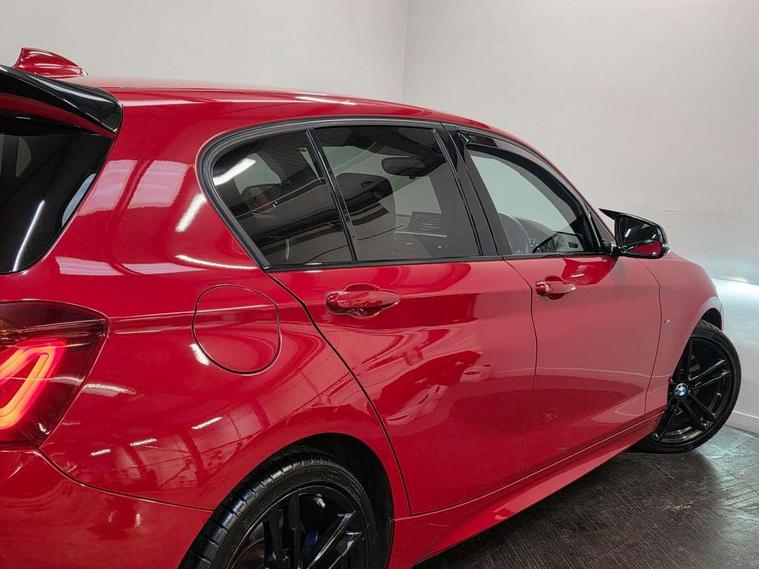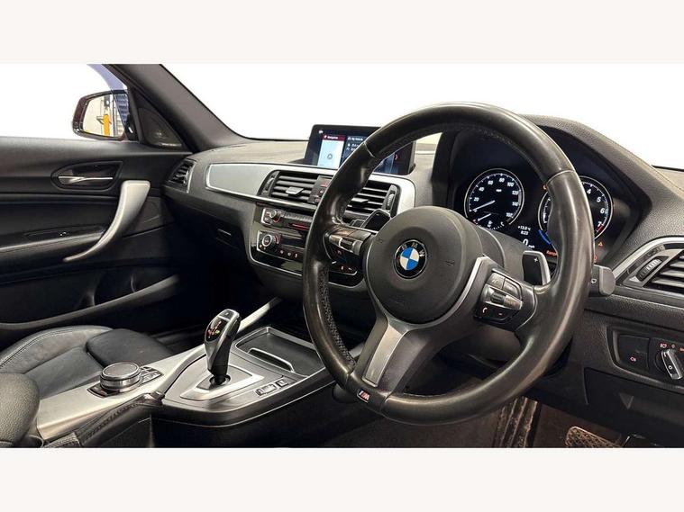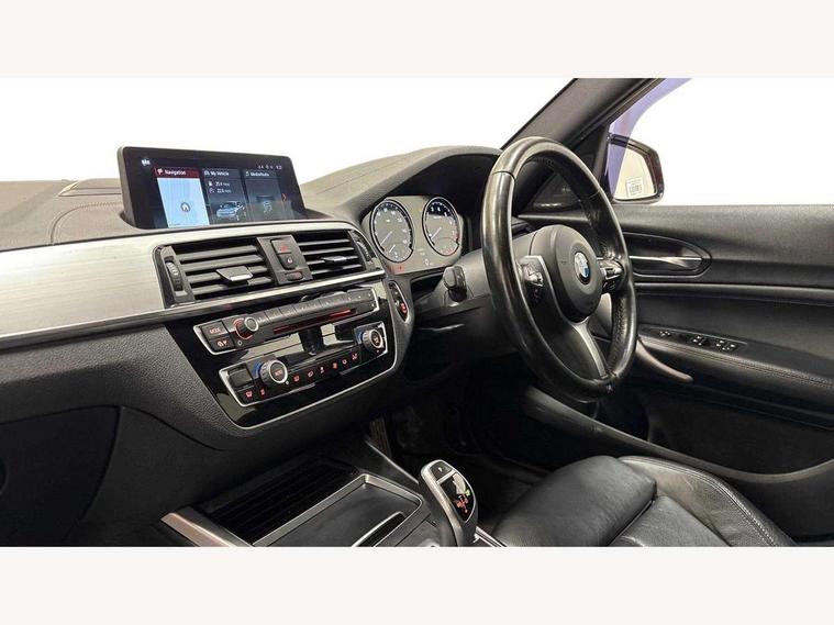 'Lights On' Reminder warning buzzer, BMW Online services, BMW remote services, BMW Teleservices, Brake force display, Cruise control with brake assist, Engine start/stop button, Oil level indicator, On board computer, On board diagnostics, Outside temperature display, Service interval indicator, Speed limiter, Variable sport steering, Drive Performance Control, Sports function on gearbox with steering wheel mounted gearshift paddles, BMW professional radio with CD player, DAB Digital radio, Harman Kardon hi-fi speaker system, Body colour bumpers, Body colour door handles, Dark chrome plated exhaust tailpipes, Electric front windows + one touch + anti-pinch, Electric rear windows, Electrically adjustable door mirrors, Ferric grey mirror caps, Follow me home headlights, Green tinted heat insulating glass, Heated door mirrors, Heated windscreen washer jets, High gloss black kidney grille, M aerodynamic bodystyling, Rain sensor including auto headlights activation, Rear wash/wipe, Sun protection glass, Welcome lighting, 12V power socket in centre console, 12V power socket in passenger footwell, 4 grab handles, 60/40 split rear seats, Anthracite headlining, Anthracite Velour floor mats, Dakota leather upholstery, Door armrests, Driver/passenger sunvisors with ticket holders, Folding rear seat head rests, Front folding/sliding centre armrest with storage, Front head restraints, Front sports seats with electric side bolster adjustment, Front/rear courtesy lights with soft on/off dimming, Glovebox, Isofix rear child seat preparation, Leather gear knob and handbrake grip, Load restraint lashing eyes, M sports leather steering wheel, Multifunction steering wheel with audio controls, Reach + rake adjustable steering column, Storage compartments in doors, Interior comfort pack - 1 Series, ABS/EBD, Automatic Stability Control (ASC), BMW emergency call, CBC - (Cornering brake control), Child locks on rear doors, Crash sensor, Driver/Passenger airbags (Impact dependent), DSC+, Dynamic brake control, Dynamic Traction Control - DTC, Front passenger airbag deactivation, Front side airbags, Hill start assist, ITS head airbags for front/rear, M Sport braking system, Pyrotechnically pre-tensioned front seatbelts, Seat belt force limiter, Three 3 point rear seatbelts, Tyre pressure monitor, Warning triangle and first aid kit, Automatic drive away locking facility, Electronic immobiliser, Remote central locking, Thatcham Cat.1 alarm, High performance tyres,