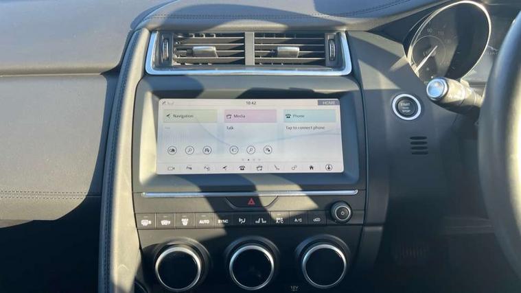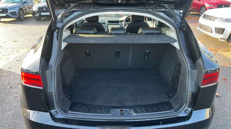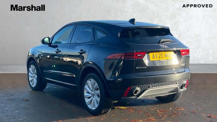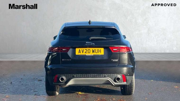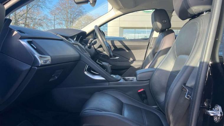 Driver condition monitor, Eco driving style assistant, Electric power assisted steering, InControl remote, InControl Touch navigation pro, Lane keep assist, Outside temperature gauge, Push button starter, Speed proportional steering, Start up sequence with movement in dials and lighting, Traffic sign recognition with adaptive speed limiter, Trip computer, Voice control system, Efficient Driveline, Passive suspension, AM/FM DVD MP3 radio, Bluetooth connectivity including audio streaming, DAB Digital radio, Dynamic volume control, 3 flash lane change indicators, Approach Illumination, Auto dimming rear view mirror, Auto high beam assist, Automatic headlights, Body colour bumpers, Electric folding auto dimming and heated door mirrors with memory + Signature approach lamp, Electric front/rear windows with one touch/auto up/down, Grained black door claddings, Heated front windscreen, Heated rear window with timer, Heated washer jets, Jaguar script and leaper, Rain sensor windscreen wipers, Rear fog lights, Tailgate/boot lid spoiler, Twin tailpipes with finishers, 12V power socket in rear, 2nd row 60/40 split/fold, 2nd row air vents, 3 seat bench in 2nd row, 4 Load area hooks, Centre armrest console, Centre headrest in row 2, Elasticated loadspace side strap, Front head restraints, ISOFIX on outer rear seats, JaguarDrive selector, LED lighting in overhead console, Loadspace cover, Loadspace lamp, Passive front headrests, Storage net in luggage compartment, Sunvisors with illuminated vanity mirrors, Tie down hooks in luggage area, Twin front cupholders, Two zone climate control, Connect pro pack - E-Pace, Park pro pack - E-Pace, Smartphone pack - E-Pace, 350mm front brakes, 3x3 point rear seatbelts, ABS, All surface progress control (ASPC), Customer configurable autolock, DSC - Dynamic Stability Control, Electronic brake force distribution, Electronic parking brake, Emergency brake assist, Front airbags with passenger seat occupant detector, Front and rear curtain airbags, Front and rear seatbelt reminder, Front side airbags, Hill start assist, Low friction launch, Power child locks, Torque vectoring brake, Tyre pressure monitoring system, Intrusion sensor and alarm, Locking wheel nuts,