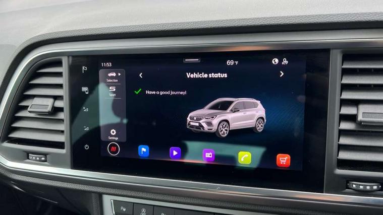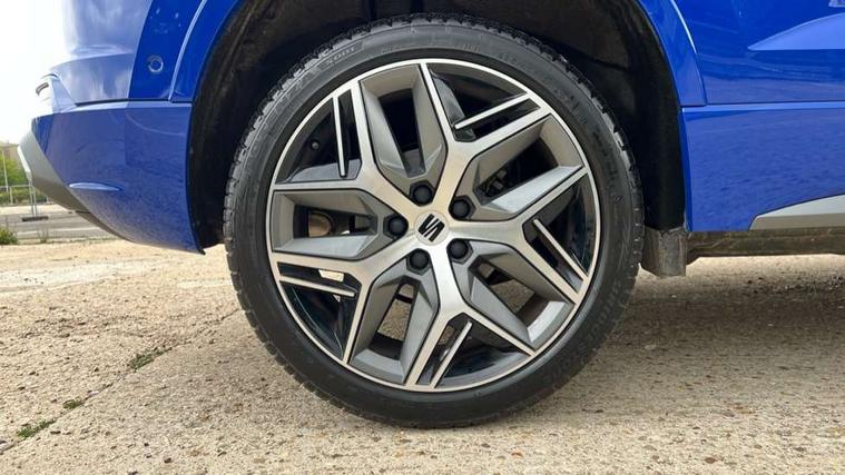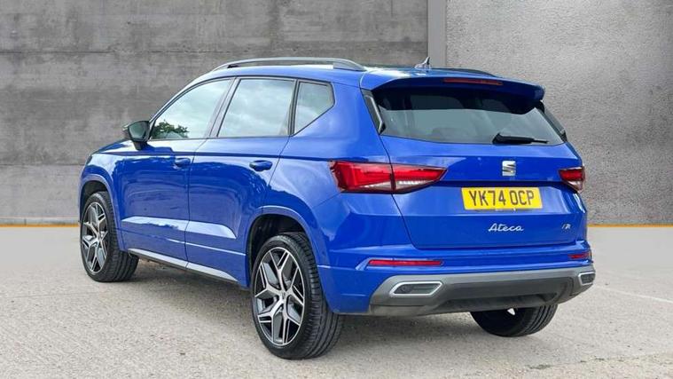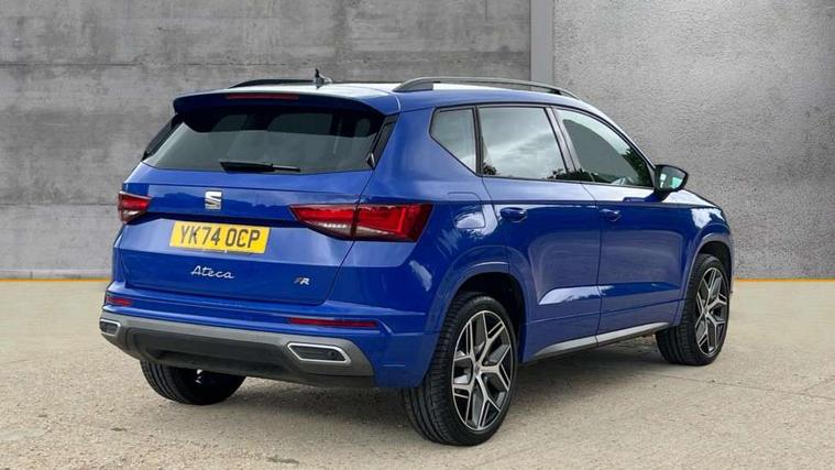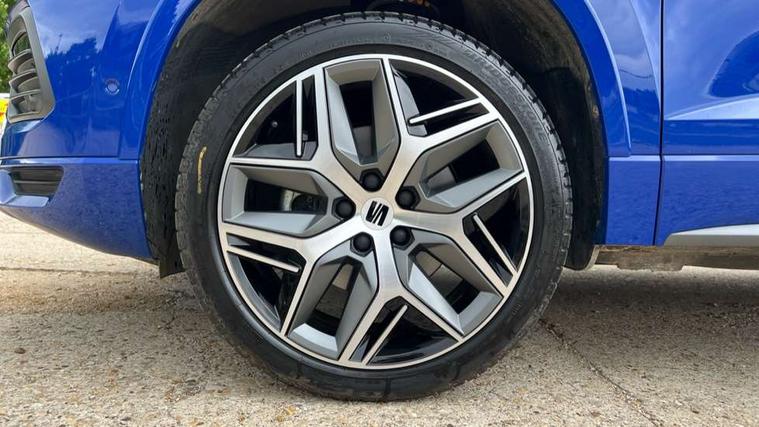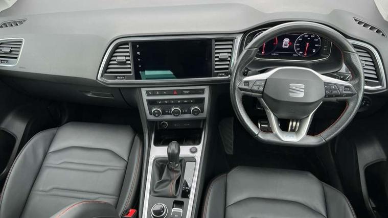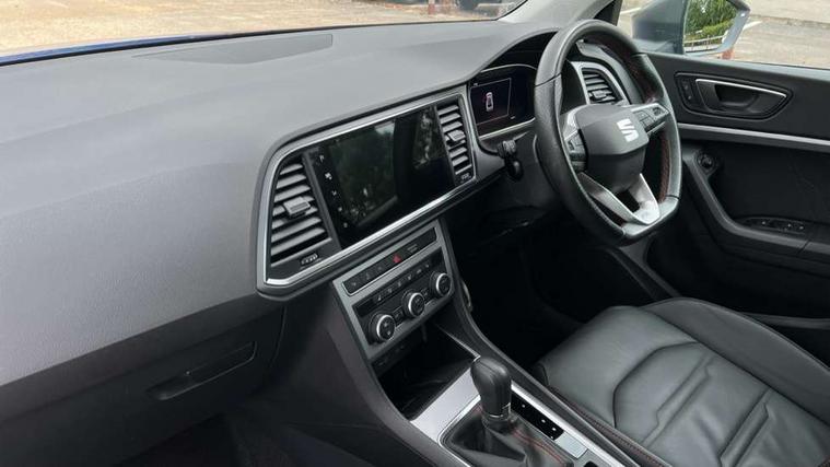 10" Digital cockpit, Cruise control system with speed limiter, E-call, Outside temperature gauge, Progressive power assisted steering, SEAT drive profile with driving experience button - Normal, Sport, Eco and Individual mode, gearshift, steering and throttle response, Self parking functionality (includes front and rear parking sensors), Start/stop system, Tailgate, Trip computer, wired and wireless full link smartphone integration, Wireless phone charger, Steering wheel mounted audio/phone controls, Black roof rails, Black side window trim, Body colour bumpers, Body coloured wheel arch surrounds, Chrome front grille frame, Dark tinted rear windows, Daytime running lights, Door mirrors with welcome light silhouette, Dynamic headlight range control with self adjusting whilst driving, Electric adjustable/heated/folding door mirrors, Front and rear electric windows, Full LED headlamps with lens and LED front fog lamps with cornering function, Illuminated aluminium front door sill, LED 3rd brake light, LED rear tail lights with dynamic indicators, Rear exhaust tailpipe, Rear fog lights, Rear side wing doors, Rear wash/wipe, Roof spoiler, Variable front intermittent wipers, 12v socket in front, 3 seat bench in 2nd row, 60/40 split folding rear seat, Aluminium pedals, Dual zone climate control, Electric adjustable driver seat with memory function, Front and rear head restraints, Front centre armrest, Front seat back storage pockets, Heated front seats, Height adjustable passenger seats with lumbar adjustment, ISOFIX points in outer rear seats with top tether anchorage points, Leather sports steering wheel and gear knob, Leather upholstery with front comfort seats, Manual lumbar support on driver seat, Rear armrest and easy back seat release mechanism from boot, Single front passenger seat, Steering wheel mounted gearshift paddles, Convenience pack - Ateca, Interior lighting pack - Ateca, Navigation system pack with DAB - Ateca, Safety and driving pack with attention and drowsiness assist - Ateca, 3x3 point rear seatbelts, ABS, Traction control system (TCS), Electronic stability control (ESC) and Electronic differential lock system (XDS), Airbags - Driver and front passenger airbag with deactivation, front side, two curtain and driver's knee airbags, Electric parking brake with auto hold function, Front and rear seatbelt reminder, Front assist with autonomous emergency braking, Hill hold control, Manual rear child locks, Single tone horn, Tiredness recognition system, Tyre pressure monitoring system, Alarm, Keyless entry, Locking wheel bolts, Remote central locking, Chrome interior detailing, 19" Exclusive machined alloy wheels with decorative inserts 36/7 in cosmo grey,
