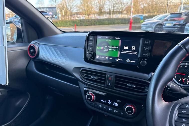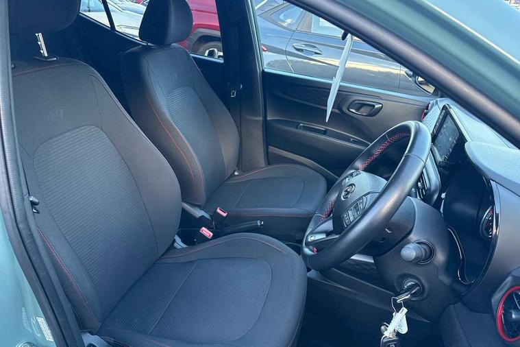 8" Touchscreen centre console display audio with smart device integration and DAB, Apple car play/Android Auto, Bluetooth connectivity with voice recognition, Cruise control + speed limiter, Driver attention alert system, eCall emergency call system, ISG - Idle stop and go, Lane departure warning system with lane keep assist - LKAS, PAS, Rear view camera, Roadside assistance, Trip computer, 2 front/2 rear speakers, Steering wheel audio, phone and cruise controls, USB socket, 1 speed non intermittent rear windscreen wiper, Bi-function projection headlights, Black finish on B pillars, Body colour door handles, Body coloured bumpers, Body coloured door mirrors, Differentiated DRL design with red stripe detail, Dual exhaust tailpipe, Electric front windows, Electric rear windows, Electrically adjustable and heated door mirrors, Front fog lights, Front intermittent wipers, Halogen headlights, Heated rear window, High beam assist, Indicator light on door mirrors, N Line Badging, N Line design front grille, Privacy glass - Rear windows and tailgate, Rear combination lights - LED, Rear roof spoiler with integrated LED brake light, Rear side wing doors, Unique LED daytime running lights, 12v power outlet - front, 3 seat bench in 2nd row, 60/40 split folding flat to floor rear seats, Auto light control, Black roof liner, Bottle holders in front/rear doors + front centre console, Cabin and luggage compartment interior lighting, Climate control, Cloth upholstery, Driver + passenger vanity mirrors, Driver's seat height adjustment, Driver/passenger sunvisors with ticket holders, Front door pockets, Front Head Restraints - Vertical and Horizontal Adjustment, Glove compartment, Height adjustable steering column, Isofix child seat preparation, Metal paint effect interior door handles, N Line branded leather gear stick, N Line branded leather steering wheel, Rear door pockets, Single front passenger seat, Vertical adjustment rear head restraints, 3x3 point rear seatbelts, Airbags - front, front side and curtain airbags, Anti-lock brake system (ABS), Autonomous emergency braking (AEB) with forward collision warning system, Brake assist function, Childproof rear door locks, Electronic stability control, Front and rear seatbelt reminder, Front seatbelt pretensioners, Hill start assist control (HAC), Passenger airbag deactivate switch, Rear disc brakes, Traction control, Tyre pressure monitoring system, Immobiliser, Perimeter alarm, Remote central locking, Second remote key, Speed sensitive auto door locking, Honeycomb design in dashboard and door, 16" N Line design alloy wheels, Tyre repair kit,