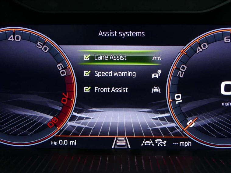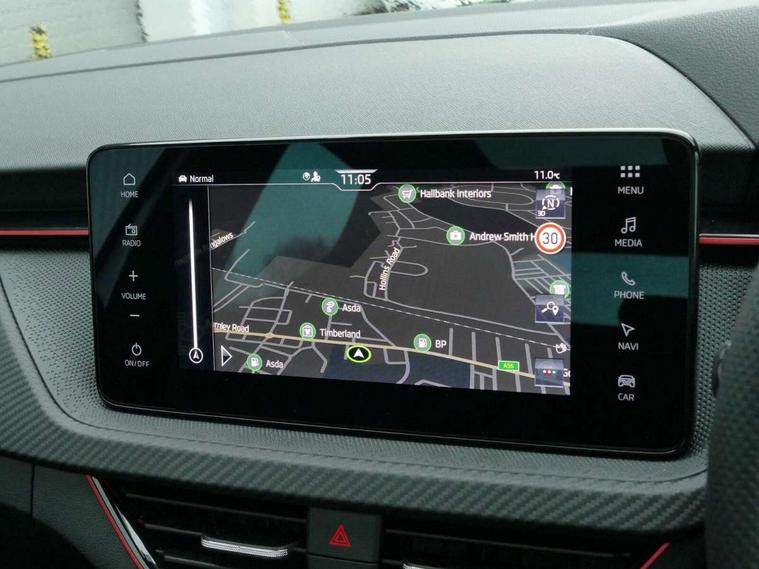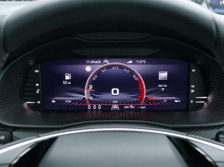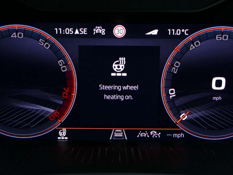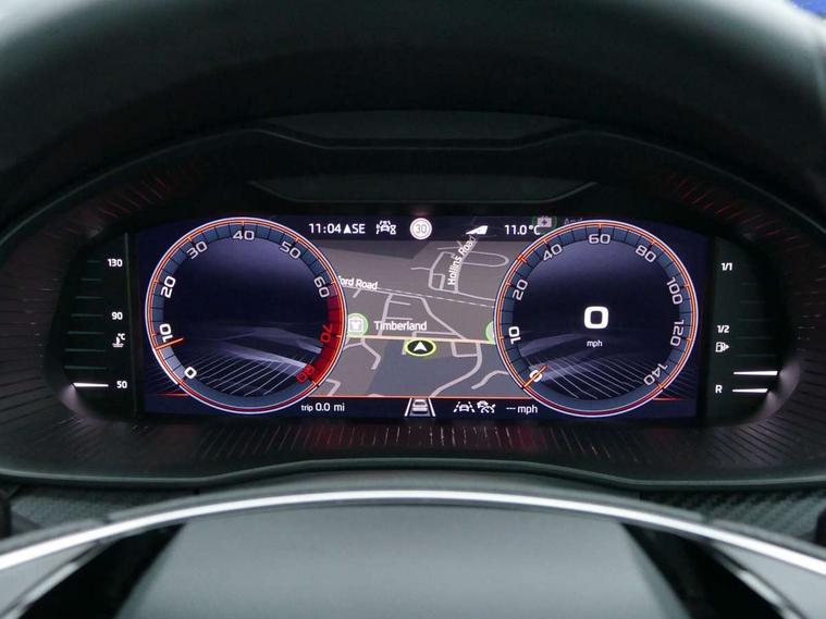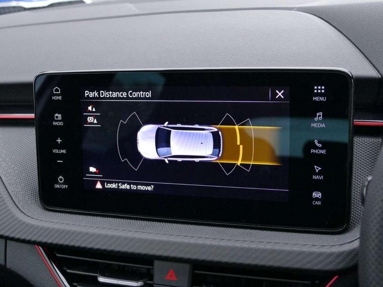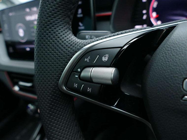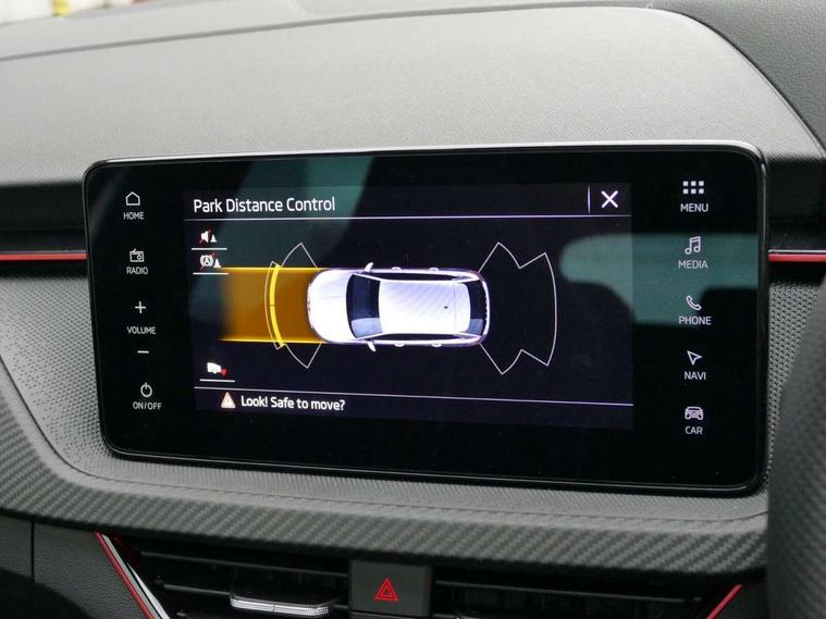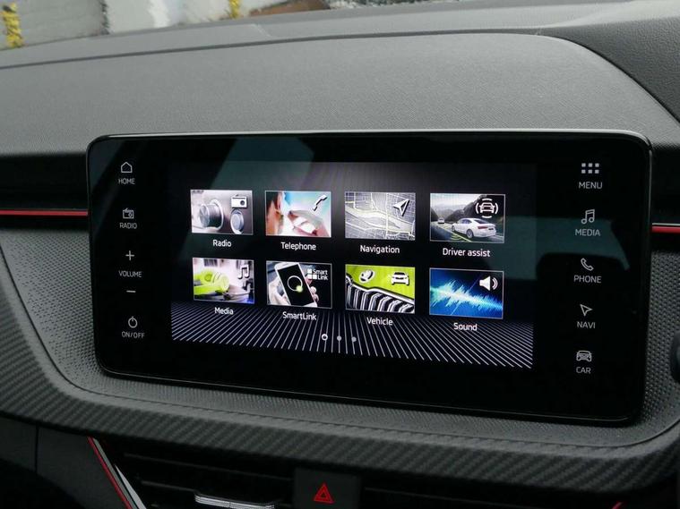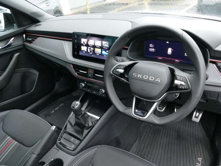 Advanced driver attention and drowsiness monitor, Bluetooth, e-Call (emergency call), Front assist system, PAS, Rear parking sensors, Rear view camera, Speed limiter, Tailgate, Traffic sign recognition, Virtual Cockpit - 10.25" digital display, Voice control system, Wireless smartlink, Drive mode select with Sport Chassis Control and ECO mode, 4 USB C ports, 8 Speakers, 9.2" Skoda navigation display, DAB radio, Auto dimming rear view mirror, Automatic headlight control with manual coming and leaving home feature, Automatic intermittent wipers, Black door mirrors, Black lettering on boot lid, Black radiator grille, Black rear diffuser, Black roof spoiler, Black window frames, Body colour bumpers, Body colour door handles, Extended tailgate glass, Front and rear electric windows, Heated rear window, LED 3rd brake light, LED daytime running lights, LED high beam, LED low beam, Light sensors, Monte carlo plaque, Panoramic glass roof, Privacy glass, Rear LED fog light, Rear side wing doors, Rear wiper, Tinted windows, Unique dark chrome design logo on alloy wheels, 12V socket in luggage compartment, 3 seat bench in 2nd row, Aluminium pedals, Ambient lighting in white/red, Black / White armrest stitching, Black roof headlining, Cargo elements, Chrome inner door handles, Door inserts in art.leather carbon, Driver and passenger sun visors with vanity mirror, Dual zone climate control, Front and rear roof lights, Front centre armrest, Front head restraints, Height adjustable driver seat, Height adjustable passenger seat, Ice scraper, Illuminated glove compartment, Inner circulation control with pollen filter, ISOFIX for front passenger seat, Isofix preparation for back seats, Leather gearknob and handbrake lever, Luggage net under rear parcel shelf, Manual lumbar support for front seats, Monte Carlo cloth upholstery, Net package and top tether hooks in boot space, Pocket on the back of both front seats, incl. mobile phone pockets, Rear centre armrest, Red hotstamping, Single front passenger seat, Skoda lettering on steering wheel, Sport seats, Textile floor mats, Third rear headrest, Ticket holder, Top tether for front passenger seat, Umbrella in driver's door, Light and view plus pack - Scala, 3x3 point rear seatbelts, ABS, Child locks, Curtain airbags and front side airbags, Disc brakes, Driver and front passenger airbags, ESP, Hill hold control, Manual leather parking brake, One tone horn, Passenger airbag switch off function, Seatbelt reminder for driver and front passenger, Tyre pressure monitoring system, Anti theft alarm system with interior monitoring, backup horn and towing protection, Anti-theft wheel bolts, Remote central locking with 2 remote folding keys, SAFE function for remote central locking, Carbon effect decorative inserts, 18" Ursa black diamond cut alloy wheels,