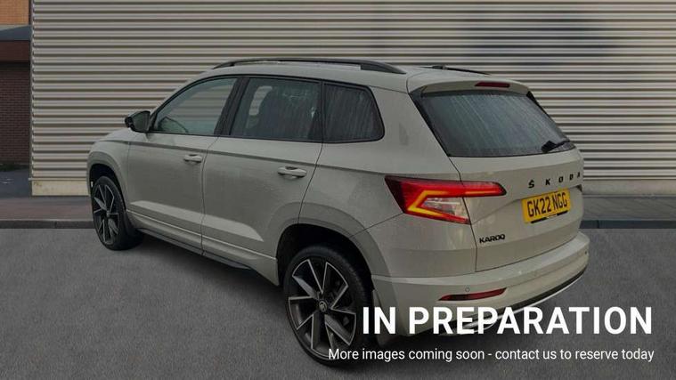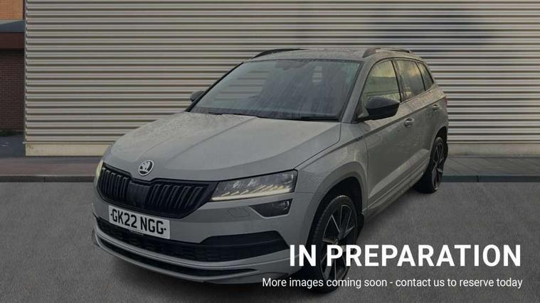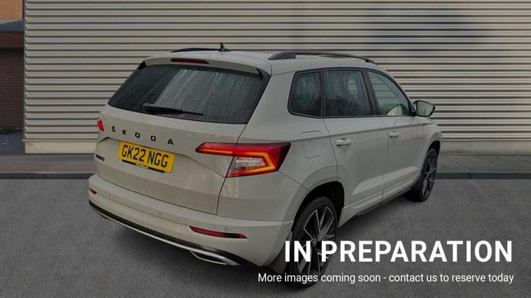 Care connect, Drive mode selector, Driver fatigue sensor, Multifunction colour trip computer, Outside temperature gauge, Service interval indicator, SmartLink wireless for Apple and wired for Android, Start/stop system with regenerative braking, USB C Port x 2 in front centre console, DAB radio with Bluetooth, USB connection, Wireless charging without wireless aerial connection, Acoustic glass, Aero front windscreen wipers with intermittent function, Automatic headlight control system, Black door mirrors, Black electric window control buttons, Black radiator grille, Black roof rails, Body colour door handles, Body coloured bumpers, Electric front and rear windows with child proof lock, Front door steps with SportLine logo, Full LED headlights + adaptive front light system + LED daytime running lights and front cornering fog lights, Headlight washers, Heated rear windscreen, LED rear lights with high functionality, Light assistant (coming/leaving home/tunnel light), Panoramic sliding sunroof, Privacy glass, Protective door side sills in body colour, Rear diffuser, Safety reflectors on front doors, Skoda lettering on tailgate in black, Sportline badge on front fender, Sportline decorative inserts with badging, Sports front and rear bumpers, Third brake light, 1.5 litre bottle holders in driver and front passenger door panels, 12V socket in boot, 12v socket in front centre armrest with storage compartment and rear air vents, 2 Folding hooks and nets in boot, 2 Front readings lights for driver and passenger, 3 rear height adjustable headrests, 4 foldable roof handles with rear coat hooks, Aluminium pedals, Black roof headlining, Cargo elements in boot, Chrome inner door handles, Door sill scuff plates, Driver and passenger seats height adjust, Front head restraints, Height adjustable front three point seats belts with tensioners, Height/reach adjust steering wheel, Ice scraper, Illuminated and cooled glovebox, Illuminated luggage compartment, Isofix child seat preparation outer rear, Manual lumbar support for front seats, Net programme in boot, Pen holder, Pollen filter, Rear reading lights, Rear seats fixed folding and divided 60:40, Retractable parcel shelf attachable to tailgate, Safety vest holder, Solid rear boot cover, Storage box in upper central dashboard closed, Storage compartment below the passenger seat, Sunvisors with illuminated vanity mirrors, Textile floor mats, Umbrella under passenger seat, Welcome animation with sportline logo, LED Interior lighting pack with Skoda welcome logo - Karoq, Airbags - Front side, head, knee and curtain, Automatic door unlocking in case of crash, Automatic fuel cut off in case of crash, Driver airbag, Electronic parking brake with auto hold function, Emergency rear braking signal, ESC including ABS, MSR, ASR, EDS, HBA, DSR, RBS, MKB and traction control, Front assist radar scanning of the space in front of the car with automatic braking, Hill hold control, Passenger airbag with switch-off function, Pedestrian monitor, Seatbelt reminder signalisation and pretensioner for all seats, Three point seatbelts rear, Two tone horn, Tyre pressure display, Tyre pressure monitor, Alarm with interior monitoring, back up horn and tilt sensor with safe function, Electronic engine immobiliser, Keyless entry and keyless start with safe system, Remote central locking with 2 remote folding keys, Black air vent surround, 19" Vega anthracite alloy wheels, Anti-theft wheel bolts protection, Storage on wheel cover,