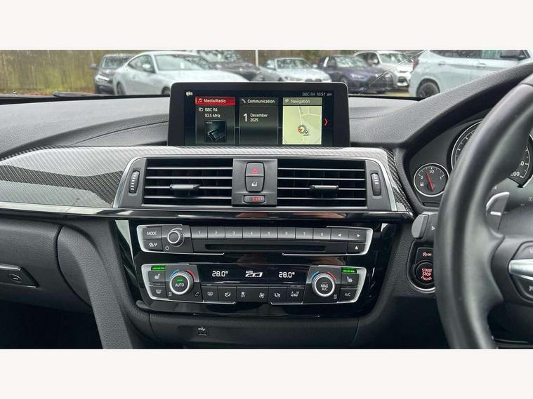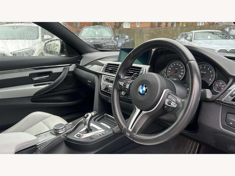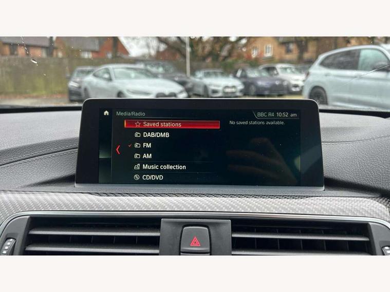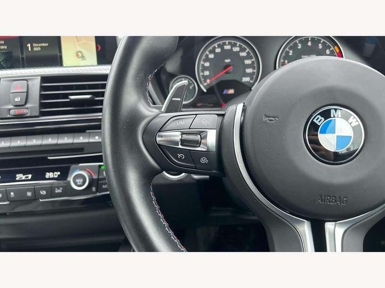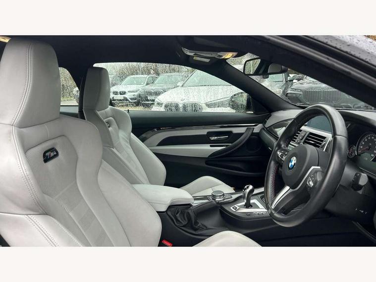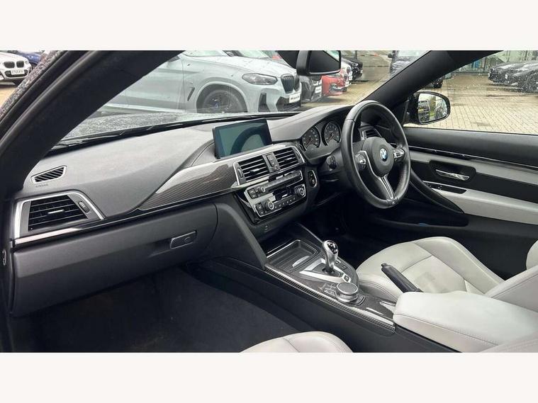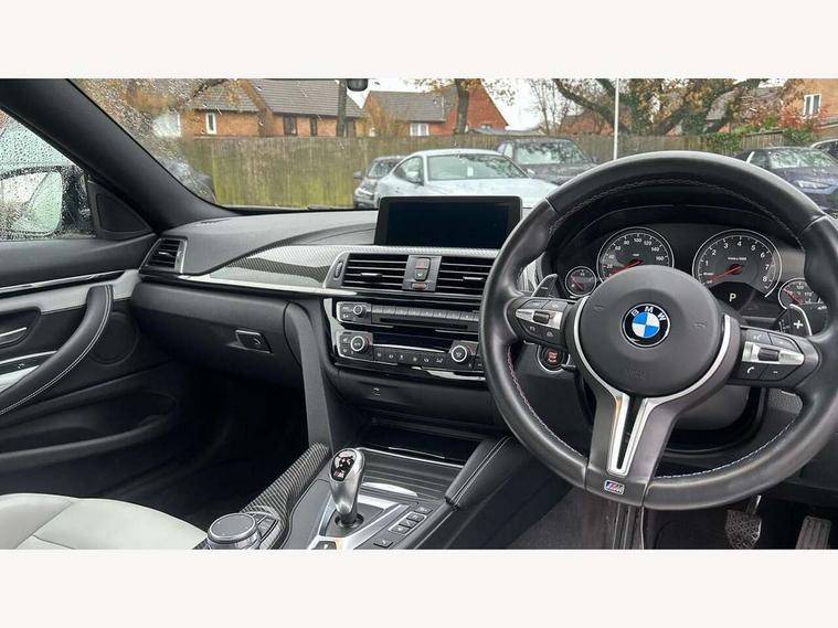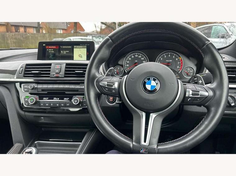 Brake pad wear indicator warning light, Cruise control with brake assist, Door/boot open warning, Electric Power Steering (EPS) with Servotronic, Enhanced bluetooth with wireless charging, Lights on warning, Oil temperature gauge, On board computer, Outside temperature display, Service interval indicator, Stop/start button, Adaptive M Sport suspension, Drive Performance Control, M differential lock, Auxiliary point for auxiliary devices, Bluetooth audio streaming, BMW professional radio/CD/MP3, DAB Digital radio, Wi-Fi hot spot, 2 speed adjustable intermittent wipers with wash/wipe function, Auto dimming rear view mirror, Body colour door handles, Body colour door mirrors, Daytime running lights, Door sill finishers, Dynamic brake lights, Electric adjustable heated door mirrors, Electric front windows/one touch facility, Exterior mirrors - electrically folding with anti-dazzle, Follow me home headlights, Heat insulating tinted glass, Heated windscreen washer jets, High gloss shadow line, LED tail lights, M aerodynamic bodystyling, Rain sensor including auto headlights activation, 12V sockets in front centre console and passenger footwell, 3 spoke leather M sport multifunction sports steering wheel, 4 grab handles, Anthracite headlining, Anthracite Velour floor mats, Driver + passenger electric lumbar support, Driver/passenger sunvisors with illuminated vanity mirrors + covers, Dual zone climate control, Electrically adjustable front seats - driver seat with memory, Front centre armrest with storage compartment, Front cupholders x 2, Front head restraints, Front sliding armrest, Front sports seats with electric side bolster adjustment, Glovebox with lid, Heated front seats, Integrated rear head restraints, ISOFIX child seat preparation+airbag deactivation, Lashing eyelets in boot, Leather gearknob, Leather handbrake grip, Reach + rake adjustable steering column, Storage compartment in rear centre console, Toolkit located in luggage compartment, Extended lights package - M Series, Media pack - Professional - M4, 3 point seatbelts on all seats, ABS/EBD, Automatic Stability Control (ASC), Cornering brake control (CBC), Crash Sensor - activates hazard/interior lighting + unlocks doors, Driver seatbelt warning indicator, Driver/Front Passenger airbags, DSC+, Dynamic brake control, Dynamic Traction Control - DTC, Front seatbelt force limiters, Front seatbelt pretensioner, Front side airbags, Hill start assist, ITS head airbags for front/rear, Tyre pressure monitor, Warning triangle and first aid kit, Drive away door locking, Electronic immobiliser, Keyless Start, Remote central locking, Remote control Thatcham category 1 alarm, M mobility system (flat-tyre repair system),