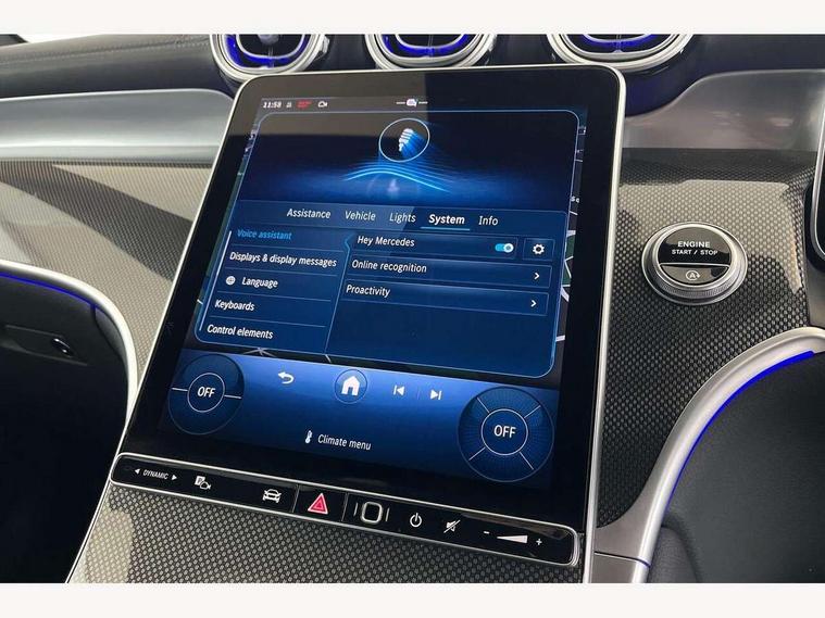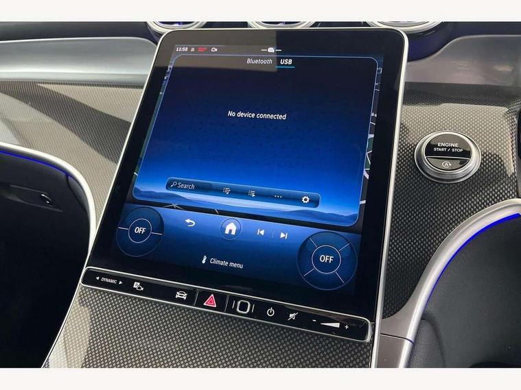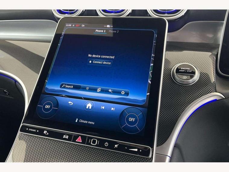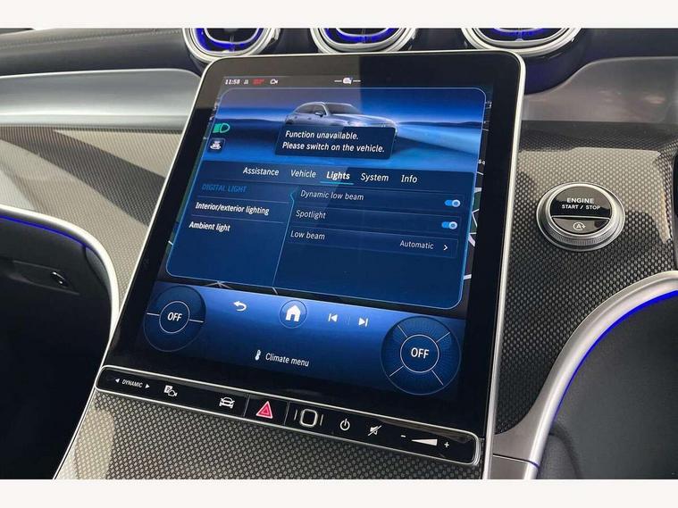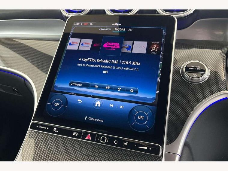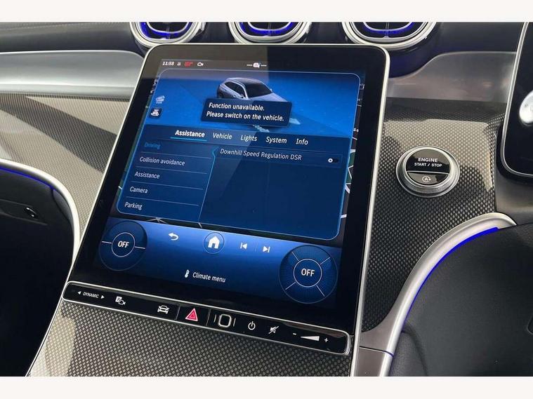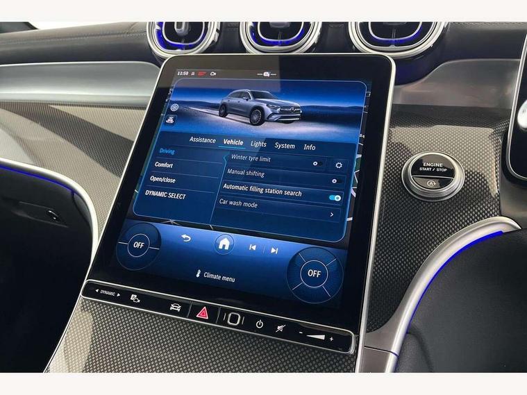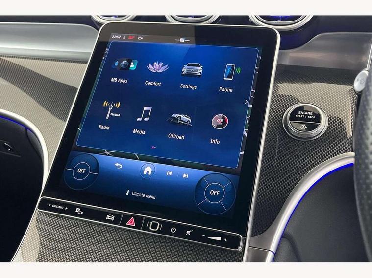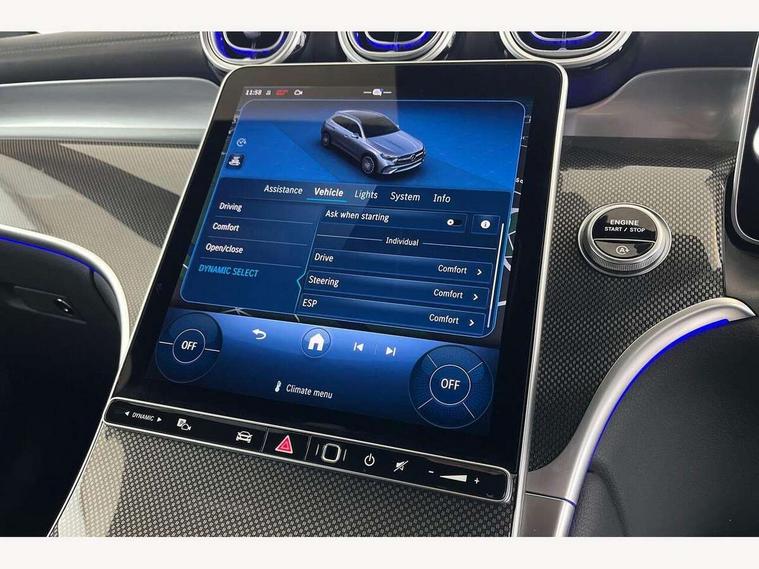 11.9" high resolution multimedia colour display, 12.3" Digital individually configurable instrument display, Acoustic presence indicator, Active lane keeping assist, Attention assist, Blind spot assist, Bluetooth interface for hands free telephone, Collision prevention assist plus, Cruise control with speedtronic variable speed limiter, Dashcam - front camera for video recording, Direct steer speed sensitive steering, DYNAMIC SELECT with a choice of driving modes (ECO, Comfort, Sport, Sport+ and Individual), eCall emergency call system, ECO start/stop function, Fingerprint scanner, Fluorescent jacket for driver, Hard disc navigation, Instrument display in miles with English lettering, MBUX augmented reality for navigation, MBUX navigation premium, MBUX voice control activated by keywords "Hey Mercedes", Mercedes me connect, Outside temperature display, Remote boot release, Remote services, Road sign recognition system, Service indicator (ASSYST), Smartphone integration, Status display for rear seat belts in instrument cluster, Traffic sign assist, Trip computer, Wireless charging, 48V Mild hybrid technology, 4MATIC permanent four wheel drive, 62 litre fuel tank, 9G TRONIC plus automatic transmission, Diesel particulate filter, Sport suspension, DAB digital radio tuner, MBUX extended functions, Mercedes benz sound system, Pre installation for Mercedes Benz Link, Adaptive brake lights, Adaptive high beam assist plus, Aluminium look running boards with rubber studs, Aluminium roof rails, AMG bodystyling front apron, rear apron and side skirts, AMG Line exterior, Auto headlights, Body colour bumpers, Body colour door mirrors, Digital light LED headlights, Electrically adjustable door mirrors, Front and rear electric windows, Headlight washers, Heat insulating dark tinted glass, Heated rear window, High level LED brake light, Integrated LED daytime running lights, LED indicator lights, LED rear fog lights, LED tail lamp, Motor way mode function and locator lighting, Noise acoustic glass, Radiator grille with Mercedes Benz pattern and integreated Mercedes star and louvre in dark grey matt with chrome inlay and black frame, Rain sensor windscreen wipers, Range adjustable headlights, Rear side wing doors, Rear wiper, Transparent Bonnet, Two chrome plated tailpipe trim elements, Variable front intermittent wipers, Welcome and follow-me home light functionality, Wider wheel arch for AMG wheels, 3 seat bench in 2nd row, 40:20:40 split folding rear seats, Ambient lighting premium, AMG line interior, Artico man-made leather upholstery, Audio and onboard settings control on multifunction steering wheel, Automatic child seat recognition sensor, Black fabric roof lining, Black floor mats with AMG lettering, Double cup holder in centre console, Easy-pack removable load compartment cover, Electrically height/reach adjustable steering column, Front centre armrest with stowage compartment, Front head restraints, Galvanised steering wheel gearshift paddles, Heated front seats, Illuminated door sill panels with Mercedes Benz lettering, Illuminated glove compartment, Instrument panel and beltlines in ARTICO manmade leather in nappa look, Multifunction sports steering wheel in nappa leather, Rear centre headrest, Rear head restraints, Rear top tether child seat ISOFIX attachment, Single front passenger seat, Sports pedals with stainless steel surfaces and rubber studs, Sports seats, Sun visors, THERMATIC 2 zone automatic climate control, Anti theft protection package - GLC, Boot comfort package - GLC, Exterior chrome package - GLC, Interior chrome package - GLC, Interior lighting pack - GLC, Keyless-Go comfort package - GLC, Memory pack - GLC, Mirror pack - GLC, Parking package with 360 degree camera - GLC, Seat comfort package - GLC, Stowage space package - GLC, USB Plus Pack - GLC, 3 rear 3 point seatbelts, Active braking assist, Anti-lock braking system (ABS), ASR traction control, Automatic front passenger airbag deactivation, Black seat belts, Brake calipers with Mercedes-Benz lettering + perforated brake discs, Braking system with larger brake discs on the front axle, Child proof door locks, Dual-stage airbags - driver and front passenger, driver knee bag and window bags for driver, front passenger and rear passengers, Electronic parking brake, Electronic stability programme (ESP) with curve dynamic assist and cross wind assist, Front and rear seatbelt reminder, Front passenger seat occupancy sensor, Front seatbelt pretensioners, Hill start assist, Tyre pressure monitoring system, Warning triangle and first aid kit, Automatic door locking, Guard 360 degree vehicle protection plus, Interior protection/immobiliser, Remote central locking, Centre console in metal structure finish, Metal structure trim, 20" AMG 5 spoke aerodynamically optimised light alloy wheels in painted black with high sheen finish, Summer tyres, TIREFIT with tyre inflation compressor,