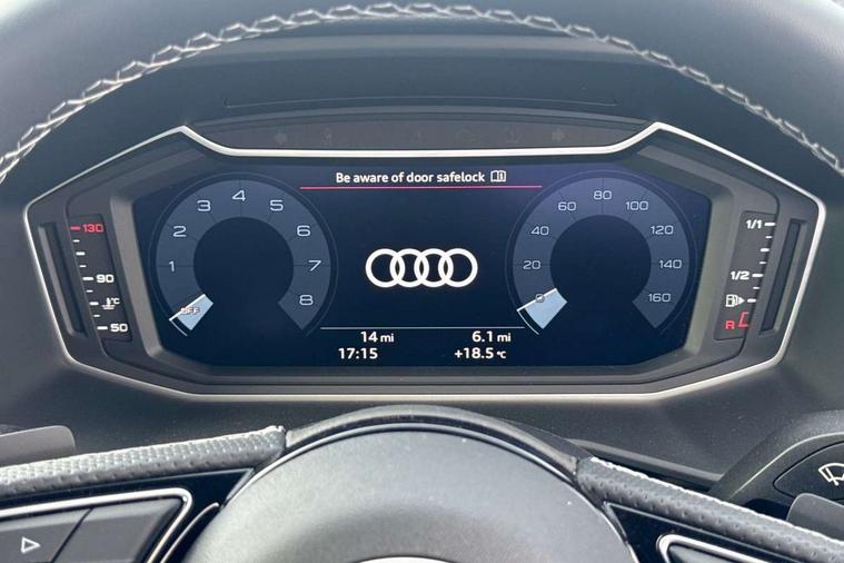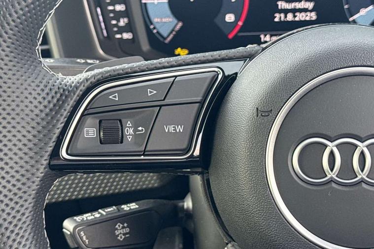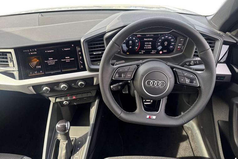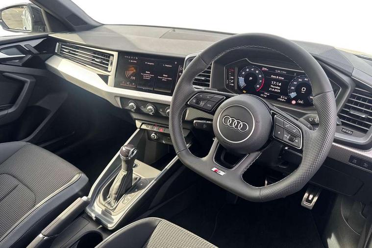 10.25" Digital instrument cluster display classis style instrument dials + speed, odometer, time, outside temperature, telephone menu + fuel level warning, Audi connect safety emergency and service including E-call, Audi smartphone interface with connect compatible smartphone via USB directly MMI display + Nav, music, third party apps controlled via MMI controller, Automatic start/stop system, Bluetooth interface, Cruise control, Driver's information system, Electromechanical power steering, Lane departure warning system, Rear parking sensor, Service interval indicator, Speed limiter, Voice control system, Washer fluid level indicator, Sports suspension, 1 x SDXC card reader, 1 x USB type C and 1 USB type A charging points, DAB Digital radio, MMI radio plus with 8.8" colour MMI display screen and MMI touch, Auto dimming rear view mirror, Black door mirrors, Black side skirts, Door sills with aluminium inlays and S Line logo, Electric front and rear windows, Electrically adjustable, heated, folding door mirrors with integrated LED side indicator, Front side air inlets in grained matt black and C frame in titanium black, Heat insulating glass windscreen and side windows, Heated rear windscreen, LED headlights with LED rear lights + dynamic rear indicators + headlight adjustment and high beam, turning light + LED daytime running lights, Radiator protective grille frame in matt aluminium silver, Rain and light sensors, Rear fog lights, Rear wiper, Side front spoiler lips in grained matt black, 12V socket in centre console with two cup holders, 3 rear seats with headrests, 3 spoke flat bottomed multi-function plus leather steering wheel with S badging, grips in preforated leather, contrast stitching and paddle shift, 40:60 Split folding rear seat or folded fully, Black cloth headlining, Driver and passenger seat with manual height adjust with forward and backwards adjustment, Front and rear black floor mats with contrast stitching in fine silver, Front head restraints, Height and reach adjustable steering wheel, ISOFIX child seat mounting for front passenger and outer rear seats including top tether attachment point of outer rear seats, Leather gear knob with aluminium trim, Luggage compartment light with front and rear reading lights, Manually adjustable lumbar support in front seats, Stainless steel pedals, Black styling pack - A1 Sportback Black Edition, LED interior lighting pack - A1, Luggage compartment pack - A1, 3x3 point rear seatbelts, Brake assist function, Driver and front passenger airbag with front side and head airbags, Electronic Stability Control including ABS, EBD, ASR and EDL, Front and rear seatbelt reminder, Front passenger airbag deactivation switch, Hill hold assist, Seatbelt height adjustment for front seats, Seatbelt monitoring, Tyre pressure warning light, Warning triangle and first aid kit, Anti theft alarm, Anti theft wheel bolts and loose wheel warning, Audi pre-sense front with pedestrain and cyclist recognition, Immobiliser, Remote central locking with 2 foldaway keys, Aluminium trim for control switches, air vents and digital instrument cluster, Silver grey inlays polygon structure in diamond paint finish, Structured grey accent areas including air vents, door handle recesses and centre console in quartz paint finish, 18" 7 spoke rotor design alloy wheels in gloss anthracite black, diamond cut finish,