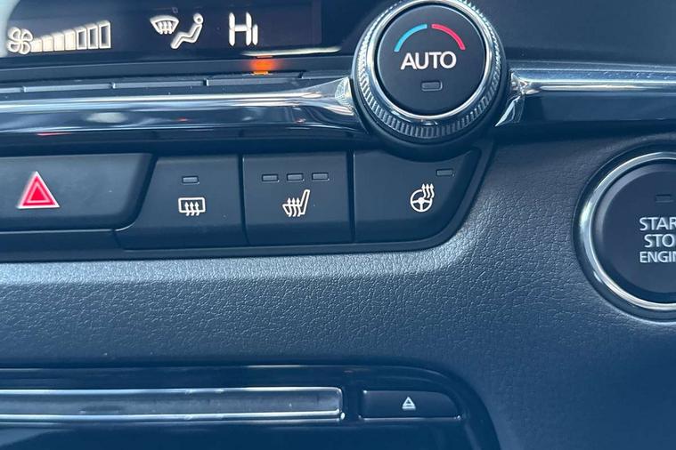 360 View Monitor, 7" TFT Colour driver instrument panel display, 8.8" Colour centre touch screen display with Mazda Connect infotainment, Adaptive cruise control (Mazda radar cruise control) features stop and go, Apple car play/Android Auto, Blind spot monitoring with rear cross traffic alert, Cruising Traffic Support, Drive mode selector, Driver attention alert system, Driver monitoring system, E-call with GPS, Emergency stop signalling system, Engine start/stop button, Front and rear parking sensors, Front Cross Traffic Alert, Integrated bluetooth, Integrated Mazda navigation system, Intelligent speed assist, Lane keep assist system (LAS) with Lane departure warning system (LDWS), PAS, Power lift gate, Service indicator, Trip computer, Window projected colour active driving display (head up display) with traffic sign recognition, i-stop, 2 USB charging ports, Bose surround sound system with 12 Speaker, Bose center point, Bass match and audio pilot technology, CD player, DAB Digital radio, Multimedia Commander including separate volume dial, Steering wheel mounted audio/bluetooth controls, Adaptive LED Headlights, Auto dimming driver's door mirror, B-pillar and C-pillar garnishes in gloss black finish, Body coloured, electrically adjustable, heated auto power folding door mirrors with integrated indicators, Coming/leaving home lighting function, Door mirrors with tilt-down function when reversing, Dual chrome exhaust, Dusk sensing headlights, Electric front/rear windows with one touch auto up/down, Frameless auto dimming interior rear view mirror, Front kodo turn signal, Gloss black front grille, Gloss black rear roof spoiler, High beam assist, LED headlamps with auto levelling, Power tilt/slide sunroof, Privacy glass (rear side windows and rear screen), Rain sensing front wipers with adjustable speed and intermittent wipe, Rear fog lights, Rear wiper, Signature front LED daytime running lights, Signature LED rear combination lights with LED rear turn lights, 12V power outlet in centre console, 60/40 split fold down rear seats, Chrome horn pad ring, Dashboard, door cards and front centre armrest in rich brown leather, Driver and front passenger visors with covered vanity mirror and driver ticket holder, Driver seat memory function, Driver's seat, power tilt, slide, recline, height and lumbar adjustment, Driver, Front passenger and two rear grab handles with coathooks, Dual zone climate control air conditioning with rear air vents, Folding rear centre armrest with two cup holders, Front and rear (x3) head restraints, Front and rear door pockets, Front and rear LED lighting, Front armrest, Front centre storage with two cupholders, Front passengers seat manual slide, recline and height adjustment, Glovebox illumination, Heated front seats with 3 stage setting, Heated steering wheel, ISOFIX child seat anchorage points attached on outer rear seats, Leather wrapped gear shift knob, Leather wrapped steering wheel with telescopic and tilt adjustment, Luggage compartment light, Paddle shift controls, Rear passenger seat map pockets, Roof mounted sunglasses holder, Vinyl leather door panel inserts, 3 point ELR front seat belts x2 with pretensioners, 3 point ELR rear seat belts, Anti-lock braking system (ABS), Driver/Front Passenger airbags, Drivers knee airbag, DSC - Dynamic Stability Control, Electronic parking brake with auto disengage function and auto hold function, Front and rear curtain airbags, Front and rear smart city brake support, Front passenger airbag cut-off switch, Front side airbags, G-Vectoring control plus, Hill launch assist, Mild Hybrid system with regenerative braking, Rear cross traffic braking, Seatbelt reminder for driver/front passenger and rear seats, Traction control system (TCS), Tyre pressure monitoring system (TPMS), Remote central locking with deadlocking and automatic door lock when driving, Smart keyless entry, Thatcham accredited alarm and immobiliser, 18" Bright silver metallic alloy wheels, Emergency tyre repair kit,