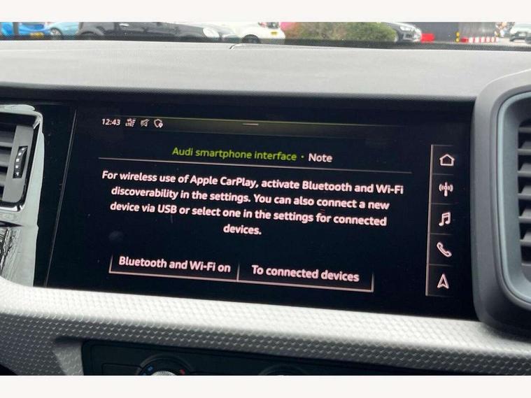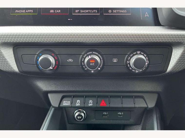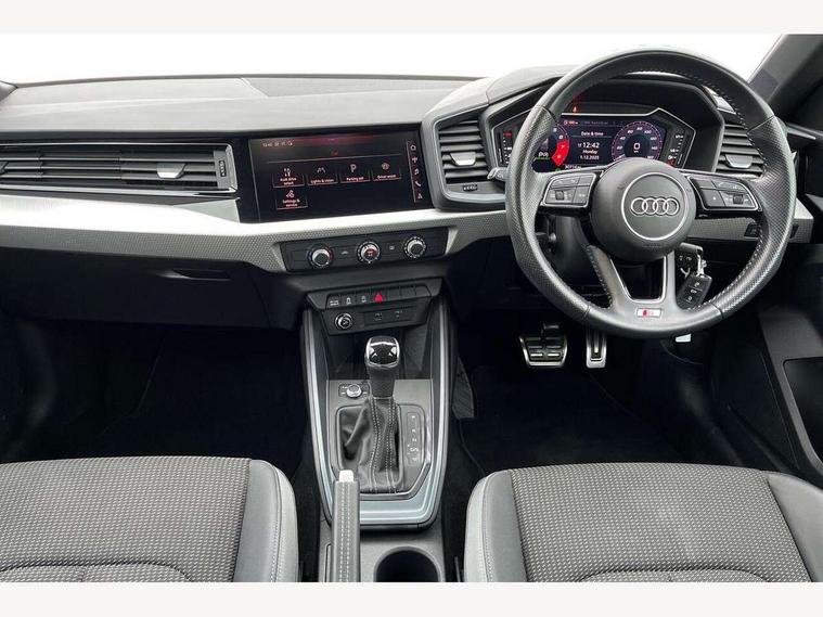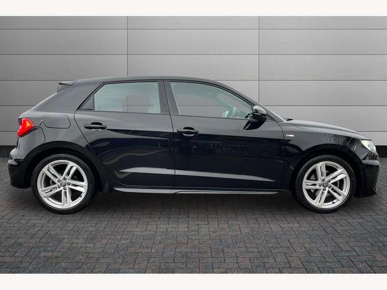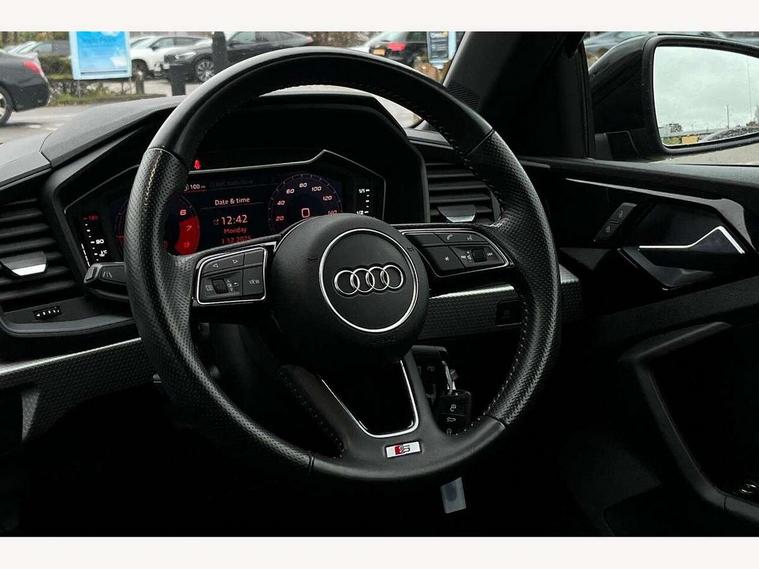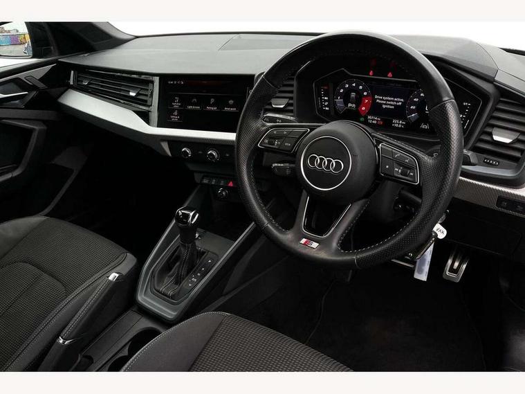 10.25" Digital instrument cluster display classis style instrument dials + speed, odometer, time, outside temperature, telephone menu + fuel level warning, Audi connect safety emergency and service including E-call, Audi drive select - power steering assistance + engine + gear shift 3 preset modes (auto, dynamic, efficiency and an Individual mode), Audi smartphone interface with connect compatible smartphone via USB directly MMI display + Nav, music, third party apps controlled via MMI controller, Automatic start/stop system, Bluetooth interface, Cruise control, Driver's information system, Electromechanical power steering, Lane departure warning system, Rear parking sensor, Service interval indicator, Speed limiter, Voice control system, Washer fluid level indicator, Sports suspension, 1 x SDXC card reader, 1 x USB type C and 1 USB type A charging points, DAB Digital radio, MMI radio plus with 8.8" colour MMI display screen and MMI touch, Auto dimming rear view mirror, Body coloured door mirrors, Door sills with aluminium inlays and S Line logo, Electric front and rear windows, Electrically adjustable, heated, folding door mirrors with integrated LED side indicator, Front side air inlets in grained matt black and C frame in titanium black, Heat insulating glass windscreen and side windows, Heated rear windscreen, LED headlights with LED rear lights + dynamic rear indicators + headlight adjustment and high beam, turning light + LED daytime running lights, Radiator grille and rear diffuser in matt titanium black, Radiator protective grille frame in matt aluminium silver, Rain and light sensors, Rear fog lights, Rear wiper, S line badges on front wings, Side front spoiler lips in grained matt black, 12V socket in centre console with two cup holders, 3 rear seats with headrests, 40:60 Split folding rear seat or folded fully, Black cloth headlining, Driver and passenger seat with manual height adjust with forward and backwards adjustment, Front and rear black floor mats with contrast stitching in fine silver, Front head restraints, Height and reach adjustable steering wheel, ISOFIX child seat mounting for front passenger and outer rear seats including top tether attachment point of outer rear seats, Leather gear knob with aluminium trim, Luggage compartment light with front and rear reading lights, Manually adjustable lumbar support in front seats, Stainless steel pedals, LED interior lighting pack - A1, Luggage compartment pack - A1, S line exterior styling pack - A1 Sportback, 3x3 point rear seatbelts, Audi pre-sense front with pedestrain and cyclist recognition, Brake assist function, Driver and front passenger airbag with front side and head airbags, Electronic Stability Control including ABS, EBD, ASR and EDL, Front and rear seatbelt reminder, Front passenger airbag deactivation switch, Hill hold assist, Seatbelt height adjustment for front seats, Seatbelt monitoring, Tyre pressure warning light, Warning triangle and first aid kit, Anti theft alarm, Anti theft wheel bolts and loose wheel warning, Immobiliser, Remote central locking with 2 foldaway keys, Aluminium trim for control switches, air vents and digital instrument cluster, Silver grey inlays polygon structure in diamond paint finish, Structured grey accent areas including air vents, door handle recesses and centre console in quartz paint finish,