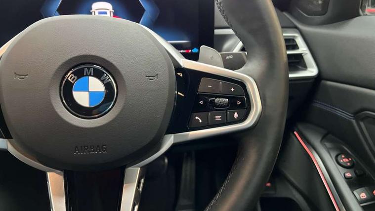 Active guard plus, Attentiveness assist, Automatic Start/stop button, Bluetooth Wi-Fi interface, BMW iDrive, BMW Teleservices, ConnectedDrive Services - last state call, Live cockpit plus with Navigation + 12.3" instrument display + 14.9" display, Intelligent voice assist, 2 USB, 4G LTE connect, Oil sensor for level and grade, Personal e-SIM, Shifting point display, Variable sport steering, Double joint spring strut front axle, Fuel tank breather system, Sport automatic transmission with steering-wheel mounted gearshift paddles and launch control, DAB tuner, 3rd brake light, Auto dimming rear view mirror, Automatic headlight beam throw control with load dependent regulating reaction, dynamic compensation of braking dive and acceleration squat, Bi-LED Low and high beam headlights, BMW emblem, engine compartment lid and tailgate, Body colour roof fin, Door sill strips, Electric windows - front and rear, with open/close fingertip control, anti-trap facility and comfort closing, Fading support, Follow me home headlight function, Front and rear bumper system with replaceable deformation elements, Front apron plastic in body colour, Fuel filler flap - right rear in body colour, Heat protection glazing on front windows and windscreen, Heated washer jets, High gloss chrome kidney frame with high gloss black kidney struts, LED daytime running lights, LED rear lights, LED turn indicator, Licence plate panel integrated into front bumper and tailgate, M high gloss shadow line exterior trim, Matt black B-pillar finsher, Matt black window recess cover, One piece front bumper cover including towing eye cover in body colour, Rain sensor with automatic headlight activation, Rear boot, Rear side wing doors, Reversing lights, Side frame decorative moulding black matt, Trailer stabilisation logic, Visible exhaust tailpipe finisher, Welcome lights in interior and door handle area, 12V power socket in front storage compartment, 2 front cupholder in centre console with clamping elements and matt black inlay, 3 seat bench in 2nd row, 3 spoke M Sport multifunction flat bottom leather steering wheel, 3 zone automatic air conditioning, 40:20:40 split folding rear seat with loading system, Anthracite headlining, Armrest integrated in front and rear door trim + front centre console armrest, BMW ID, Cruise control operation in steering wheel, Driving experience mode switch, Folding rear centre armrest with 2 cupholders, Front and rear headrests, Front and rear velour floor mats, Front footwell lighting, Front reading light, Heated front seats, Height adjustable mechanically and infinitely variable steering column, Illuminated armrest storage compartment, Illuminated glove compartment, Illuminated luggage compartment, Lashing eyelets in luggage compartment, Single front passenger seat, Sunvisors with illuminated vanity mirrors and ticket pocket, Toolkit located in luggage compartment, Connected pack professional - 3 Series Saloon/Touring, Interior and exterior mirror pack - 3 Series Touring/Saloon, M sport exterior styling pack - 3 Series Saloon/Touring, Parking assistant pack - 3 Series, 3x3 point rear seatbelts, BMW emergency call, Child locks on rear doors, Crash sensor activating of airbags, Unlocking doors, hazard warning lights, interior light, safety battery terminal, Drive-off assistant, Driver and front passenger with seat occupancy detection for driver's and passenger side, Driver and passenger side airbags, body protection at side and airbags deploy from seat backrests, Dry braking, Dynamic brake control, Dynamic stability control + (DSC+) - Anti-lock Braking System (ABS) with brake assist and cornering brake control + Automatic Stability Control (ASC), Dynamic Traction Control - DTC, Electric parking brake including automatic hold function and automatic release of the parking brake when driving off, Electronic differential lock control (EDLC), Front airbag deactivation, Front airbags for driver and front passenger, Head airbags in 1st and 2nd row, head protection at side, curtain airbags open from headliner above 1st and 2nd row, Plastic fuel tank, Side impact protection, Tyre pressure sensors, Ventilated front and rear disc brakes, Warning triangle and first aid kit, Alarm system, Centre lock switch, Closing system with central locking, Electronic vehicle immobiliser, Locking wheel bolts,