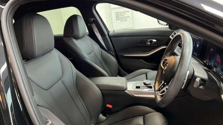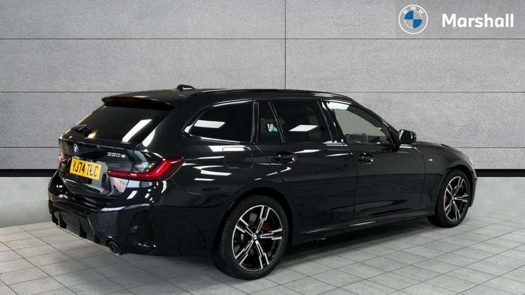 Active guard plus, Attentiveness assist, Automatic Start/stop button, Bluetooth Wi-Fi interface, BMW iDrive, BMW Teleservices, ConnectedDrive Services - last state call, Electric bootlid, Live cockpit plus with Navigation + 12.3" instrument display + 14.9" display, Intelligent voice assist, 2 USB, 4G LTE connect, Oil sensor for level and grade, Personal e-SIM, Shifting point display, Double joint spring strut front axle, Fuel tank breather system, Public mode 3 professional fast charging cable with 5m length, Steptronic Sport automatic transmission with steering wheel mounted gearshift paddles launch control and xtreme drive lever control, DAB tuner, 3rd brake light, Auto dimming rear view mirror, Automatic headlight beam throw control with load dependent regulating reaction, dynamic compensation of braking dive and acceleration squat, Bi-LED Low and high beam headlights, BMW emblem, engine compartment lid and tailgate, Body colour roof fin, Door sill strips, Electric windows - front and rear, with open/close fingertip control, anti-trap facility and comfort closing, Fading support, Follow me home headlight function, Front and rear bumper system with replaceable deformation elements, Front apron plastic in body colour, Fuel filler flap - right rear in body colour, Heat protection glazing on front windows and windscreen, Heated washer jets, High gloss chrome kidney frame with high gloss black kidney struts, High gloss shadow line roof rails, LED daytime running lights, LED rear lights, LED turn indicator, Licence plate panel integrated into front bumper and tailgate, M high gloss shadow line exterior trim, Matt black B-pillar finsher, Matt black window recess cover, Model designation on right side of tailgate, One piece front bumper cover including towing eye cover in body colour, Rain sensor with automatic headlight activation, Rear side wing doors, Rear wiper, Reversing lights, Side frame decorative moulding black matt, Trailer stabilisation logic, Visible exhaust tailpipe finisher, Welcome lights in interior and door handle area, 12V power socket in front storage compartment, 2 front cupholder in centre console with clamping elements and matt black inlay, 3 seat bench in 2nd row, 3 spoke M Sport multifunction flat bottom leather steering wheel, 3 zone automatic air conditioning, 40:20:40 split folding rear seat with loading system, Anthracite headlining, Armrest integrated in front and rear door trim + front centre console armrest, Battery in luggage compartment, BMW ID, Cruise control operation in steering wheel, Driving experience mode switch, Folding rear centre armrest with 2 cupholders, Front and rear headrests, Front and rear velour floor mats, Front reading light, Heated front seats, Height adjustable mechanically and infinitely variable steering column, Illuminated armrest storage compartment, Illuminated glove compartment, Illuminated luggage compartment, Lashing eyelets in luggage compartment, Single front passenger seat, Sunvisors with illuminated vanity mirrors and ticket pocket, Toolkit located in luggage compartment, Connected pack professional - 3 Series Saloon/Touring, Interior and exterior mirror pack - 3 Series Touring/Saloon, M sport exterior styling pack - 3 Series Saloon/Touring, Parking assistant pack - 3 Series, 3x3 point rear seatbelts, BMW emergency call, Child locks on rear doors, Crash sensor activating of airbags, Unlocking doors, hazard warning lights, interior light, safety battery terminal, Drive-off assistant, Driver and front passenger with seat occupancy detection for driver's and passenger side, Driver and passenger side airbags, body protection at side and airbags deploy from seat backrests, Dry braking, Dynamic brake control, Dynamic stability control + (DSC+) - Anti-lock Braking System (ABS) with brake assist and cornering brake control + Automatic Stability Control (ASC), Dynamic Traction Control - DTC, Electric parking brake including automatic hold function and automatic release of the parking brake when driving off, Electronic differential lock control (EDLC), Front airbag deactivation, Front airbags for driver and front passenger, Head airbags in 1st and 2nd row, head protection at side, curtain airbags open from headliner above 1st and 2nd row, Plastic fuel tank, Side impact protection, Tyre pressure sensors, Ventilated front and rear disc brakes, Warning triangle and first aid kit, Alarm system, Centre lock switch, Closing system with central locking, Electronic vehicle immobiliser, Locking wheel bolts, Tyre repair kit,