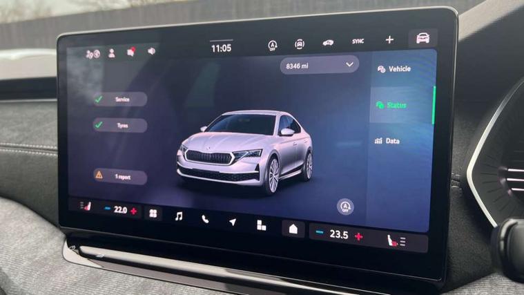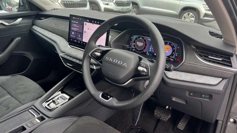 1x USB Typc C port in rear view mirror, 4x USB Type C ports - 2x in front centre console and 2x in rear (45W), Drive mode selection, Driver fatigue sensor, eCall emergency system, Electro-mechanical power steering, Front assist system, Traffic jam assist, Traffic sign recognition, Turn Assist, Virtual Cockpit - 10.25" digital display, Voice control system, Wireless charging (15W) with cooling function, Wireless SmartLink for Apple CarPlay and Android Auto, 13" touchscreen display with navigation, DAB Digital radio, Aero front windscreen wipers with intermittent function, Auto dimming rear view mirror, Body colour bumpers, Body colour door mirrors and handles, Chrome grille surround, Chrome strip in lower front bumper, Chrome window surrounds, Electric front and rear windows, Heated rear windscreen, High level third brake light, Ice scraper in fuel cap, LED daytime running lights, LED Headlights, Logo projection in front doors, Rain and light sensors, Rear fog light on one side, Rear privacy glass, Rear side wing doors, 12 volt socket in boot, 3 rear headrests, 3 seat bench in 2nd row, 4 foldable roof handles, Boot net programme, Electric auxiliary air heater, Front head restraints, Heated front seats, Illuminated glovebox, Interior door handles in dark chrome, Jumbo Box storage, Luggage compartment lighting x2 lights, Mechanical rear seat release from boot, Parcel shelf - folding, Single front passenger seat, Steering wheel in black leather with black stitching, Storage compartments in left and right of boot, Sun visors with mirrors, Sunglasses storage, Ticket holder, Umbrella in door panel, Unsplit rear bench seat, split folding backrest with centre armrest with cupholder, Comfort package - Octavia, 3x3 point rear seat belts, Alarm with interior monitoring, tilt sensor and back up horn, Curtain airbags and front side airbags, Driver and front passenger airbags, Drivers knee airbag, Electronic parking brake, ESC including ABS, EBV, MSR, ASR, EDS, HBA, DSR, Front central airbag, Hill hold assist, ISOFIX on front passenger seat and outer rear seats, Passenger airbag deactivate switch, Three point seat belts in front and rear, Two tone horn, Tyre pressure monitor, Visual and acoustic seat belt reminder, Warning reflectors in front door, Anti-theft wheel bolts, Keyless start/stop, Remote central locking, Chrome air vent surrounds,