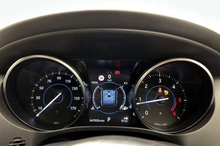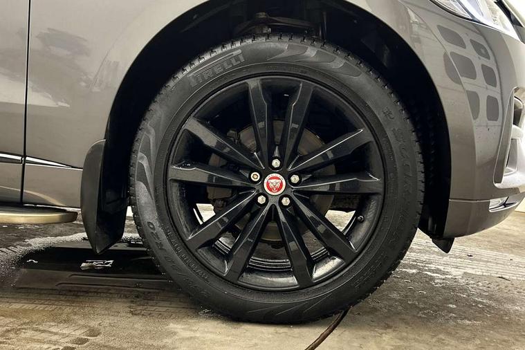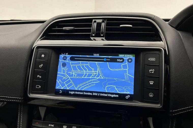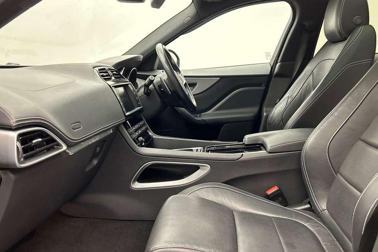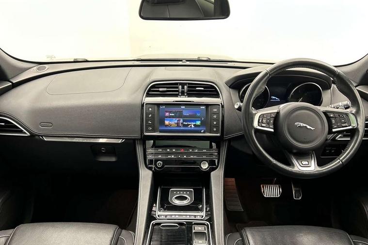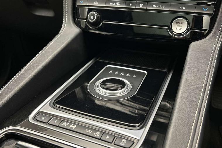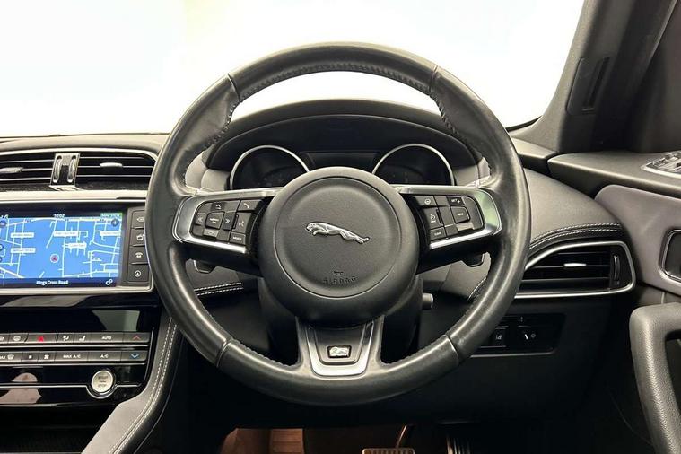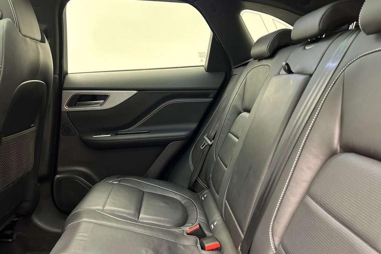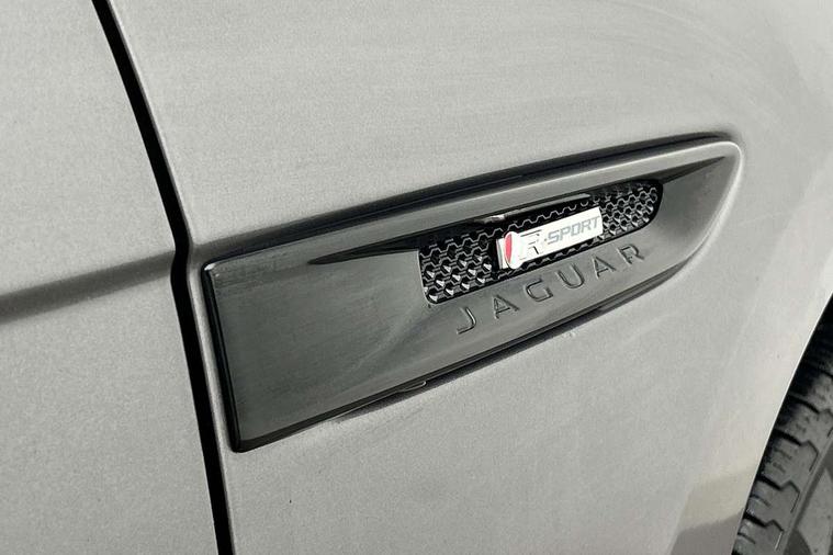 Auto speed limiter, Front parking aid, Lane departure warning system, Outside temperature gauge, Rear parking aid, Service interval indicator, Traffic sign recognition, Trip computer, Variable PAS, All terrain progress control, Bluetooth connectivity including audio streaming, DAB Digital radio, Dynamic volume control, Wi-Fi hot spot, Approach Illumination, Auto dimming rear view mirror, Automatic headlights, Body colour bumpers, Body colour door mirrors, Electric front/rear windows with one touch/auto up/down, Front fog lights, Green tinted heat insulating glass, Headlight washers, Heated rear window with timer, LED tail lights, R-sport body kit, Rain sensor windscreen wipers, Rear wiper, Trailer stability assist, Variable front intermittent wipers, 12V power point front/rear, 12V power point in luggage area, 2nd row air vents, 3 rear headrests, 40:20:40 split folding rear bench seat, Centre armrest console, Fold flat front seats, Front centre armrest with storage compartment, ISOFIX on outer rear seats, Jaguar sense, JaguarDrive selector, Leather multi function steering wheel, Perforated grained leather upholstery with contrast stitching, Rear armrest with cupholder, Shopping hook in boot, Sports pedals, Steering wheel gearshift paddles, Tie down hooks in luggage area, Twin front covered cupholders, 3x3 point rear seatbelts, ABS, Anti-whiplash front headrests, Autonomous emergency braking (AEB) with forward facing camera, Brake pad warning light, Driver/Front Passenger airbags, DSC - Dynamic Stability Control, Electronic parking brake, Emergency brake assist, Front and rear curtain airbags, Front and rear seatbelt reminder, Front passenger seat occupancy sensor, Front side airbags, Hill start assist, Power child locks, Torque vectoring brake, Traction control, Tyre pressure monitoring system, Immobiliser, Keyless Start, Perimeter alarm, Remote central locking, Valet mode, Luxtec door trim, Luxtec wrapped instrument panel,
