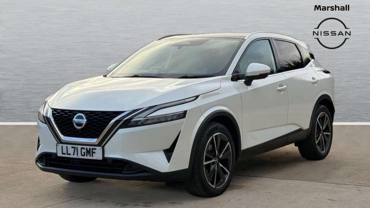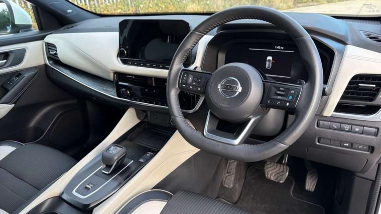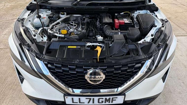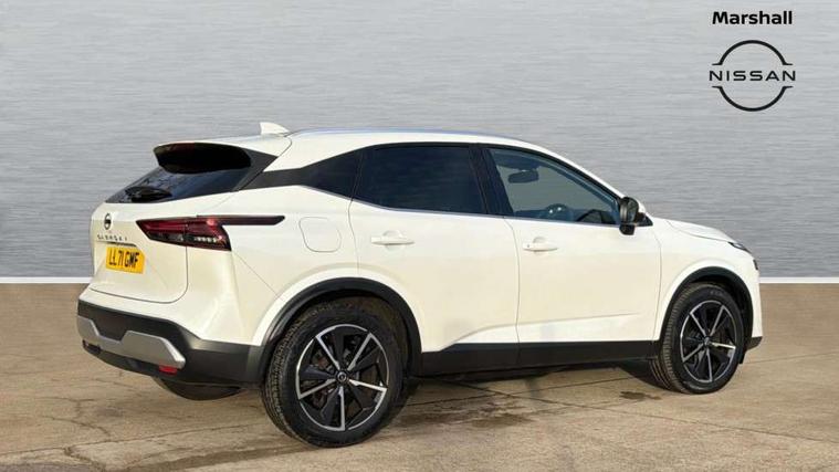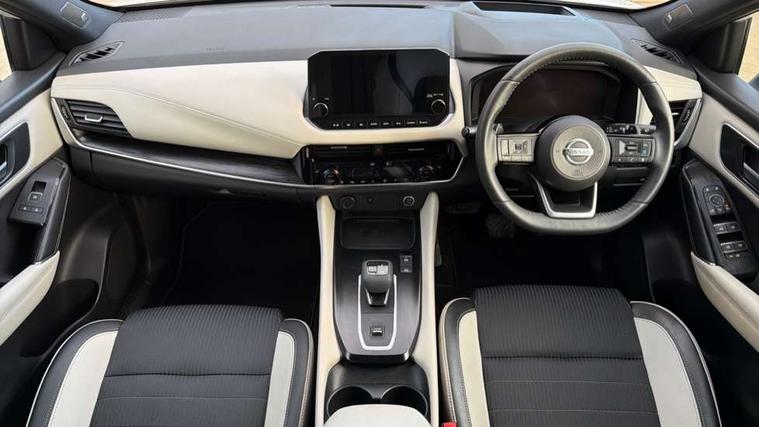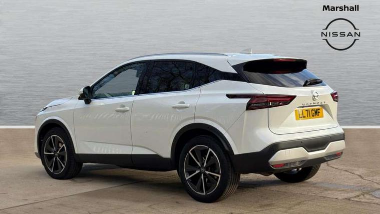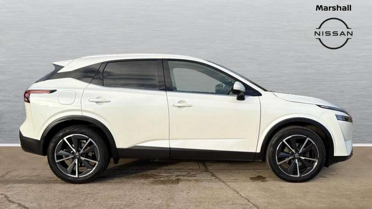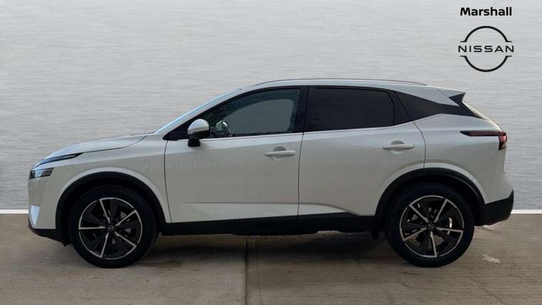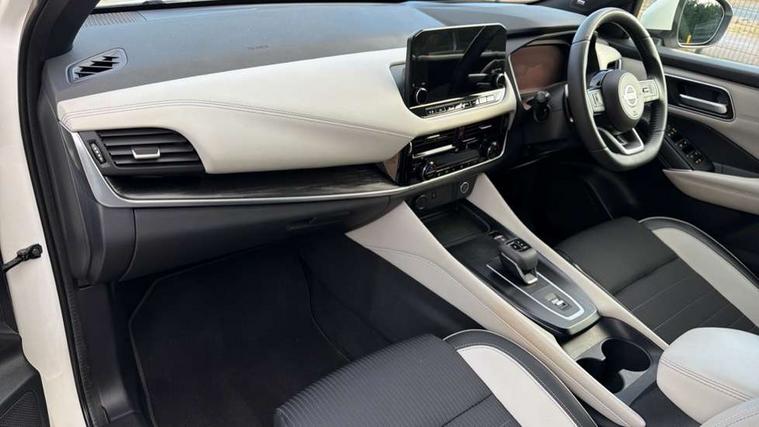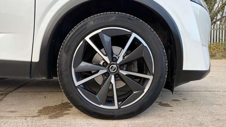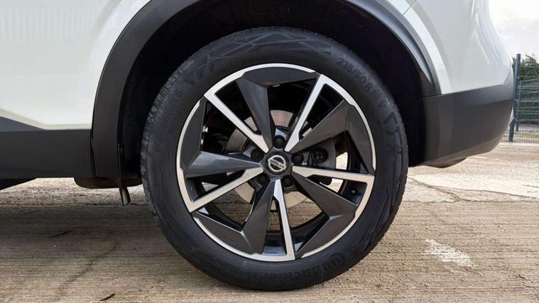 Blind spot warning, Drive modes (sport, normal, eco), Electric speed sensitive power steering, Emergency and breakdown call, Front and rear parking sensors, Full Digital 12.3" TFT Digital Combimeter, Google maps services - search, weather, 3D maps and Google street view, Hands free power tailgate, Idle stop/start system, Intelligent around view monitor, Intelligent Cruise control (ICC), Intelligent driver alert system, Intelligent forward collision warning, Intelligent lane intervention, Lane departure prevention, Lane departure warning system, Moving object detection, Nissan connect 9" touchscreen infotainment system, Nissan connect navigation, Push button starter, Rear cross traffic alert, Remote control services - door locks, lights, horn and car locator, Telematics - notifications and connectivity services, TomTom live traffic services, Traffic sign recognition with legal speed adjustment, Trip computer, Virtual personal assistant and firmware over the air capability, Wireless Apple CarPlay and wired Android Auto, Wireless charging pad, 6 speakers, AM/FM audio system with DAB, Bluetooth audio streaming, Front USB connections (Type-A and Type-C), Rear USB charging only ports (Type-A and Type-C), Auto dimming rear view mirror, Auto rear wiper when reversing, Body colour mirror caps, Body coloured door handles, Bodyside mouldings, Chrome side window finisher, Door handle with button, Dusk sensor, Electric auto folding door mirrors, Electrically adjustable and heated door mirrors with LED turn indicator, Fixed panoramic glass roof with electric sunshade, Follow me home headlights, Front and rear LED turning signals, Intelligent auto headlights, LED daytime running lights, LED rear lights, One touch front and rear electric windows with remote opening and closing, Partially body coloured bumpers, Privacy glass, Rear roof spoiler, Rear side wing doors, Rear styling plate, Roof rails, Shark fin antenna, Splash free rain sensing wipers, Super UV and infrared cut glass, Three blink turn signal, 12v power socket in dashboard and luggage, 2 way electrical driver lumbar adjustment, 2x Rear coat hooks, 3 bench rear seats in 2nd row, 3 rear headrests, 4 folding assist grip, 6 Luggage hooks - 4 on floor, 2 on side, 60/40 split folding rear seat bench, 8 way electric adjustable drivers seat, Ambient lighting around centre console, Ambient lighting in front doors, Centre console storage tray, Chrome interior door handles, Cloth/syntech leather monoform upholstery, Dark headlining, Driver and front passenger sunvisors with illuminated vanity mirrors, Driver seat back pocket, Dual zone automatic climate control with pollen filter, Front and rear door storage, Front cupholders x 2, Front door with bottle holders, Glovebox with light, Hard trunk cover, Height adjustable front headrests, Leather steering wheel, Luggage board system, Luggage space lighting, Manual lumbar support on passenger seat, Manually adjustable passenger (slide recline + lifter), Multifunction steering wheel, Passenger seat back pocket, PVC front centre console and armrest, Rear armrest with 2 cupholders, Rear door bottle holders, Single front passenger seat, Soft PVC kneepad, Steering wheel gearshift paddles, Steering wheel switches, Tilt/telescopic adjustable steering wheel, Two rear isofix child seat anchorage points with top tether, Welcome light and doors with console tray ambient lighting, Heat pack - Qashqai, Tech Pack (ProPILOT + HUD), 3x3 point rear seatbelt pretensioners + load limiters, ABS, ESP, EBD and brake assist, Active brake limited slip, Auto hold function, Child locks on rear doors, Curtain and front side, far side airbags, Driver and passenger airbags, Driver, passenger and 2nd row rear seat belt reminder, Electronic parking brake, Front seatbelt pretensioners + load limiters, Height adjustable front seatbelts, Hill start assist, Intelligent blind spot intervention, Intelligent front emergency braking with pedestrian, cyclist recognition and junction assist, Intelligent rear automatic braking, Tyre pressure monitoring system, Vehicle dynamic control, Capless fuel filler, Engine immobiliser, Nissan i-key, Rear bumper with silver insert, Remote central door locking with deadlocking, Thatcham Cat.1 alarm, 19" Alloy wheels,