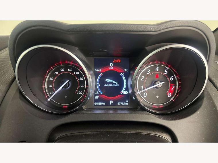 8" touch screen, Bluetooth telephone connectivity, InControl remote premium, Mobile App interface, Navigation system, PAS, Rear parking aid with visual display, Trip computer, Sports suspension, Audio remote control, DAB Digital radio, InControl app, USB/aux input socket, Auto dimming rear view mirror, Automatic headlights, Bi-Xenon headlights with LED day running lights, Body coloured bumpers, Bonnet louvres, Electric adjustable heated door mirrors, Electric front windows, Headlight washers, LED tail lights, Rain sensor windscreen wipers, Satin black grille, Tinted glass, Twin exhaust pipes, 12V socket in glovebox, 2 X front 12v power sockets, Air vents on dashboard, Front centre armrest, Front cupholders, Front headrests, Jaguar sense, Leather door trim, Lumbar support, ABS + EBD + EBA, Driver/Front Passenger airbags, DSC - Dynamic Stability Control, Dynamic mode, Electronic parking brake, Front/rear seatbelt pre-tensioners, Pass airbag/seat occupancy detector, Passenger airbag off kit, Pedestrian contact sensing and deployable bonnet, Seatbelt reminder for driver and front passenger, Side airbags, Tyre pressure monitoring system, Deadlocks, Drive away door locking, Engine immobiliser, Keyless Start, Locking wheel nuts, Perimetric and volumetric anti theft alarm, Remote central locking, Two stage unlocking, Valet mode,