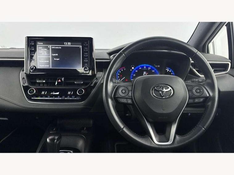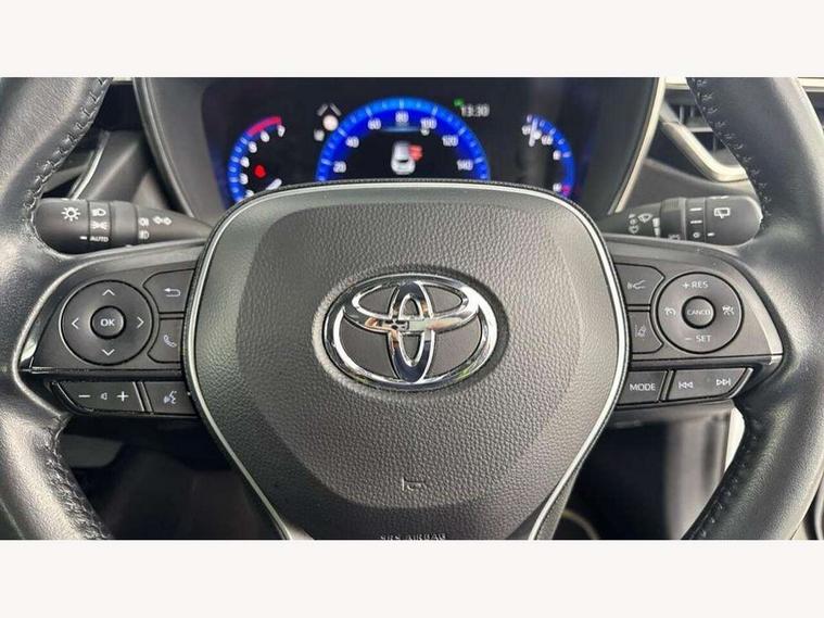 7" Multi information display screen, Bluetooth telephone connectivity, Connected car functionality upgrade, tracker, remote status and e-care, Dynamic radar cruise control (with RSA) including switch on steering wheel, E-call, Electrically assisted power steering, EV drive indicator, Lane Departure Alert (LDA) switch on steering wheel, Memory on adjustable speed limiter, Push button start, Reversing camera, Smartphone integration with Apple CarPlay and Android auto, Gasoline particulate filter, Vehicle Stability Control (VSC), 6 speakers, 8" Touchscreen with MM19 Multimedia system and voice recognition, AM/FM radio, DAB Digital radio, USB and Aux in connectors + 12V front outlet, Anti-jam protection on power windows, Auto up and down function on all power windows, Automatic headlights with high beam assist, Black metallic surround on lower front grille, Black toyota logo in front, Black window frames, Body colour rear spoiler, Body coloured bumpers, Body coloured door mirrors, Body coloured outside door handles, Follow me home headlights, LED daytime running lights, LED front fog lights, LED Headlights, LED High mounted stop light, Manual day/night rear view mirror, Power adjustable heated door mirrors, Power front windows, Power rear windows, Rain sensor, Rear side wing doors, Rear window defogger, Rear window wiper, Shark fin antenna, Time adjustment on intermittent wiper, Turning signal integrated indicators in door mirrors, Unique lower skirt, Unique side rocker with black insert, UV-filter on driver and passenger windows, 3 rear headrests, 3 seat bench in 2nd row, 3 spoke leather steering wheel + gear knob, 60/40 split folding rear seat, Adjustable speed limiter switch on steering wheel, Audio, multimedia and telephone switches on steering wheel, Boot light, Centre room light, Clean air filter, Driver and front passenger personal light, Driver and passenger assist grip, Driver and passenger sun visor with mirror and light, Dual zone automatic air conditioning with ECO mode switch, Fabric armrests, Front and rear cup and bottle holders, Front door pockets, Front head restraints, Front passenger seat, Heated driver and front passenger seats, Illuminated entry system in room lamp, ISOFIX seat fixing (2 fixings on rear outer seats), Leather gear shift with satin chrome on gear shift console, Manual height adjustable for driver and front passenger seat, Parcel shelf, Passenger seat back pocket, Pollen filter, Power adjustable lumbar support on driver seat, Power window switches with satin chrome inserts, Quilted fabric upholstery with grey stitches seats, Rear armrest with 2 cupholders, Rear passenger coat hooks (2), Satin chrome inside door handles, Shopping bag hooks in luggage compartment, Sliding armrest on centre console box, Slow opening glovebox with lights, Tilt/telescopic steering column, Voice recognition switch on steering wheel, Whiplash Injury Lessening (WIL) feature (active headrest) for seats, Toyota safety sense 2 pack - Corolla, 3x3 point rear seatbelts, Adjustable driver and front passenger seat belt extender to top anchor point, Anti lock braking system + Electronic brake force distribution, Brake assist function, Child locks on rear doors, Downhill Assist Control (DAC), Electronic parking brake, Emergency brake light signal (EBS), Front passenger airbag on/off switch, Front seatbelt reminder, HAC - Hill start assist control, Rear seat belt reminder, Seatbelt pretensioners and force limiters, Supplemental restraint system (SRS) 7 airbags - dual driver, dual side curtain, side impact and driver knee airbags, Traction control, Tyre pressure warning system, Acoustic vehicle alert system (AVAS), Alarm with motion sensor and immobilizer, Remote central locking + deadlocks, Satin chrome dash trim, Soft touch texture on upper dashboard, Unique wheel finish with red wheel cap,