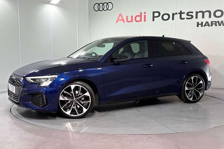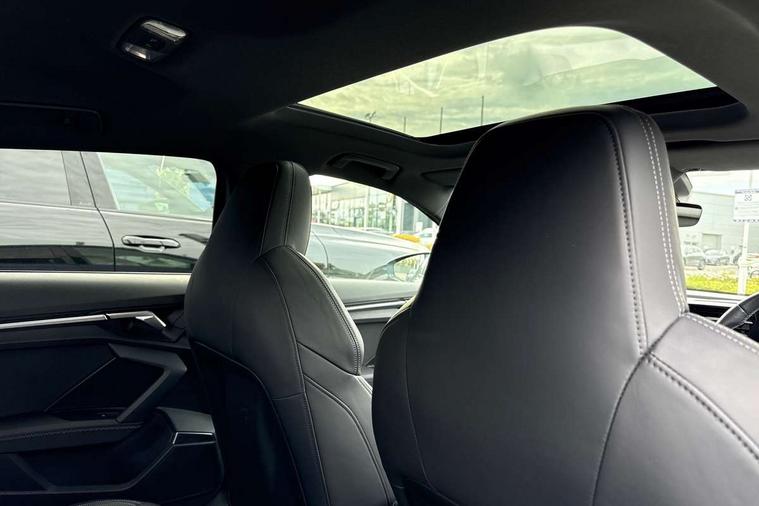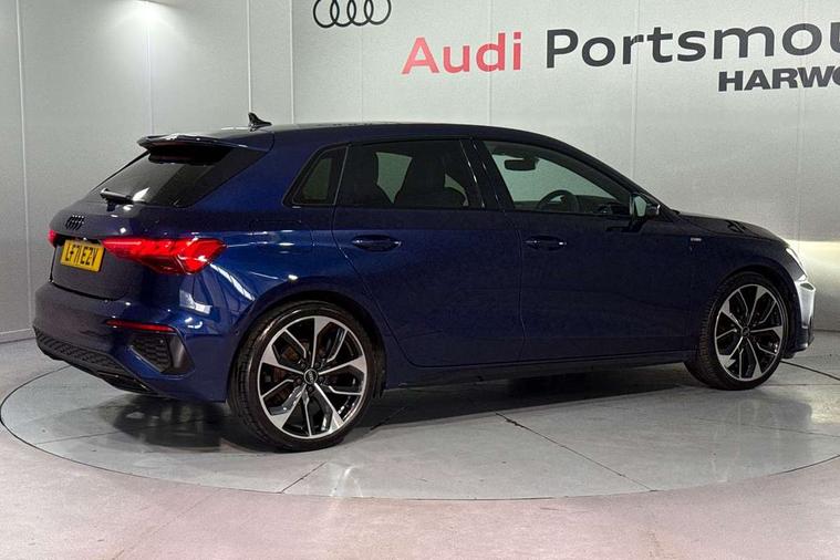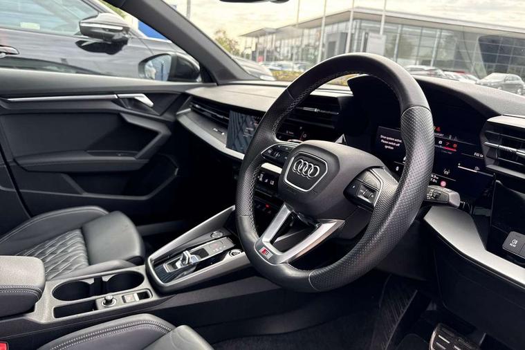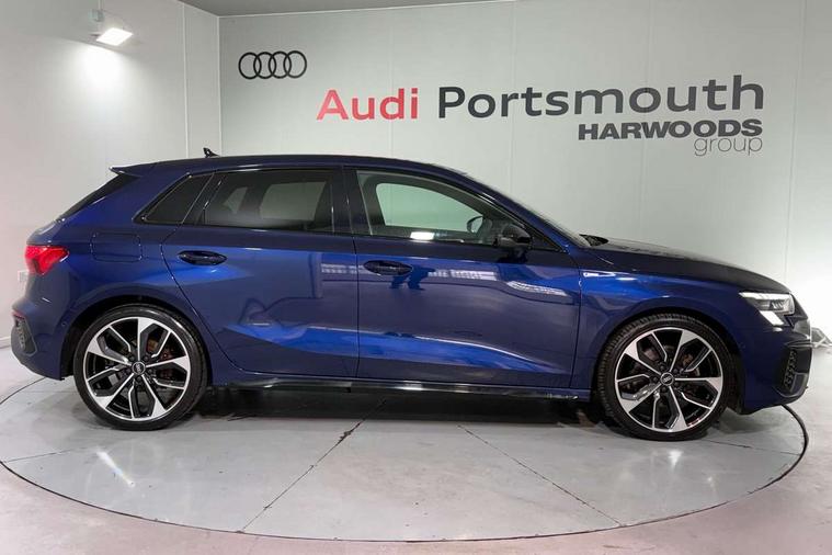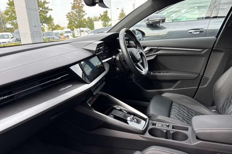 Audi connect emergency call and service, Audi drive select (Auto, Comfort, Dynamic, Efficiency and Individual), Audi phone box with wireless charging, Audi smartphone interface, Audi virtual cockpit plus - 12.3" full HD resolution dynamic digital instrument cluster, Automatic start/stop system with recuperation, Bluetooth interface, Collision avoidance assistant, Electromechanical power speed sensitive steering, Head up Display, Lane departure warning system, MMI Navigation Plus with high resolution 10.1" colour touch screen display, Power operated tailgate - Luggage compartment lid opens electrically, Service indicator, Trip computer, Voice control system with natural language interaction, Sports suspension, 2xUSB-C connection with data and charging functions, Bang and Olufsen premium sound system with 3D sound, DAB Digital radio, 3rd brake light, Acoustic glass windscreen, Audi Beam uses LEDs to project Vorsprung logo, Audi matrix LED headlights with LED rear lights + dynamic front and rear indicators, Auto dimming frameless rear view mirror, Body colour front spoiler blade, Electric panoramic sunroof, Electrically adj heated/folding + automatically dimming exterior mirrors + automatic kerb side function for passenger side exterior mirror, Front electric windows, Headlight washers, Illuminated aluminium inserts front door sills with S logo, Integrated LED indicators in door mirrors, LED daytime running lights, Light and rain sensors, Privacy glass - dark tinted rear window, rear door and side windows, Rear diffuser in grained matt black, Rear electric windows, Rear side air outlets in grained matt black, Rear wiper, S roof spoiler, 12V socket and storage compartment in front centre console, 3 spoke multifunction leather steering wheel including paddle shift, 4 way electrically adjustable lumbar support for driver and front passenger, 40/20/40 split folding rear seat bench with cupholder, Black cloth headlining, Dual zone electronic climate control, Electrically adjustable front seats for driver's side, Fine Nappa leather upholstery with front sports seats S embossed logo, Front and rear centre armrest in leather, Front and rear headrests, Front/rear floor mats, Heated front seats, Height and reach adjustable steering wheel, Interior lighting - glove compartment light and right hand side, Luggage compartment floor covering, Seat side bolsters, Stainless steel pedals and front footrest, Aluminium interior elements pack - A3 Sportback, Black styling pack - A3 Sportback Vorsprung, Driver assistance package - A3 Sportback, Extended ambient lighting pack - A3 Sportback, LED interior lighting pack - A3 Sportback Edition 1/Vorsprung, 3x3 point rear seat belts, Driver and front passenger airbag with passenger airbag deactivation, Electronic Stabilisation Control (ESC) including ABS, ASR and EDL, First aid kit with warning triangle and 2 safety vests, Front side airbags with head airbags and interaction airbag, Hill hold assist, Pre-sense front with pedestrian and cyclist detection, Seatbelt monitoring, Tyre pressure loss indicator, Advanced key, Anti theft alarm, Anti-theft wheel bolts, Electronically operated child lock, Immobiliser, Remote control central locking, Carbon inlays, accent surfaces in the dashboard and centre console in platinum grey silk effect paint finish,