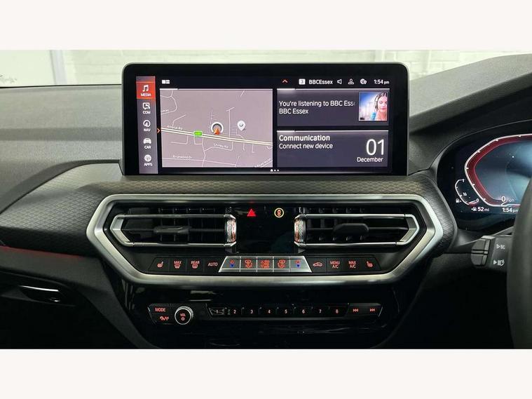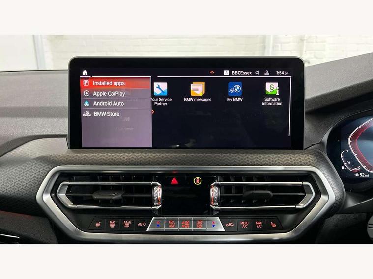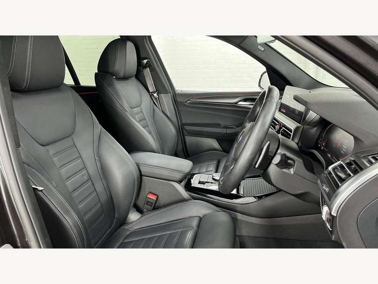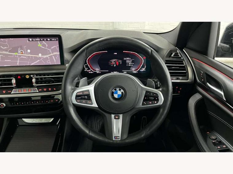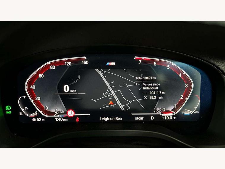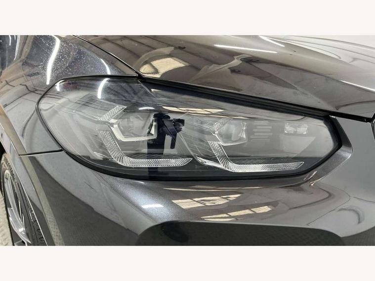 Active Guard, Attentiveness assist, BMW Live Cockpit Professional nav system including 12.3" instrument display + 12.3 high resolution control display, BMW Online services, BMW Teleservices, Brake pad wear indicator in front and rear, Check Control warning system for monitoring of lights and door/luggage compartment open warning, Condition based service - BMW service history, electronic service booklet, integrated owner's handbook, Connected drive services, Cruise control with brake function + speed limiter, Electric boot lid, Front/rear Parking distance control, iDrive Controller with 8 favourite buttons, Instrument cluster with speedometer with mph readout, tachometer, fuel gauge and oil temperature gauge, Lights on warning by audio warning signal when ignition is switched off, Oil sensor for level and grade, warning by check control system, On board computer - average speed+fuel consumption, service interval, clock/date, odometer/trip meter, outside temperature display and ice warning, Optimum shift indicator, Personal Profile - automatic lock when driving away selectable, Run flat indicator, Stop/start system, Variable sports power steering with drive performance control Sport+ mode, Automatic transmission with gearshift paddles, Incorrect fuelling protection, M sport suspension, Multi-link rear suspension, Performance Control, BMW professional radio/CD/MP3, DAB tuner, Acoustic glazing, Automatic windscreen wipers and automatic headlight, Black finish on B pillars, Body colour door handles, Body colour electric adjust heated aspherical door mirrors, Body colour roof mouldings, Body coloured bumpers, Direction indicator, side repeaters, integrated in exterior mirrors, Dynamic brake lights, Exhaust tailpipes - dual, round, split left and right with chrome finisher, Fingertip control / anti-trap function on electric window, Folding wing mirrors with auto dimming, Follow me home headlights, Front and rear bumper system with replaceable deformation elements, Front and rear electric windows, Gloss chrome tailpipes finishers, Green tinted heat insulating glass, Heated windscreen washer jets, High beam assistant, High gloss black shadow line roof rails, High gloss shadowline exterior trim in decorative moulding side frame/recess cover/guide rail/B, C pillars/mirror frame and triangle with mirror base, High level 3rd brake light incorporating LED Technology, Interior rear view electrochromatic mirror with automatic anti dazzle function, LED tail lights, Lightweight engineering, M aerodynamic bodystyling, M Sport entry door sill strips, Model designation, Rear side wing doors, Rear wing door, Rear wiper, Shark fin antenna, Side exterior M designation badges, Visible VIN plate, Welcome lighting, Windscreen wipers with adjustable interval, 12V power socket in front centre console, 3 rear headrests, 3 seat bench in 2nd row, 3 zone automatic air conditioning, 4 lashing points to secure luggage, 40:20:40 split folding rear seat with loading system, Ambient lighting, Anthracite headlining, Automatic interior light when door is opened/ignition switched off or via remote key, Driver seat backrest width adjustment, Floor mats in velour, Foldable storage floor with compartment, Four grab handles integrated in roof lining, Front and rear bottle holders integrated into door trim storage compartments, Front and rear side armrests integrated into door trim, Front centre armrest with storage compartment, Front footwell lights, Front head restraints, Front passenger seat, Front sports seats, Front/rear courtesy lights with soft on/off dimming, Front/rear reading lights, Heated front seats, Isofix rear child seat preparation, Leather gear knob, Luggage area underfloor compartment, Luggage compartment lighting, M sport leather steering wheel, Multifunction steering wheel, Parcel shelf removeable and storable under boot floor, Reach and rake adjustable steering column, Rear centre armrest with 2 cupholders, Removable / retractable luggage cover, Slope adjustable rear seats, Storage compartment in rear centre console and front/rear door trims, Sun visors with vanity mirrors and ticket pocket, Toolkit located in luggage compartment, Two front cupholders with removable oddments tray/lid, Vernasca leather upholstery, Connected pro pack - X3, Driving assistant pack - X3, ADB - Automatic Differential Brake, Anti-lock braking system (ABS) with brake assist, Automatic Stability Control (ASC), Battery safety cut-off, BMW emergency call, Brake drying, Brake energy regeneration, Braking pre-tensioning, Child locks on rear doors, Cornering brake control (CBC), Crash Sensor - activation of central locking release, hazard warning light and interior lighting, Deactivation of fuel pump in the event of a crash, Driver and front passenger front and side airbags with passenger deactivation and ITS front and rear head airbags, DSC+, Dynamic brake control, Dynamic Traction Control - DTC, Electromechanical parking brake, Hill descent control, Hill start assist, Seatbelt security check for front seats, Side impact protection, Three point seatbelts to all seats with front and outer rear pyrotechnic belt tensioners and seat belt force limiters, Two tone horn, Tyre pressure sensor, Ventilated front and rear disc brakes, Warning triangle and first aid kit, Central locking switch for all doors, fuel filler cap and luggage compartment, Electronic engine immobiliser, Locking wheel nuts, Remote control including two integrated key - one button for open/close all lockable content, windows and separate button for open luggage compartment, Remote control Thatcham category 1 alarm, Start/stop button with Comfort Go keyless engine start and auto Start/stop deactivation button, Low rolling resistance tyres,