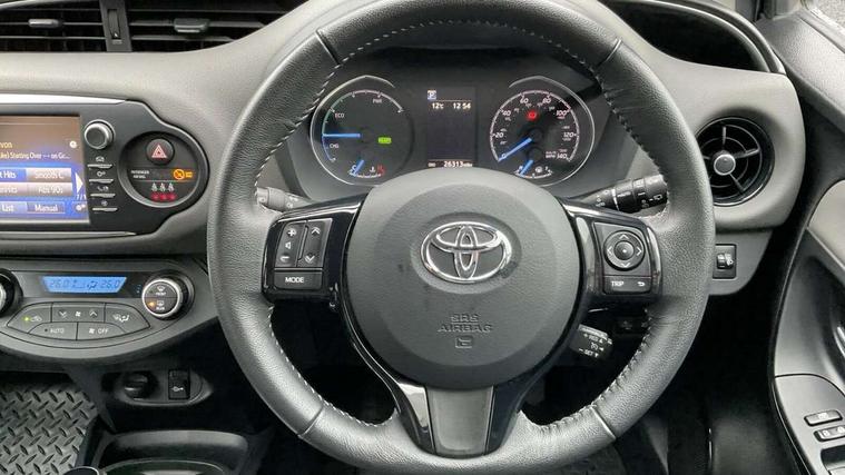 Bluetooth system, Cruise control, External temperature gauge, Fuel indicator with low level warning, Lane departure warning system, Lights on warning, Multi-information display, Power Steering, Push button starter, Rear parking sensor, Rear view camera, Road sign assist - RSA, TFT display screen, Touch 2 Go navigation system, Trip computer, 6 speakers, Auxiliary input socket, DAB Digital radio, Steering wheel mounted audio/telephone controls, Touch 2 touchscreen Radio with iPod connectivity, USB connection, 2 speed front wipers + intermittent wipe, Auto high beam, Auto up and down function on drivers window, Body colour bumpers, Body colour door handles, Body coloured door mirrors, Chrome fog light surround, Daytime running lights, Door mirror integrated indicators, Drivers window one touch up/down, Electric adjustable heated door mirrors, Electric front windows, Follow me home headlights, Front fog lights, Green tinted glass, Heated rear windscreen, Projector headlamps, Rain sensitive windscreen wipers, Rear wiper, Turning signal integrated indicators in door mirrors, 3 spoke leather steering wheel, 60/40 split folding rear seat, Active headrests, Boot light, Cloth upholstery, Driver seat height adjust, Driver/passenger vanity mirrors with covers, Dual zone automatic climate control, Front cupholders x 2, Front map reading lights, Front seats with lumbar support, Glovebox, Height adjustable front head restraints, Height adjustable rear seat head restraints (x3), Isofix system on outer rear seats, Leather gear knob, Leather parking brake handle, Rear cupholder, Removable rear parcel shelf, Sliding front seats, Tilt/telescopic steering column, 3 point seatbelts on all rear seats, ABS+EBD+Brake assist, Collision mitigation braking system, Curtain airbags, Driver and passenger airbags, Drivers knee airbag, Emergency brake light system (EBS), Front passenger airbag on/off switch, Front seatbelt reminder, Front side airbags, Height adjustable front seatbelts with pre-tensioners and load limiters, Hill start assist control (HAC), Passenger airbag deactivate switch, Rear child proof door locks, Rear seat belt reminder, Road sign information display, Seatbelt warning lamp and buzzer, Toyota safety sense including Road sign assist, Pre collision system, auto high beam and lane departure alert), Tyre pressure monitoring system, Vehicle stability control VSC + traction control, Engine immobiliser, Remote central locking, Instrument panel in grey, Space saver spare wheel,