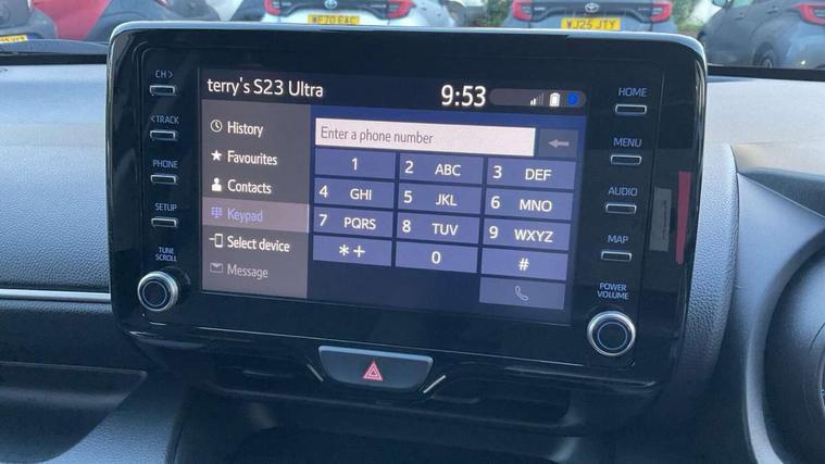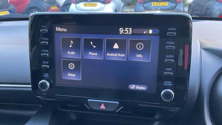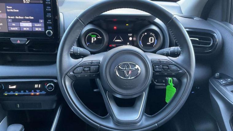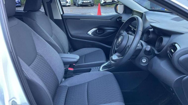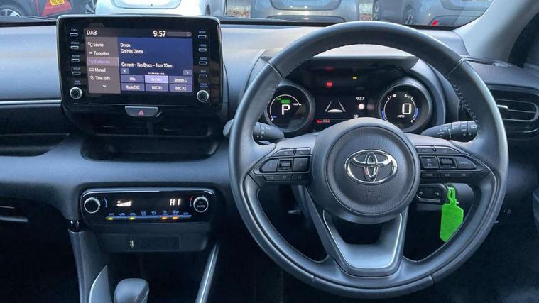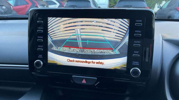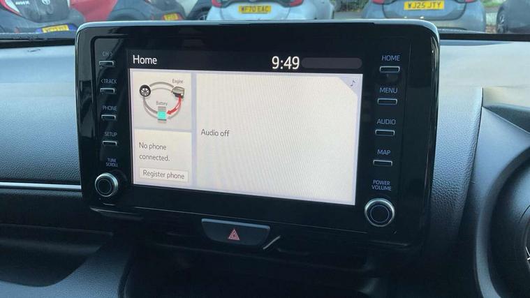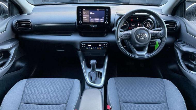 Adaptive cruise control, Adjustable speed limit with speed warning, Bluetooth connectivity, Colour binocular inspired displays with digital speedometer, E-call, Electric power steering, Hybrid energy display, Multi information display switches on steering wheel, Reversing camera, Smartphone integration with Apple CarPlay and Android auto, Tailgate, Voice recognition, Vehicle Stability Control (VSC), 4 speakers, 8" Multimedia display touch screen, USB connection, Acoustic windscreen glass, Auto windscreen wipers, Automatic headlights, Body coloured door mirrors, Electric adjustable heated door mirrors, Follow me home headlights, Front auto power windows with anti jam protection, Full LED rear lights, LED daytime running lights, LED front fog lights, LED front light guide, LED Headlights, LED High mounted stop lamp, LED Indicators, LED rear light guide, Manual headlight levelling, Painted chequered front grille, Rain sensor, Rear auto power windows with anti jam protection, Rear privacy glass, Rear side wing doors, Rear spoiler, Rear wiper, Shark fin antenna, Turning signal integrated indicators in door mirrors, Variable front intermittent wipers, 3 adjustable rear headrests, 3 spoke leather steering wheel, 60/40 split folding rear seat, Active headrests, Adjustable boot height, Auto air conditioning, Coat hooks in rear grab handles, Cup holders (2 front & door), Data Communication Module (DCM) connected services, Fabric upholstery, Front armrest, Glovebox, Grey roof lining, Height adjustable driver's seat, Isofix seat fixing, Leather gearshift, Pollen filter, Shopping bag hooks, Single front passenger seat, Tilt/telescopic steering column, 3 point seatbelts on all rear seats, ABS+EBD+Brake assist, Electronic parking brake, Emergency brake light system (EBS), Front passenger airbag on/off switch, Front seatbelt reminder, Hill start assist control (HAC), Rear child proof door locks, Rear seat belt reminder, Supplemental Restraint System (SRS) 8 airbags: Driver & passenger's airbags, dual side curtain airbags, side impact airbags, front centre airbag, Toyota Safety Sense 2, Precollison + Night time Pedestrian & Cyclist Detection, Lane Trace Assist, Auto High Beam, Intelligent ACC & Road Sign Assist, Tyre pressure warning system, 2x Master key, Alarm/immobiliser, Remote powered central double locking doors, Soft touch instrument panel, Space saver spare wheel,