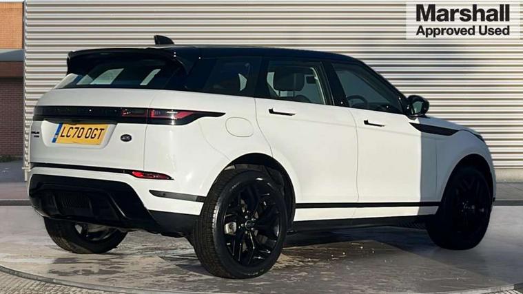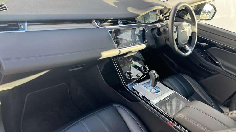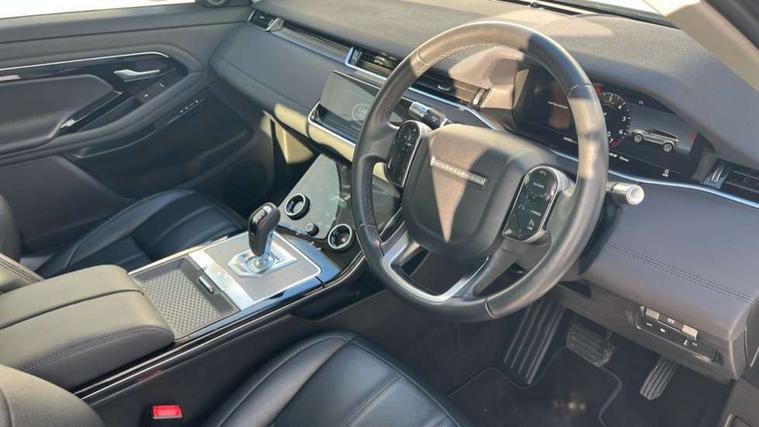 3D 360 degree surround camera, Android Auto, Apple car play, Blind spot assist, Bluetooth connectivity, Brake pad wear indicator warning light, Clear exit monitor, Driver condition monitor, Duo touch pro, eCall emergency system, Electronic power assisted steering (EPAS), InControl remote, Interactive Driver display instrument cluster, Land Rover InControl apps, Lane keep assist, Pivi pro connected includes upgraded infotainment, connected navigation pro, Nuance speech licence, Push button starter, Rear traffic monitor, Traffic sign recognition with adaptive speed limiter, Voice control system, Wade Sensing, All terrain progress control, Large fuel tank, Passive suspension, Public charging cable, Terrain Response 2 Auto, Digital Audio Broadcast radio-DAB, Steering wheel mounted controls, Auto headlights, Automatic headlight levelling, Electric windows with one touch open/close and anti trap, Evoque badge, Flush deployable exterior door handles, Heated rear window with timer, Heated washer jets, Heated windscreen, P300e badge, Power fold, auto-dimming, heated door mirrors with approach lights and auto dimming driver side, Rain sensing windscreen wipers, Rear fog lights, Rear side wing doors, Rear wiper, Tailgate spoiler, Third brake light, 40:20:40 split folding rear seats with centre headrest and armrest, Ambient interior lighting, Isofix system on outer rear seats, Overhead lighting console, Overhead stowage for sunglasses, Passive front head restraints, Rear air vents, Rear centre headrest, Rear head restraints, Single passenger seat, Sunvisors with illuminated vanity mirrors, Twin sliding front centre armrest, 3 rear 3 point seatbelts, Anti-lock braking system (ABS), Customer configurable autolock, DSC - Dynamic Stability Control, Electronic brake force distribution, Electronic parking brake, Electronic traction control, Emergency braking, Front and rear seatbelt reminder, Hill descent control, Hill launch assist, Low traction launch, Power operated child locks, Roll stability control, Six airbags - Driver and passenger airbags/driver knee airbag/front side airbag and curtain airbags, Torque vectoring brake, Tyre pressure monitoring system, Alarm, Immobiliser, Intrusion sensor, Locking wheel nuts,