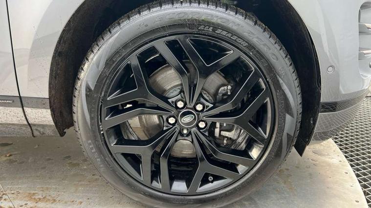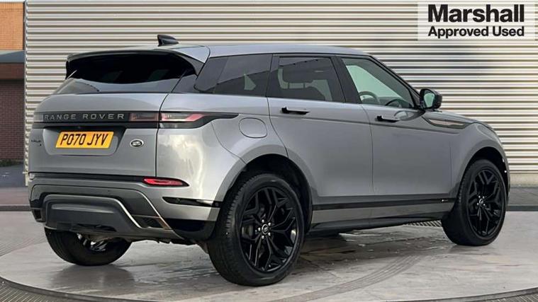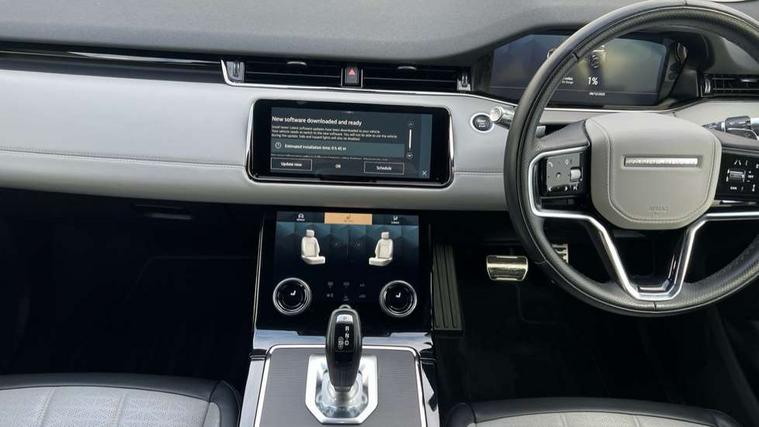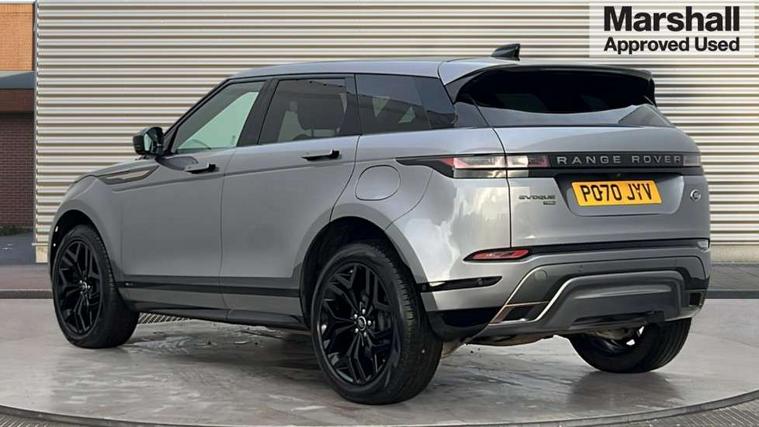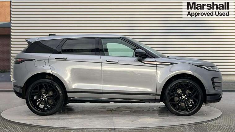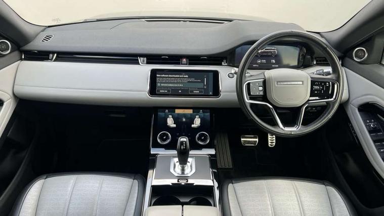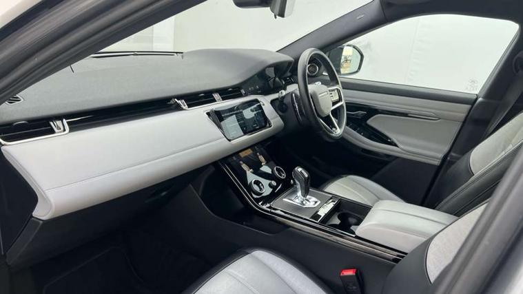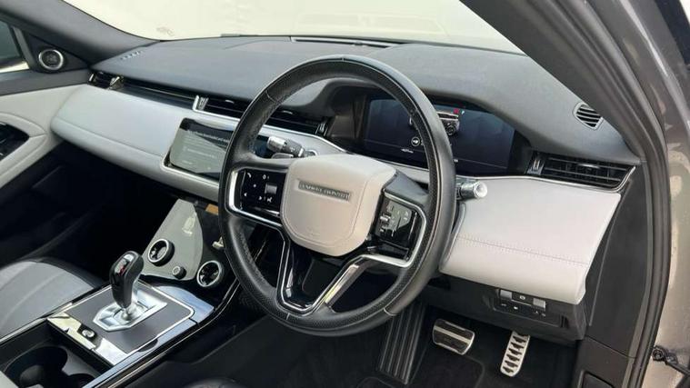 3D 360 degree surround camera, Adaptive cruise control, Android Auto, Apple car play, Blind spot assist, Bluetooth connectivity, Brake pad wear indicator warning light, Clear exit monitor, Driver condition monitor, Duo touch pro, Electronic power assisted steering (EPAS), InControl remote, Interactive Driver display instrument cluster, Land Rover InControl apps, Lane keep assist, Pivi pro connected includes upgraded infotainment, connected navigation pro, Nuance speech licence, Powered gesture tailgate/boot lid, Push button starter, Rear collision monitor, Rear traffic monitor, Traffic sign recognition with adaptive speed limiter, Voice control system, Wade Sensing, 7 kW onboard charger, All terrain progress control, Large fuel tank, Passive suspension, Public charging cable, Terrain Response 2 Auto, Digital Audio Broadcast radio-DAB, Steering wheel mounted controls, Automatic headlight levelling, ClearSight interior rear view mirror, Electric windows with one touch open/close and anti trap, Evoque and R-Dynamic badge, Flush deployable exterior door handles, Heated rear window with timer, Heated washer jets, Heated windscreen, P300e badge, Power fold, auto-dimming, heated door mirrors with approach lights and auto dimming driver side, R-Dynamic branding illuminated metal tread plates in loadspace and row 1 with brand name script and non illuminated metal in row 2, Rain sensing windscreen wipers, Rear fog lights, Shadow atlas bonnet and tailgate script, Tailgate spoiler, 40:20:40 split folding rear seats with centre headrest and armrest, Ambient interior lighting, Bright metal pedals, Isofix system on outer rear seats, Overhead lighting console, Overhead stowage for sunglasses, Passive front head restraints, Rear air vents, Rear centre headrest, Satin chrome gearshift paddles, Sunvisors with illuminated vanity mirrors, Twin sliding front centre armrest, 3 rear 3 point seatbelts, Anti-lock braking system (ABS), Customer configurable autolock, DSC - Dynamic Stability Control, Electronic brake force distribution, Electronic parking brake, Electronic traction control, Emergency braking, Front and rear seatbelt reminder, Hill descent control, Hill launch assist, Low traction launch, Power operated child locks, Roll stability control, Six airbags - Driver and passenger airbags/driver knee airbag/front side airbag and curtain airbags, Torque vectoring brake, Tyre pressure monitoring system, Alarm, Immobiliser, Intrusion sensor, Keyless entry, Locking wheel nuts,