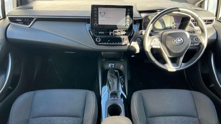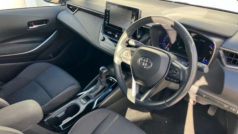 7" Multi information display screen, Bluetooth telephone connectivity, Connected car functionality upgrade, tracker, remote status and e-care, Dynamic radar cruise control (with RSA) including switch on steering wheel, E-call, Electrically assisted power steering, EV drive indicator, Lane Departure Alert (LDA) switch on steering wheel, Memory on adjustable speed limiter, Push button start, Reversing camera, Smartphone integration with Apple CarPlay and Android auto, Gasoline particulate filter, Vehicle Stability Control (VSC), 6 speakers, 8" Touchscreen with MM19 Multimedia system and voice recognition, AM/FM radio, DAB Digital radio, USB and Aux in connectors + 12V front outlet, Anti-jam protection on power windows, Auto up and down function on all power windows, Automatic headlights with high beam assist, Black metallic surround on lower front grille, Black toyota logo in front, Black window frames, Body colour rear spoiler, Body coloured bumpers, Body coloured door mirrors, Body coloured outside door handles, Follow me home headlights, LED daytime running lights, LED front fog lights, LED Headlights, LED High mounted stop light, Manual day/night rear view mirror, Power adjustable heated door mirrors, Power front windows, Power rear windows, Rain sensor, Rear side wing doors, Rear window defogger, Rear window wiper, Shark fin antenna, Time adjustment on intermittent wiper, Turning signal integrated indicators in door mirrors, Unique lower skirt, Unique side rocker with black insert, UV-filter on driver and passenger windows, 3 rear headrests, 3 seat bench in 2nd row, 3 spoke leather steering wheel + gear knob, 60/40 split folding rear seat, Adjustable speed limiter switch on steering wheel, Audio, multimedia and telephone switches on steering wheel, Boot light, Centre room light, Clean air filter, Driver and front passenger personal light, Driver and passenger assist grip, Driver and passenger sun visor with mirror and light, Dual zone automatic air conditioning with ECO mode switch, Fabric armrests, Front and rear cup and bottle holders, Front door pockets, Front head restraints, Front passenger seat, Heated driver and front passenger seats, Illuminated entry system in room lamp, ISOFIX seat fixing (2 fixings on rear outer seats), Leather gear shift with satin chrome on gear shift console, Manual height adjustable for driver and front passenger seat, Parcel shelf, Passenger seat back pocket, Pollen filter, Power adjustable lumbar support on driver seat, Power window switches with satin chrome inserts, Quilted fabric upholstery with grey stitches seats, Rear armrest with 2 cupholders, Rear passenger coat hooks (2), Satin chrome inside door handles, Shopping bag hooks in luggage compartment, Sliding armrest on centre console box, Slow opening glovebox with lights, Tilt/telescopic steering column, Voice recognition switch on steering wheel, Whiplash Injury Lessening (WIL) feature (active headrest) for seats, Toyota safety sense 2 pack - Corolla, 3x3 point rear seatbelts, Adjustable driver and front passenger seat belt extender to top anchor point, Anti lock braking system + Electronic brake force distribution, Brake assist function, Child locks on rear doors, Downhill Assist Control (DAC), Electronic parking brake, Emergency brake light signal (EBS), Front passenger airbag on/off switch, Front seatbelt reminder, HAC - Hill start assist control, Rear seat belt reminder, Seatbelt pretensioners and force limiters, Supplemental restraint system (SRS) 7 airbags - dual driver, dual side curtain, side impact and driver knee airbags, Traction control, Tyre pressure warning system, Acoustic vehicle alert system (AVAS), Alarm with motion sensor and immobilizer, Remote central locking + deadlocks, Satin chrome dash trim, Soft touch texture on upper dashboard, Unique wheel finish with red wheel cap,