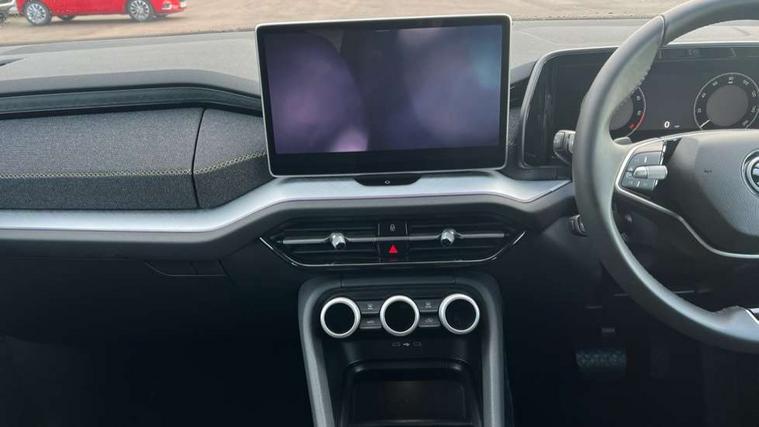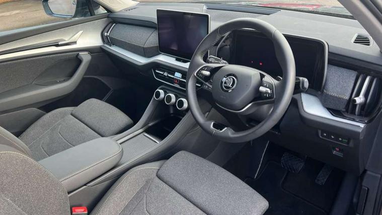 13" satellite navigation touchscreen display, Blind spot detection with door exit warning, Bluetooth system, ChatGPT functionality, Drive mode selector, Driver alert with fatigue sensor, Driver drowsiness alert system, Dry display cleaner, e call+, Front and rear parking sensors, Front cross traffic assist, Lane assist, PAS, Rear traffic assist, Rear view camera, Tailgate unlocking from outside, Traffic sign recognition, USB C Port x 2 in front centre console, Virtual Cockpit - 10.25" digital display, Voice control system, Wireless charging for two smartphones (15W) with cooling function, Wireless SmartLink for Apple CarPlay and Android Auto, 32A charging cable, Stop/start function, 2x USB-C in the rear, 8 Speakers, DAB Digital radio, Aero front windscreen wipers with intermittent function, All weather light, Auto dimming rear view mirror, Black wheel arch surrounds, Body colour bumpers, Body colour door mirrors and handles, Cornering light and poor weather light, Electric folding /adjustable/separted heated/folding door mirrors, auto dimming with boarding sports and memory function, Electric front and rear windows, Exterior black decorative trims, Heat insulating glass in windshield, Heated rear window, Ice scraper in fuel tank cap, Invisible tailpipe, LED daytime running lights, LED front fog lamps, LED Headlights, LED rear fog light, LED rear lights, LED third brake light in rear spoiler, Light assistant with automatic headlight control and coming home feature, Logo projection in door mirrors, Rear side wing doors, Rear spoiler, Rear window wiper, Safety reflectors on front and rear doors, Unique dark chrome design logo on alloy wheels, Window control switches with black trim, Windscreen wipers with rain sensor, Without engine designation, 1.5l bottle holder points in all door, 12V socket in boot, 1x centre rear reading light, 3 configurable smart dials with 32mm coloured display, 3 seat bench in 2nd row, 4 foldable roof handles with rear coat hooks, Ambient interior lighting - Dashboard, front-door stowage compartments, front and rear door panels and footwell lighting, Automatic gear selector on steering wheel, Chrome interior door handles, Driver/front passenger reading lights, Fabric headlining, Fixed bench 40:60:40 split folding backrests, Front and rear floor mats, Front centre armrest with jumbo box storage compartment, cup holder and 12V socket, Front courtesy lights, Height adjustable front headrests, Isofix child seat fittings in outer rear seats and front passenger with top tether, iV badging on boot, Manual height adjustment for front passenger seats and thigh support extender, Manual lumbar support for front passenger seat, Manually adjustable steering column, Pollen filter, Rear centre armrest with cupholders, Rear seat boot backrest release, Retractable luggage compartment cover, Single front passenger seat, Skoda lettering on steering wheel, Sliding trunk cover, Small Bags on the inner sides of the front backrests, Storage pocket including mobile phone pockets on the backs of the front seats, Sunvisors with illuminated vanity mirrors, Three rear height adjustable headrests, Ticket holder on A Pillar, Tri zone climate control, Umbrella in door panel x1 made from sustainable materials, Upper and lower glovebox with card holder and coin compartment, USB C port by rear view mirror for charging only (15W), Auto door release and activation of warning lights in the event of an accident, Driver and front passenger airbag with knee airbag and front passenger airbag deactivation, Electric child locks, Electronic parking brake, ESC (incl. ABS+EMD+MSR+ASR+EDL+HBA+DSR+RBS+ESBS+MCB+TSA+XDS), Front assist with braking reaction to vehicles, pedestrians and cyclists, Front disc brakes, Fuel cut off safety device, Height adjustable front 3 point seatbelts + pretensioners, Hill hold control, Junction assist with automatic emergency braking, Rear disc brakes, Safety vest holder in door, Seat belt reminder for all seats, Three point rear seat belts, Two tone horn, Tyre pressure monitor, Alarm with interior monitoring and tilt sensor with safe function, Anti-theft wheel bolts, Immobiliser, Remote central locking with 2 keys, Breakdown kit,
