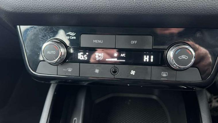 8" Digital display, Advanced driver attention and drowsiness monitor, Bluetooth, e-Call (emergency call), Front assist system, PAS, Rear parking sensors, Speed limiter, Tailgate, Traffic sign recognition, Wireless smartlink, 4 USB C ports, 8 Speakers, 8.25" Skoda infotainment display, DAB radio, Auto dimming rear view mirror, Automatic headlamp activation with Coming home and Leaving home feature, Automatic high/low beam, Body colour bumpers, Body colour door mirrors and handles, Chrome moulding around grille, Front and rear electric windows, Full LED headlights, Heated rear window, LED 3rd brake light, LED brake lights, LED daytime running lights, LED front turning lights, LED high beam, LED low beam, LED taillights, Rear LED fog light, Rear side wing doors, Rear wiper, Tinted windows, 12V socket in luggage compartment, 3 seat bench in 2nd row, Black / Grey armrest stitching, Black hotstamping, Cargo elements, Chrome inner door handles, Door inserts in satin black, Driver and passenger sun visors with vanity mirror, Dual zone climate control, Front and rear roof lights, Front centre armrest, Front head restraints, Glasses storage in roof liner, Height adjustable driver seat, Height adjustable passenger seat, Ice scraper, Illuminated glove compartment, Inner circulation control with pollen filter, ISOFIX for front passenger seat, Isofix preparation for back seats, Leather gearknob and handbrake lever, Loft cloth upholstery, Luggage net under rear parcel shelf, Manual lumbar support for front seats, Net package and top tether hooks in boot space, Pearl grey ceiling, Pocket on the back of both front seats, incl. mobile phone pockets, Single front passenger seat, Textile floor mats, Third rear headrest, Ticket holder, Top tether for front passenger seat, Umbrella in driver's door, 3x3 point rear seatbelts, ABS, Child locks, Curtain airbags and front side airbags, Disc brakes, Driver and front passenger airbags, ESP, Hill hold control, Manual leather parking brake, One tone horn, Passenger airbag switch off function, Seatbelt reminder for driver and front passenger, Tyre pressure monitoring system, Anti theft alarm system with interior monitoring, backup horn and towing protection, Anti-theft wheel bolts, Remote central locking with 2 remote folding keys, SAFE function for remote central locking, Decord pad, door inserts Kota uni,