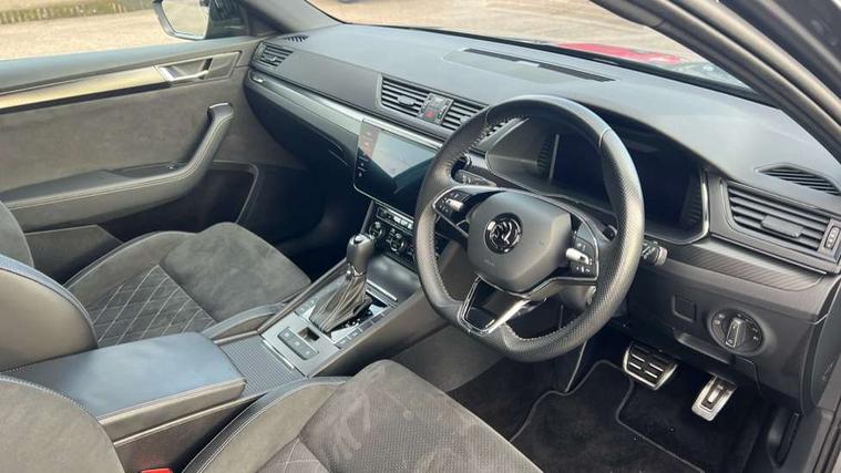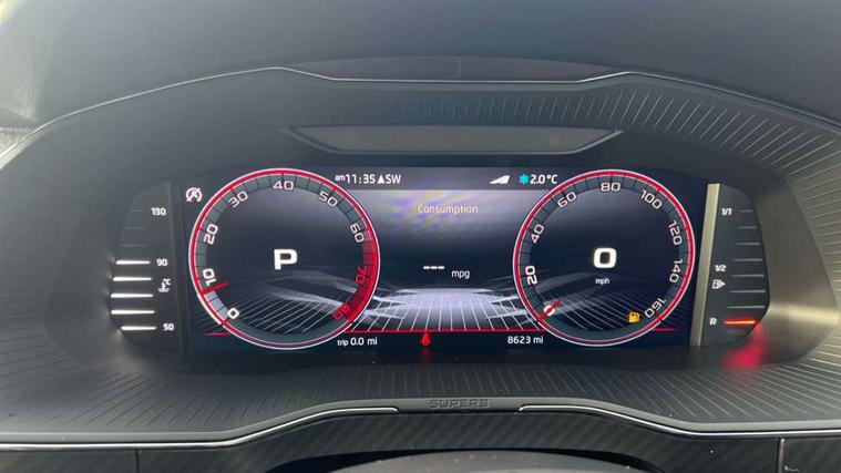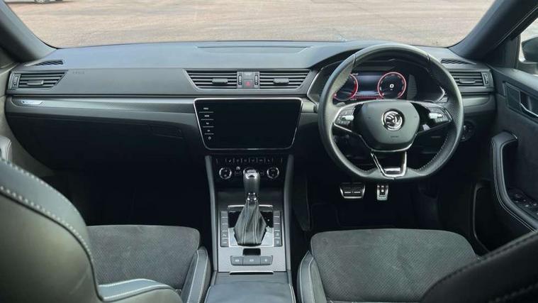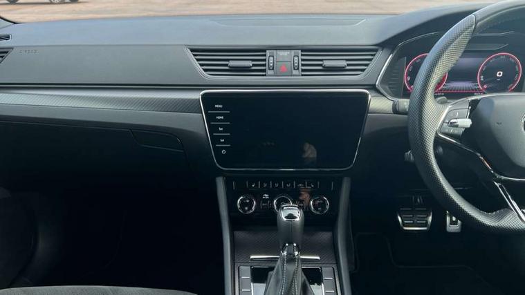 Bluetooth system, CareConnect and Emergency Call, Columbus HDD satellite 3D map navigation with 9.2" colour touch screen, web radio, integrated Wi-Fi, Driver fatigue sensor, Front assist with pedestrian protection, Progressive dynamic steering, Stop/start engine system and energy recovery, Virtual cockpit, Voice control system, Wireless smartlink apple carplay, SmartLink+ android auto, XDS+, 2 USB ports, Bolero radio with 8" touchscreen display, DAB Digital radio, 3rd brake light, Aero front windscreen wipers with intermittent function, Auto dimming rear view mirror, Black rear badge, Body colour door handles, Cornering front fog lights, Electrically adjustable heated and folding door mirrors with memory function, Front and rear electric windows, Full matrix LED headlights with AFS LED DRL integrated with headlight washer LED rear lights(High function), dynamic indicators and lighting animation, Gloss black exterior door mirrors with sports styling including front grill, side strip and window surrounds, Gloss black grille surround with gloss black rib elements, Gloss black rear spoiler (roof), Gloss black strip between rear lights, Light assistant (coming/leaving home/tunnel light), Privacy glass, Rain sensor, Rear exhaust diffuser styling elements, Rear side wing doors, Sportline badging, 12v power point in centre console, 3 seat bench in 2nd row, Black roof headlining, Black textile floor mats, Carbon optic interior elements, Electric auxiliary air heater, Front and rear footwell illumination, Front armrest with storage box, Height adjustable front and rear head restraints, Ice scraper, Illuminated and cooled glovebox, Interior lights with control switches, Isofix child seat fittings on outer rear seats, LED front and rear reading lights, Microsuede/leather upholstery with silver diamond stitching sports seats, One umbrella compartments in driver door with one umbrella in drivers door, Overhead glasses storage compartment, Rear centre armrest with cupholders, Removable parcel shelf, Single front passenger seat, Split folding rear seats, Storage compartment with cover in luggage compartment side panels, Ticket holder on A Pillar, LED package plus - Superb, 3 rear seatbelts, 7 airbags - Front, front side, curtain, driver's knee airbag with front passenger deactivation switch, Driver and passenger seatbelts with warning light, Electronic parking brake, ESC including ABS, EBV, MSR, ASR, EDS, HBA, DSR, RBS, CBC, multi-collision brake (MKB) and Auto hold, Hill start assist, Power operated child lock in rear doors, Tyre pressure monitor, Alarm with interior monitoring tilt sensor and back up horn, Electronic engine immobiliser, Keyless entry and start/stop, Remote central locking with SAFE system, Third remote key,